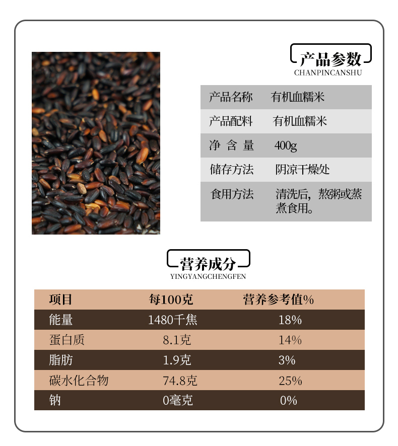 人民 瓶装有机血糯米400g