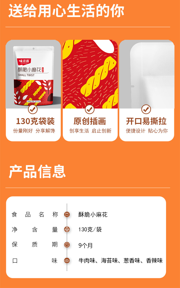 【味滋源】小麻花 130g 葱香&牛肉&海苔 三种口味