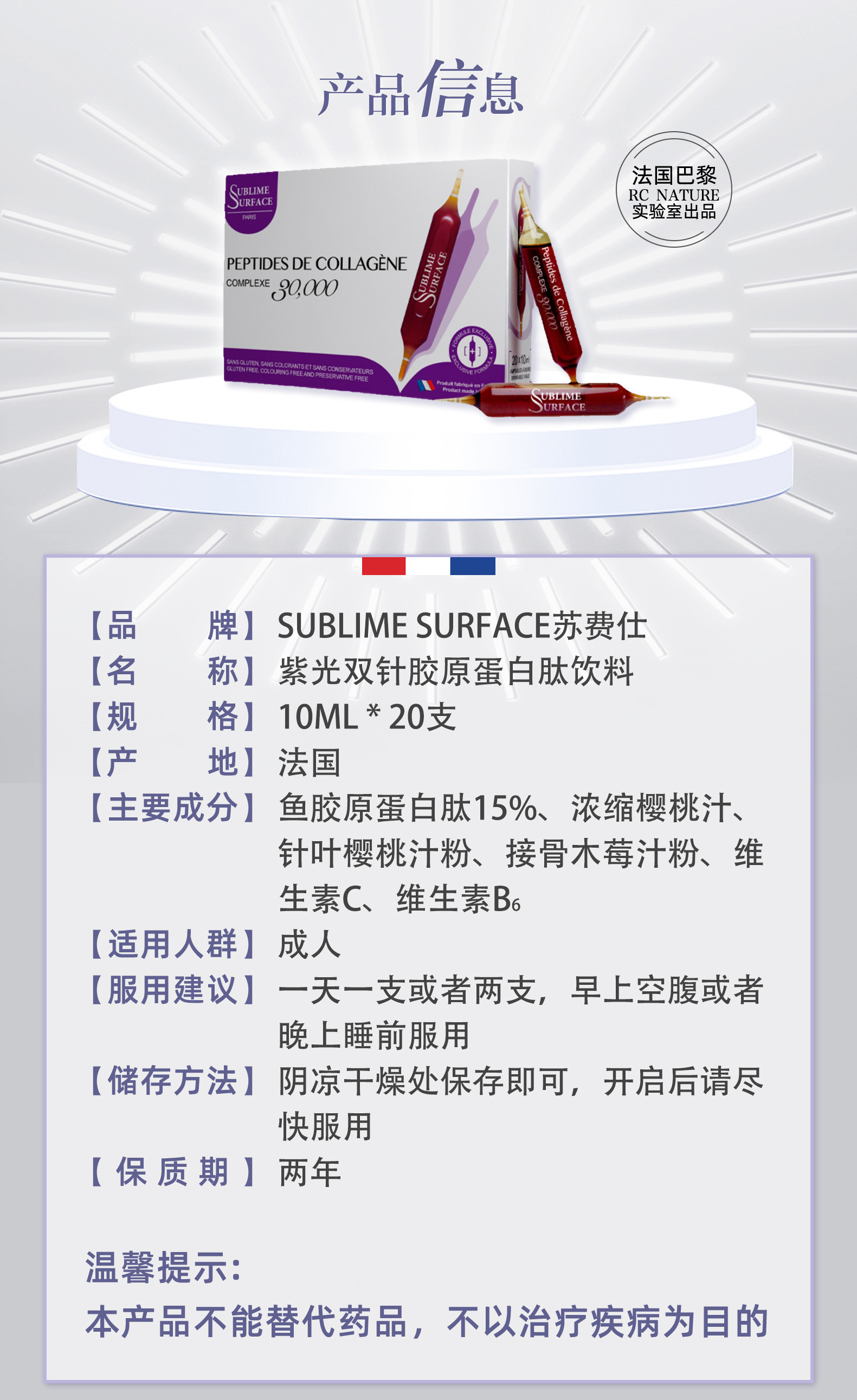 法国苏费仕 紫光双针口服胶原蛋白肽液10ml/20支