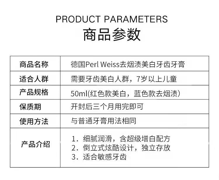 【中欧班列精选2支】德国进口 Per weiss牙膏 去烟渍牙渍茶渍/增亮成人牙膏50ml/支
