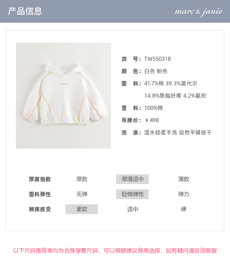 马克珍妮男女童舒弹轻氧空气卫衣 儿童上衣2025年春装新款550318