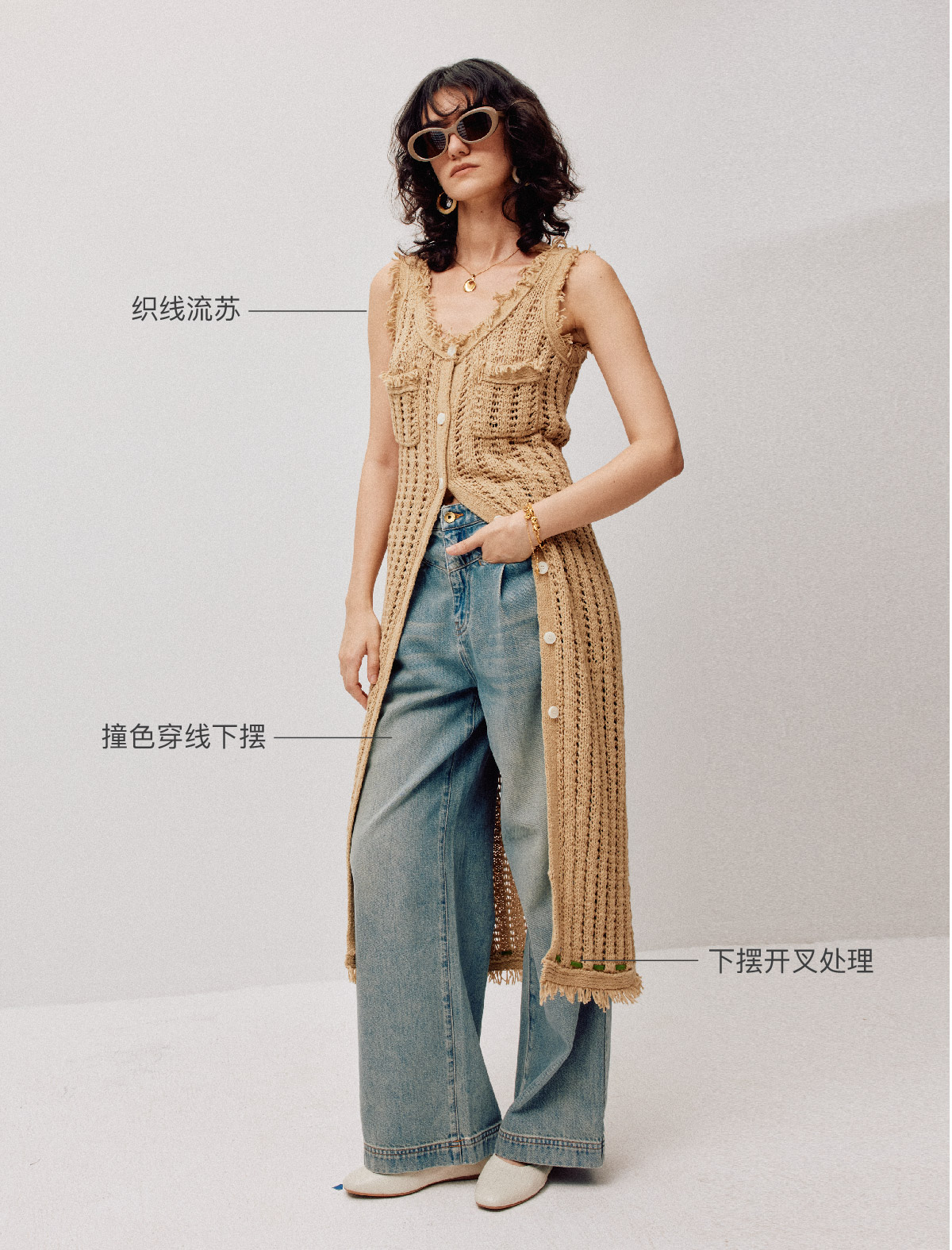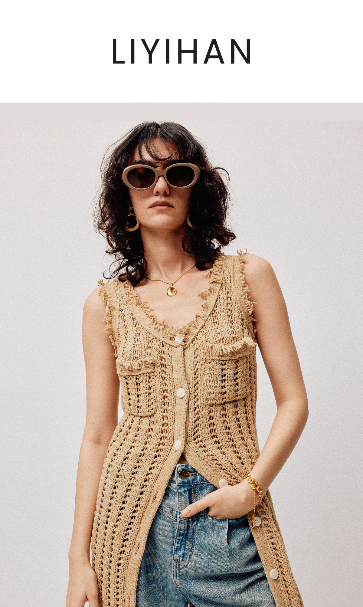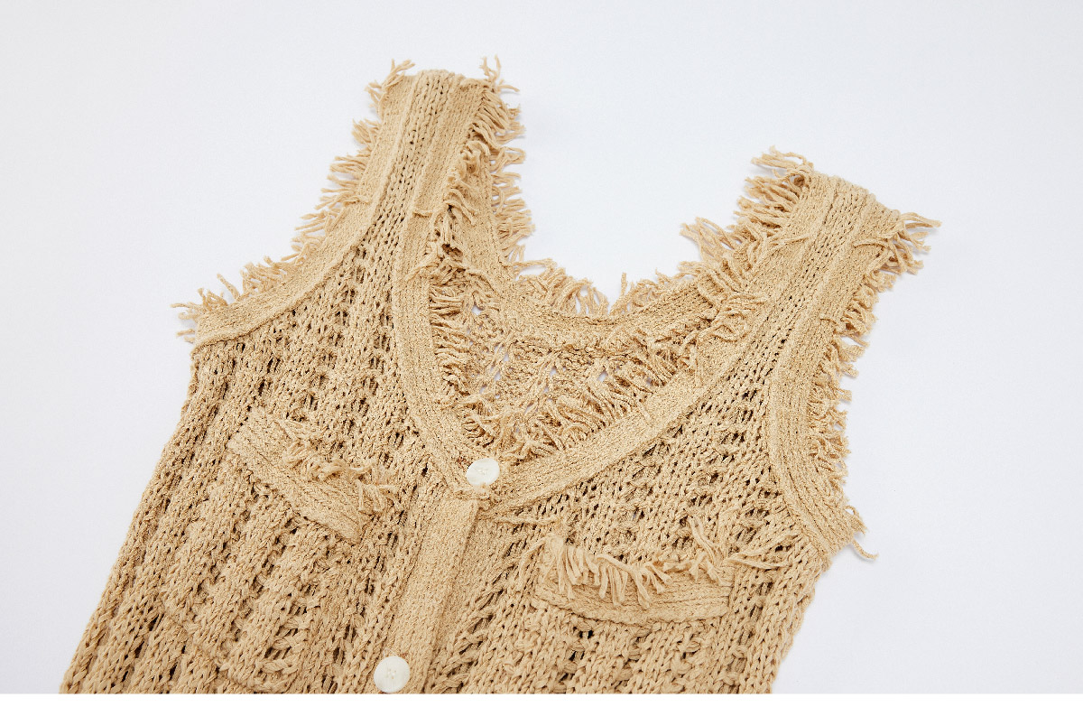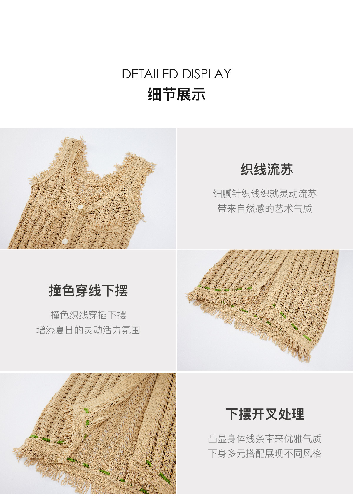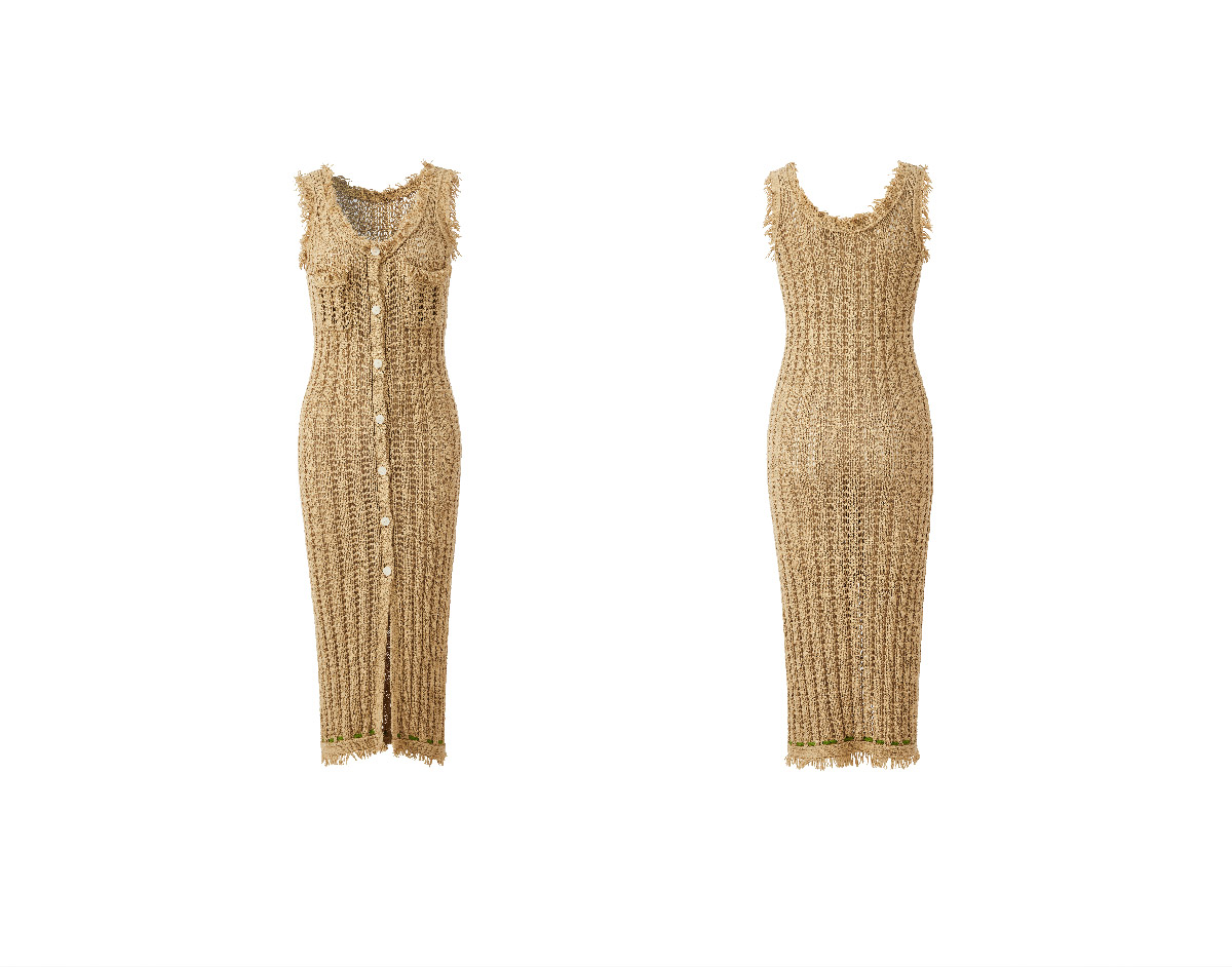 LIYIHAN稿线 随性度假棉带子纱开扣连衣裙独特设计纱线出游裙子