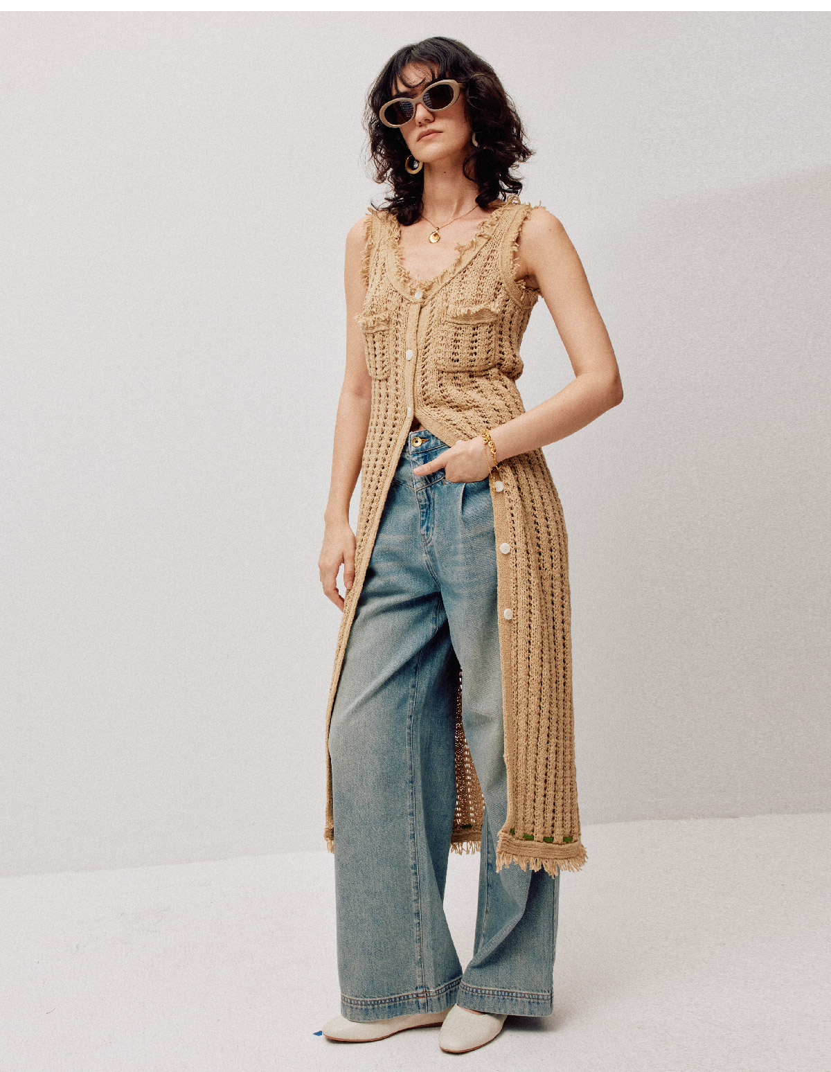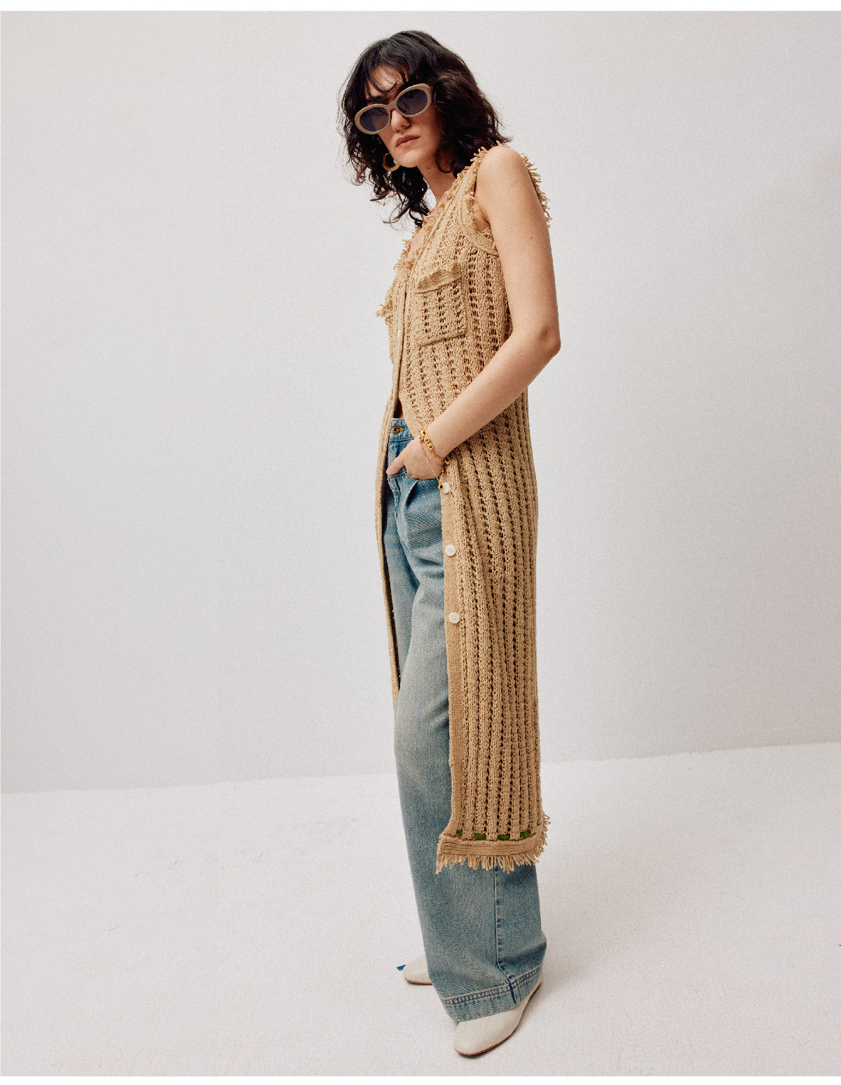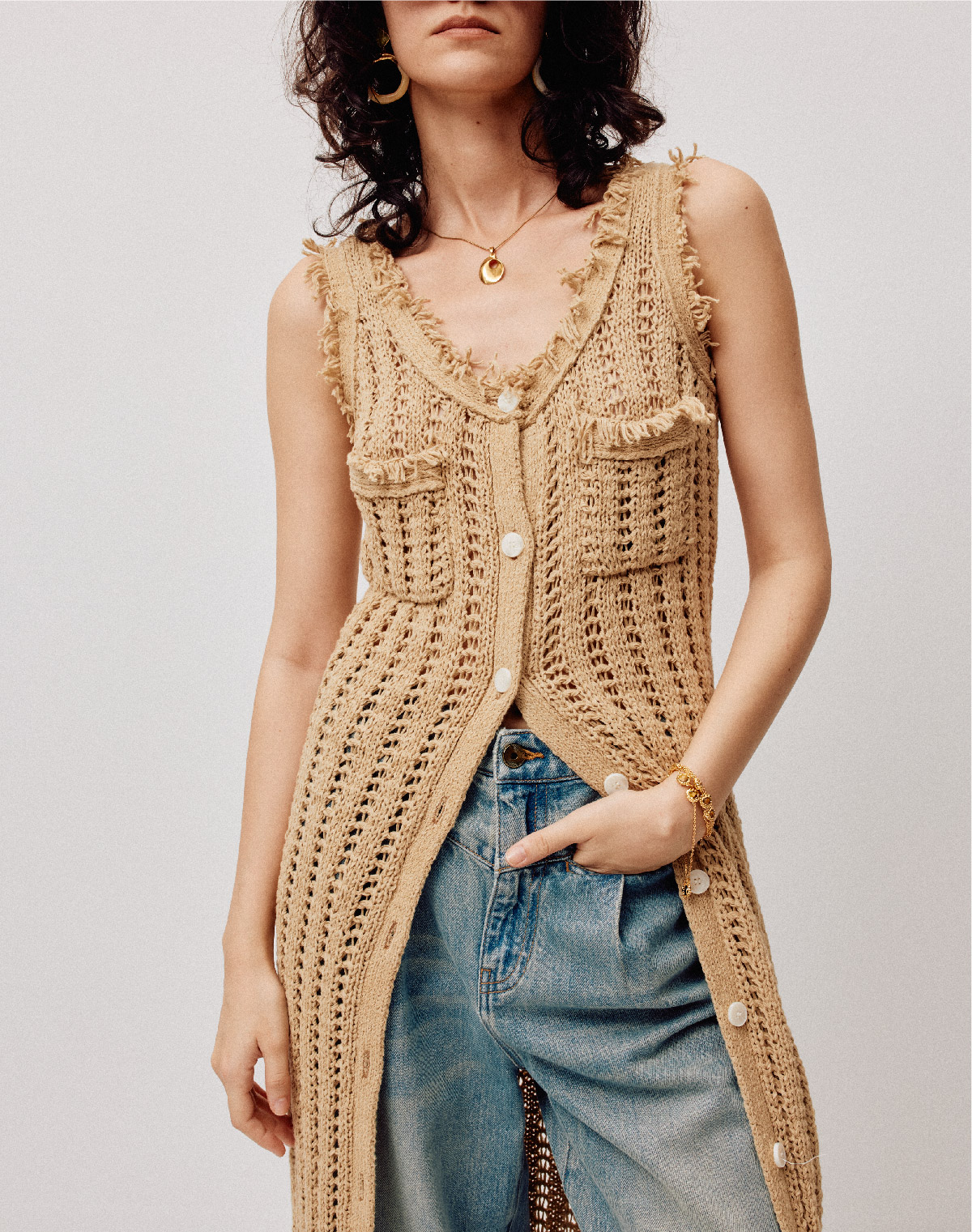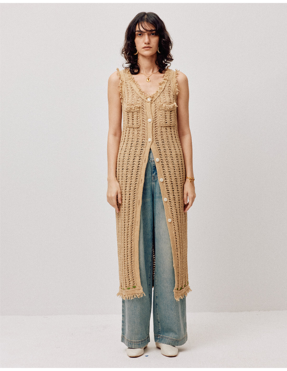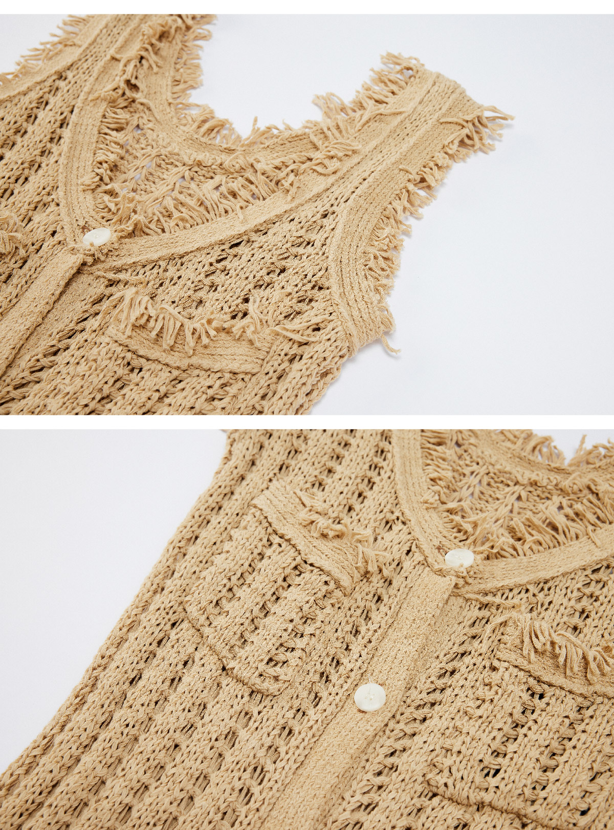 LIYIHAN稿线 随性度假棉带子纱开扣连衣裙独特设计纱线出游裙子