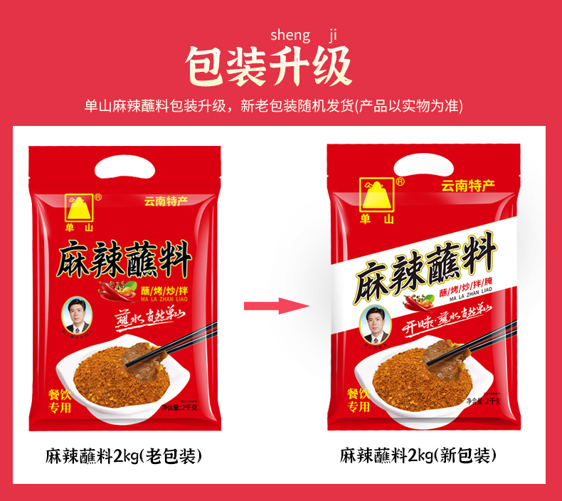云南特产麻辣蘸料单山蘸水2kg 300g*2 100g*2 10g*20袋辣椒面火锅烧烤辣椒粉调料干碟串串