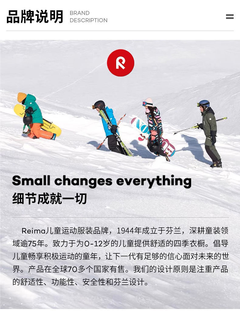 芬兰reima男女儿童拒水防风半开襟式套头夹克儿童连帽套衫