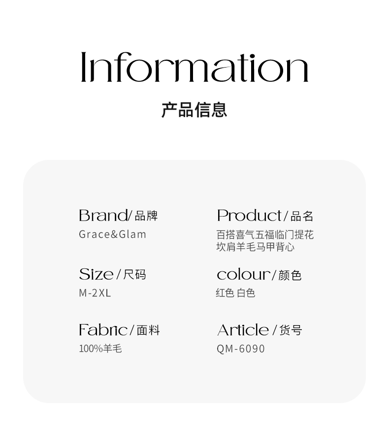 Grace&Glam 喜气五福临门提花坎肩羊毛马甲背心