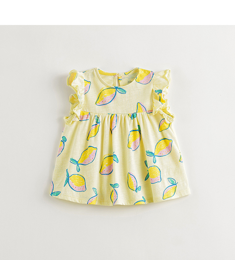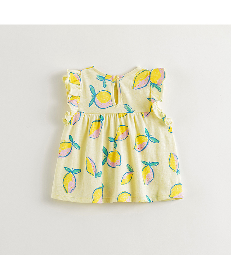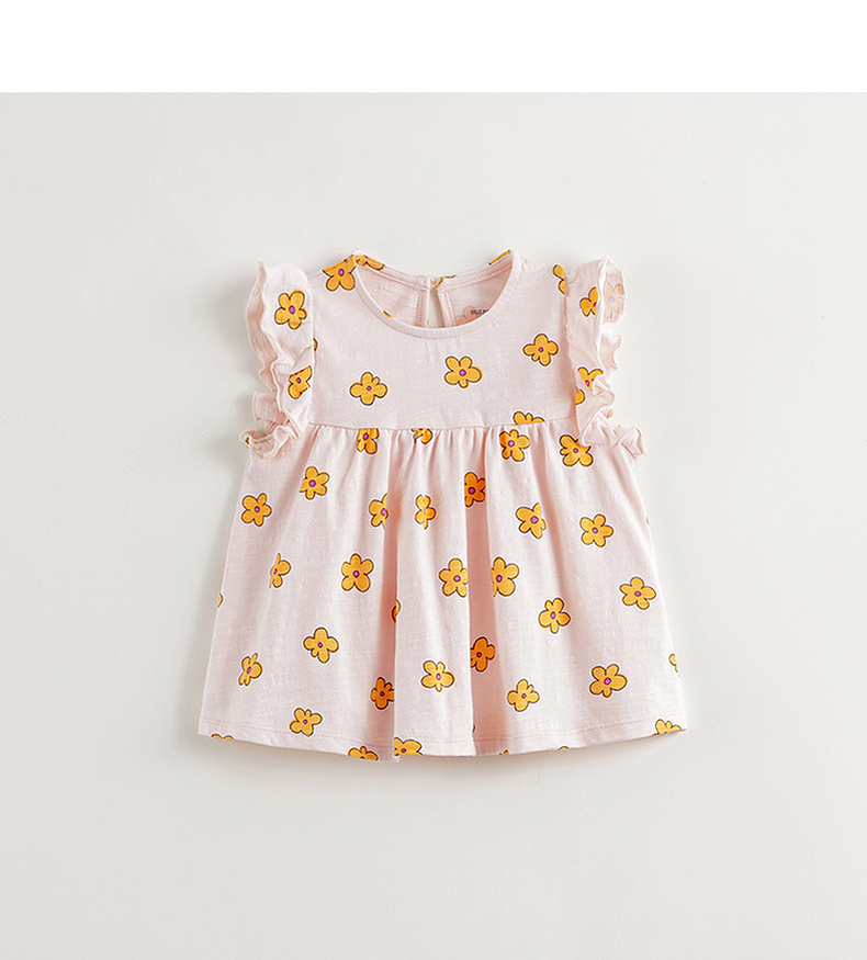 马克珍妮女童清新碎花小飞袖T恤儿童上衣2024年夏装新款240782