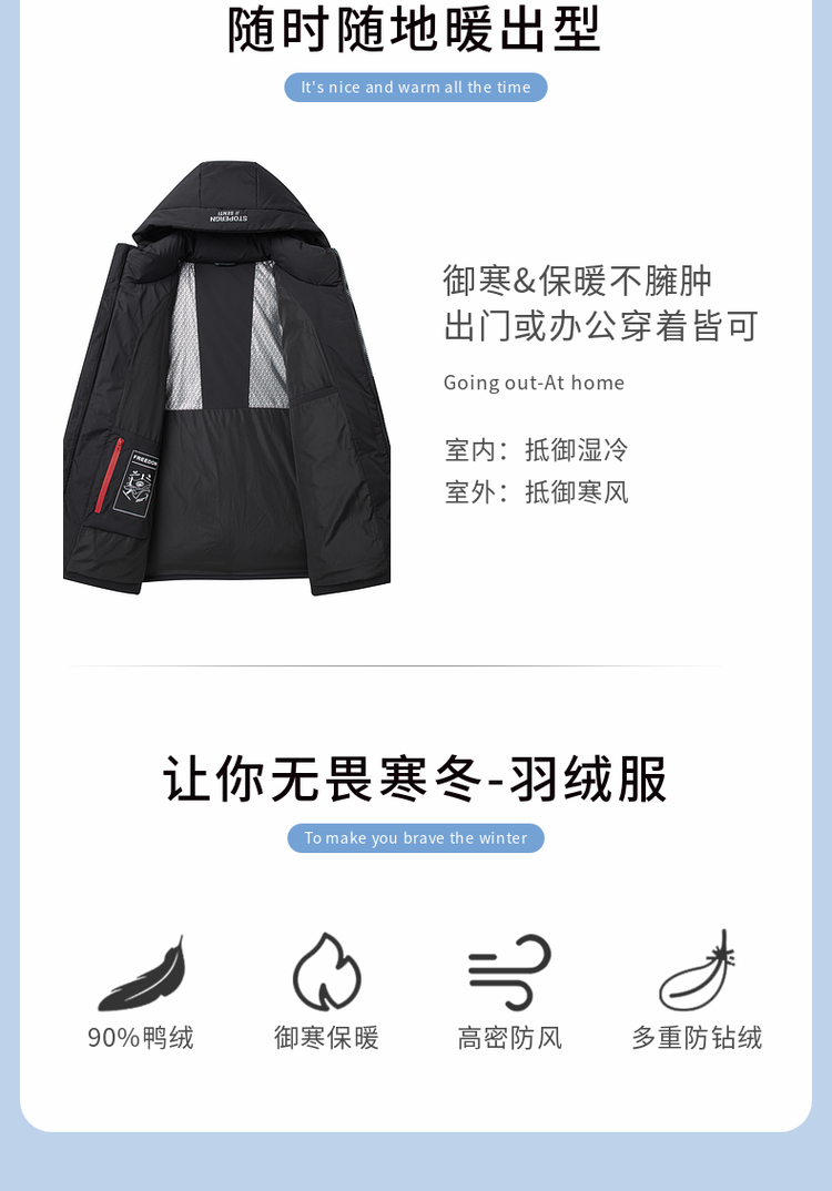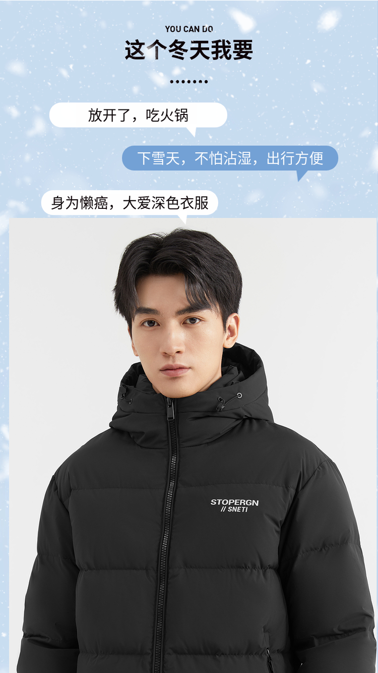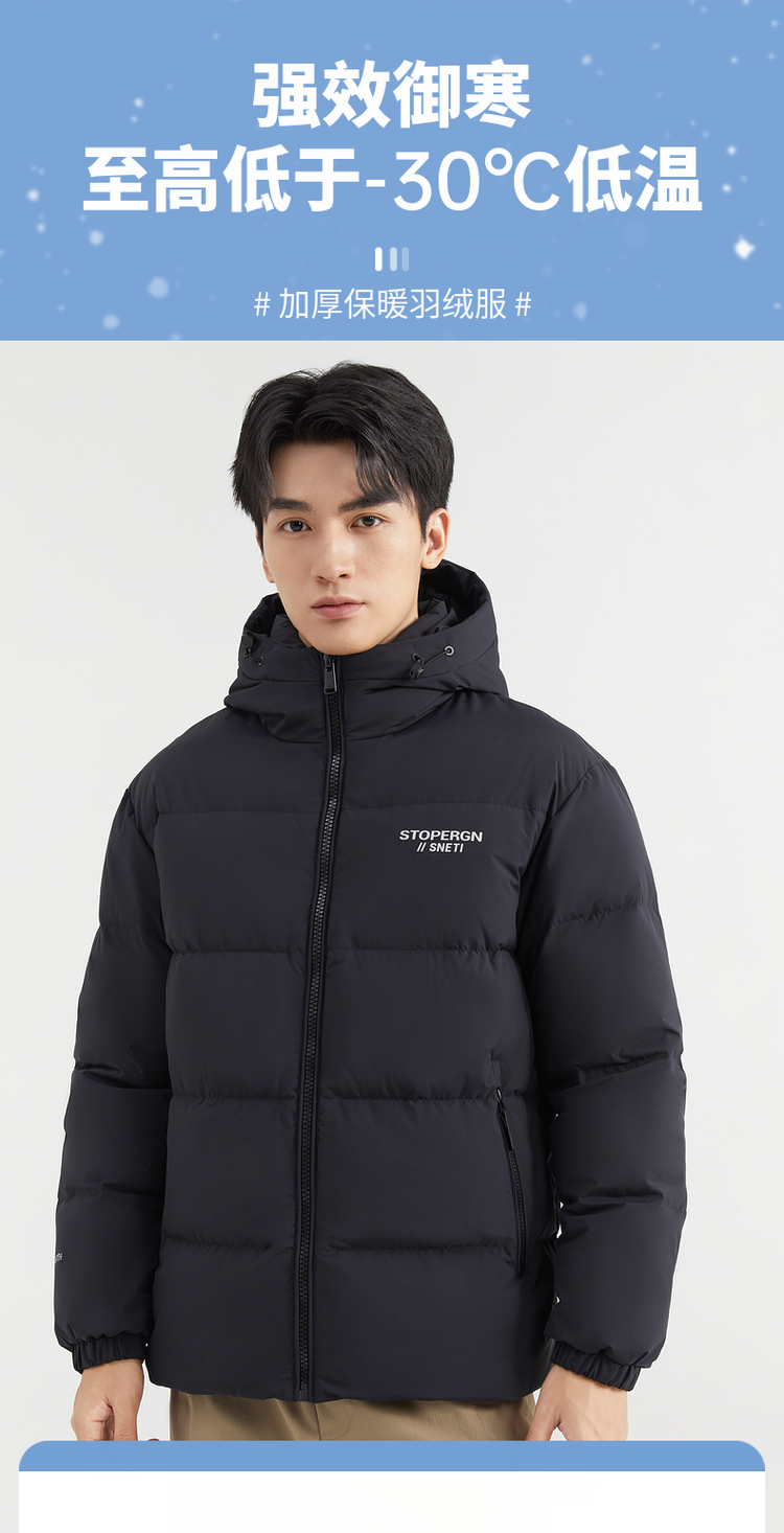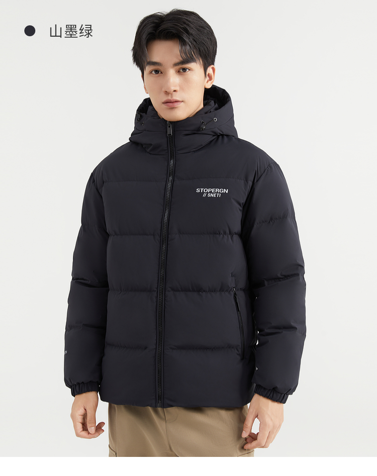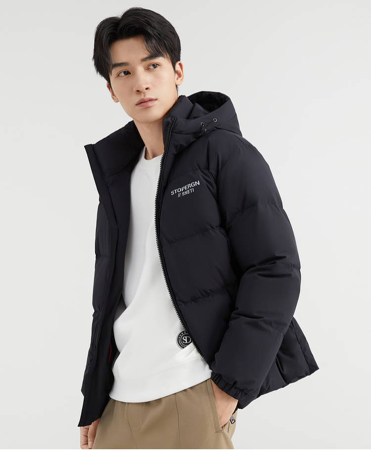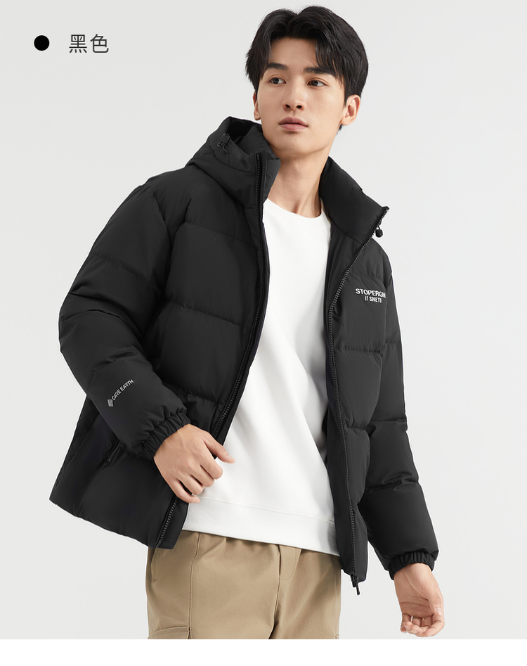 【90%鸭绒】圣得西加厚面包羽绒服短款男24冬季新款纯色连帽外套