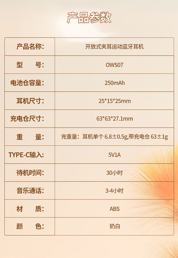 沃品开放式挂耳 运动蓝牙耳机OWS07