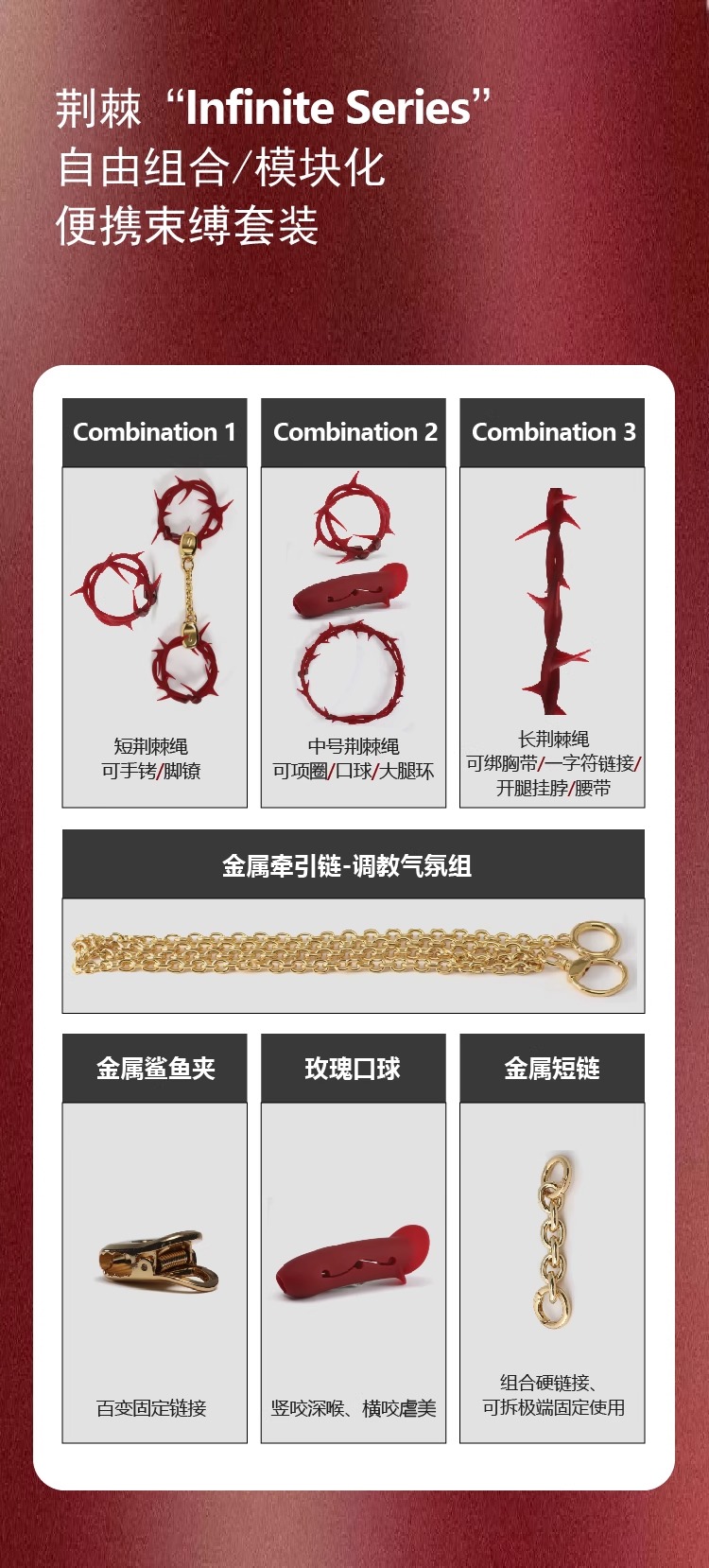 轻喃荆棘·0基础体验·束缚捆绑道具(口球、项圈、手铐、脚镣)