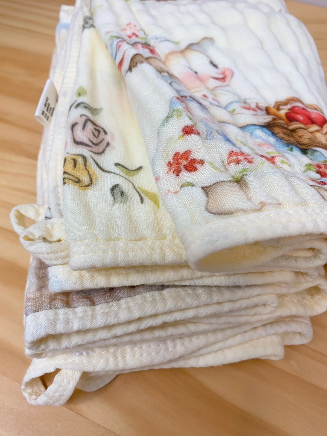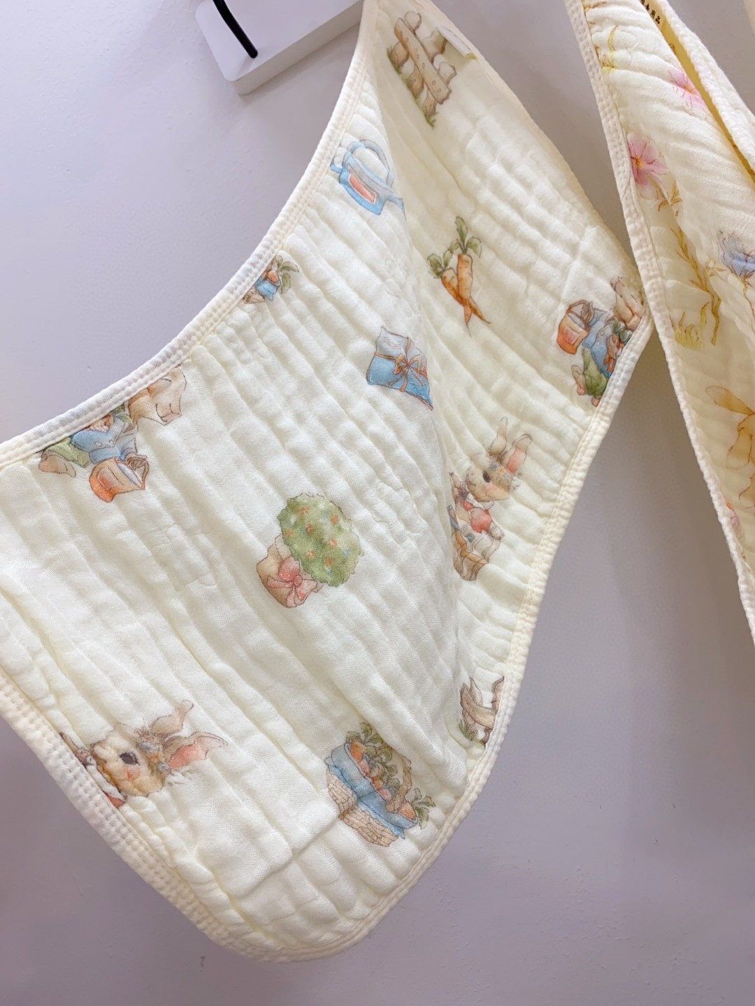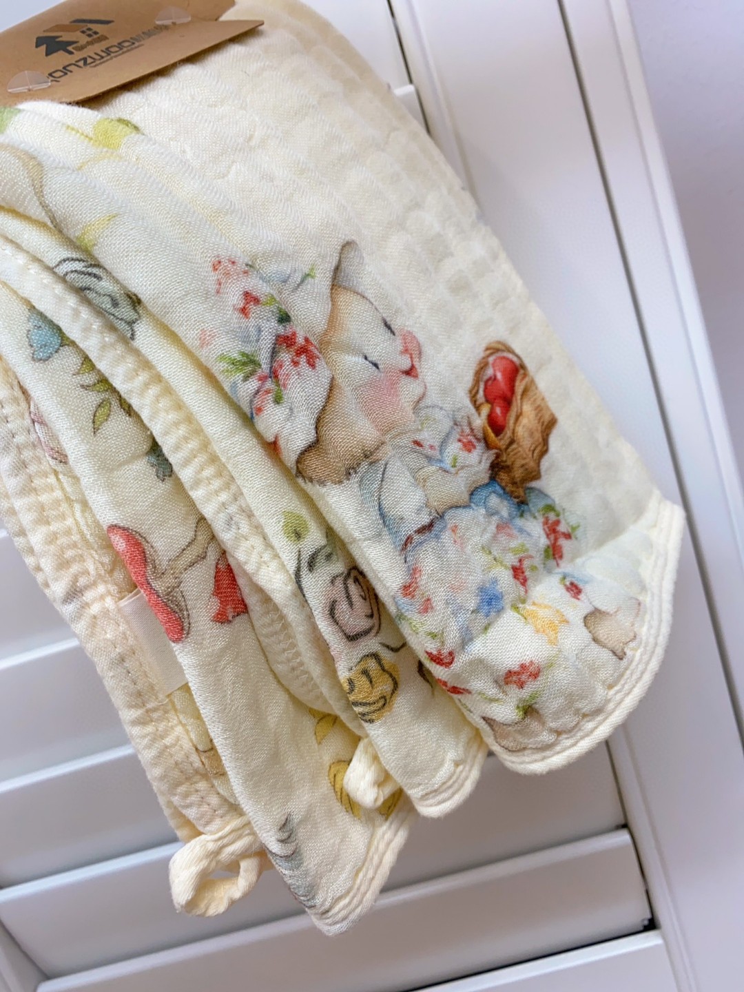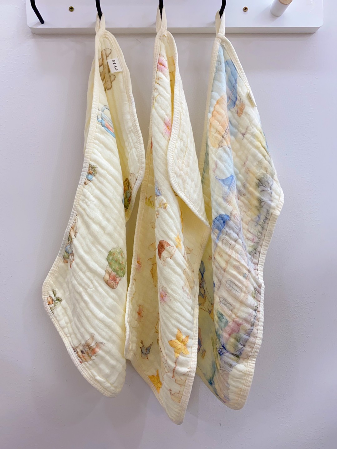 松植屋纱布高密印花童巾3条长方巾组合装婴幼儿童洗脸巾 汗巾 口水巾