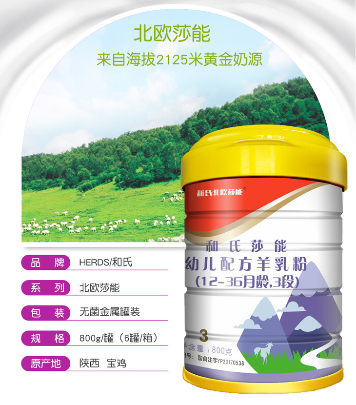 和氏北欧莎能羊奶粉3段800g(新包装)JPY带授权招加盟代理