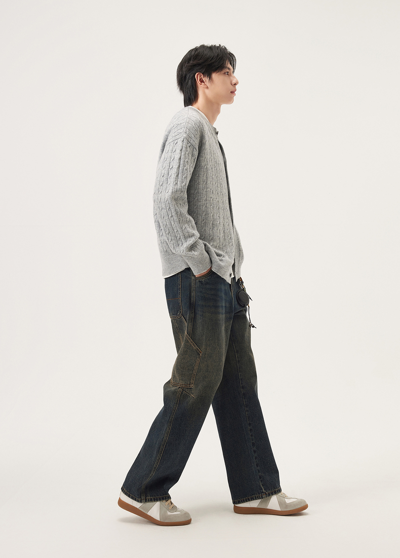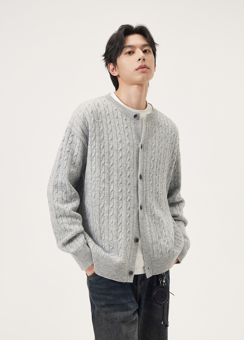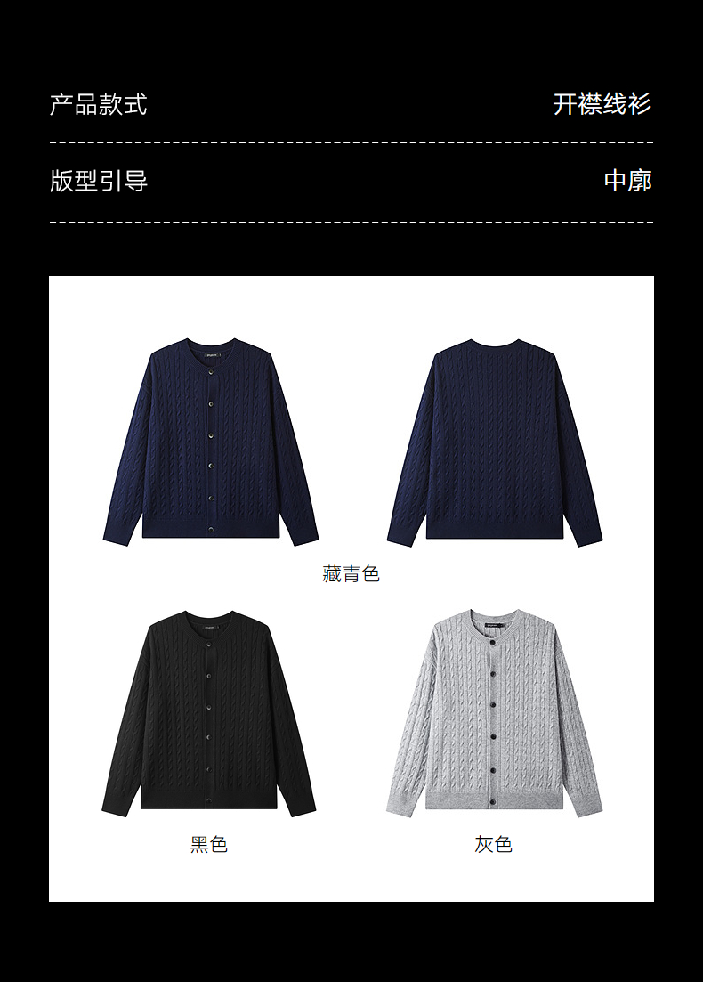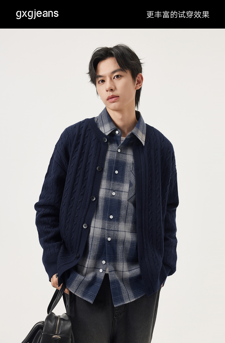 gxg.jeans男装 多色绞花毛衣含羊毛休闲保暖针织衫外套男25秋热卖