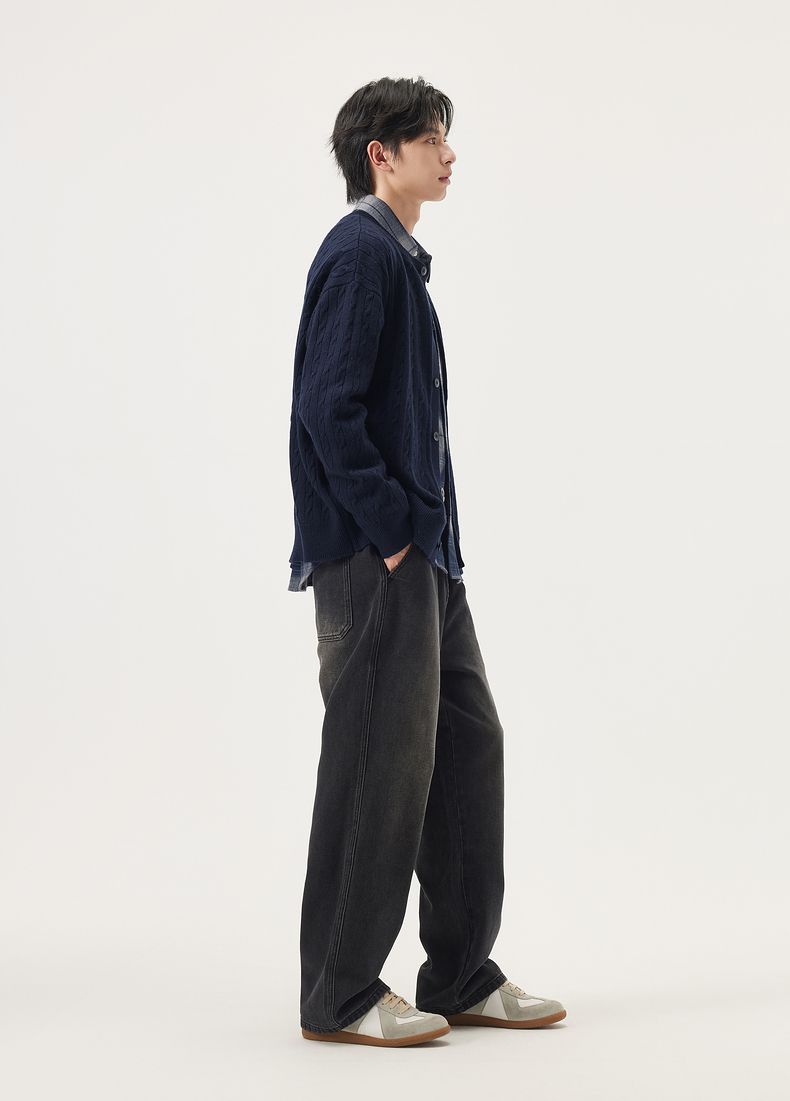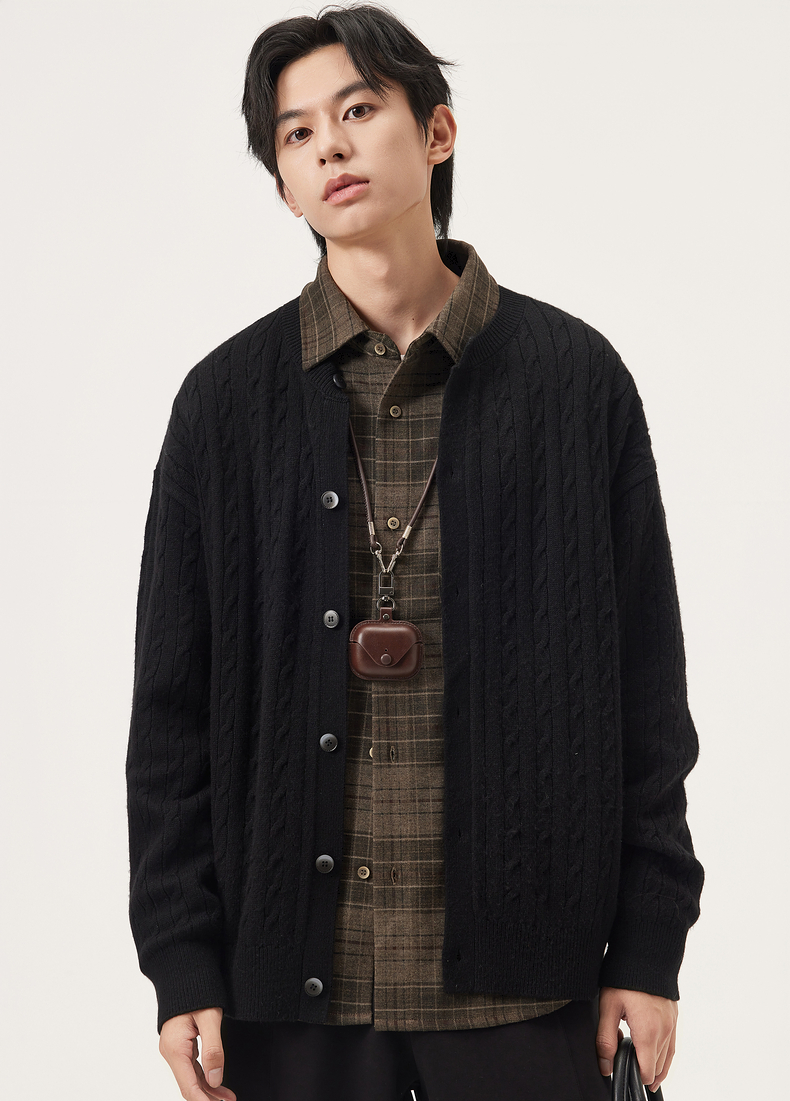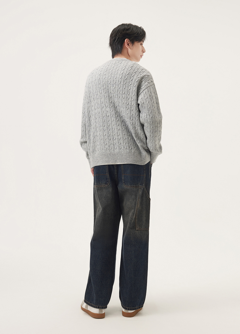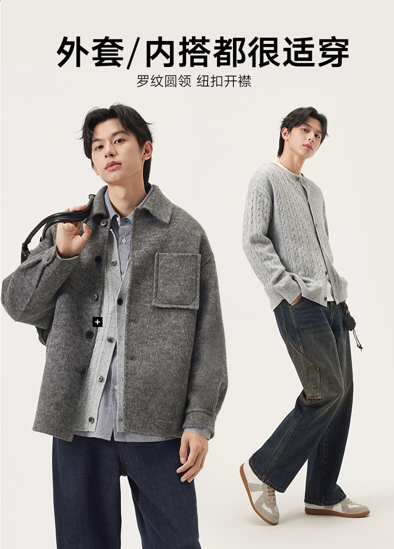 gxg.jeans男装 多色绞花毛衣含羊毛休闲保暖针织衫外套男25秋热卖