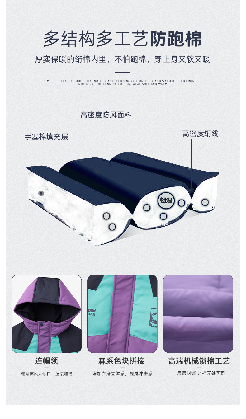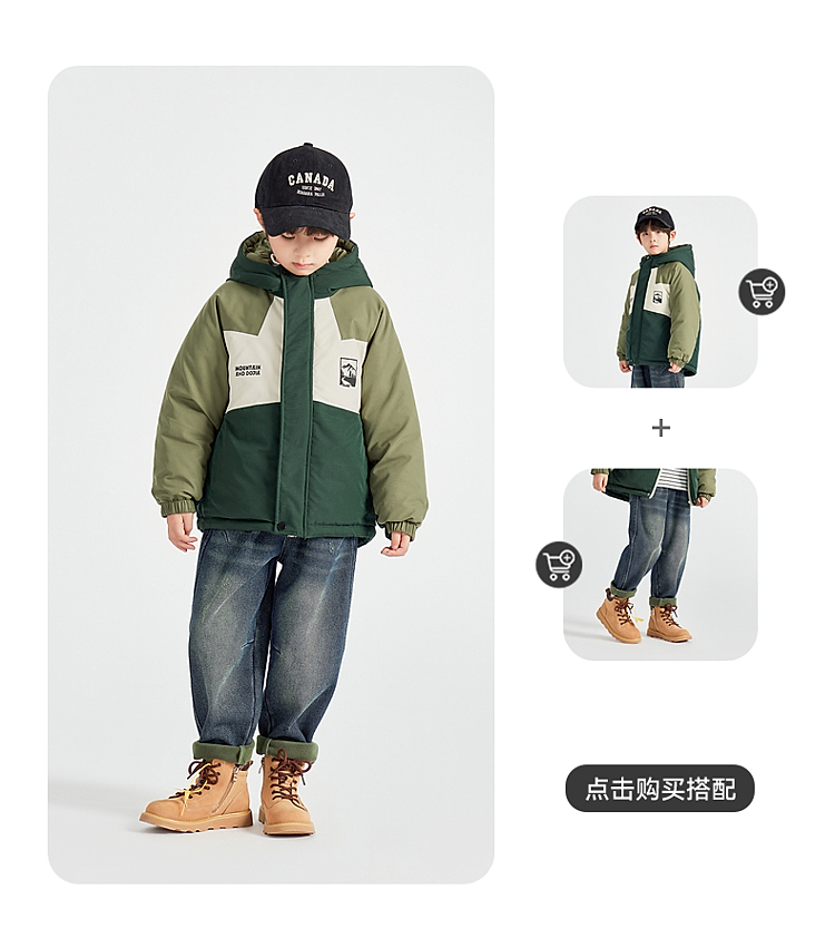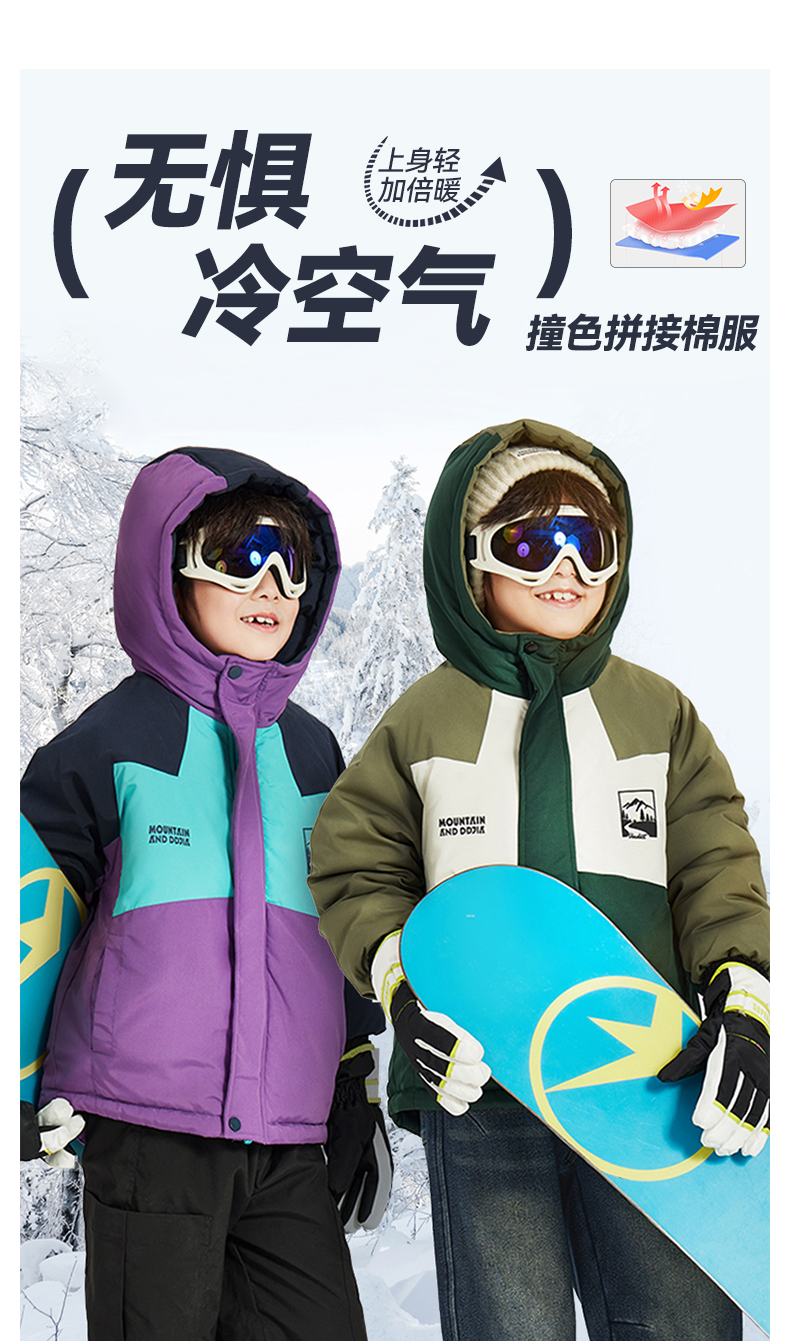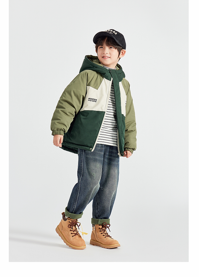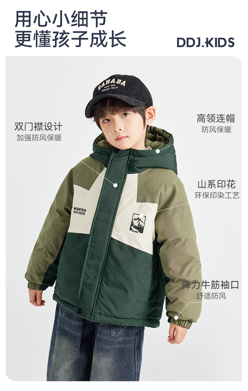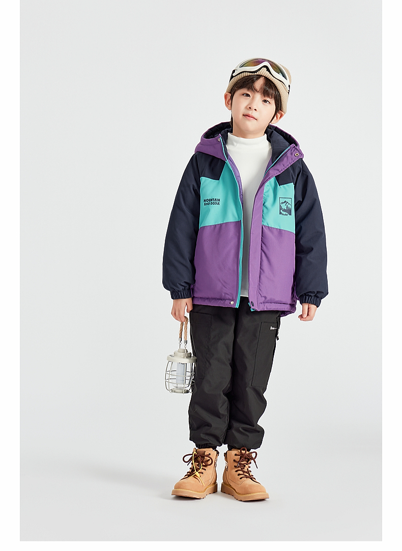 【团购价146.9】多多家男童棉服外套户外2024新款秋冬季儿童男孩撞色拼接冬装棉衣9750