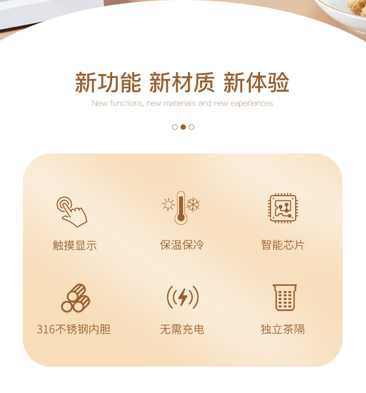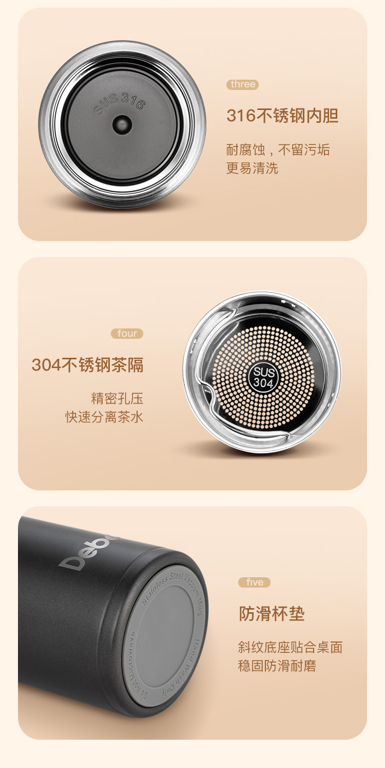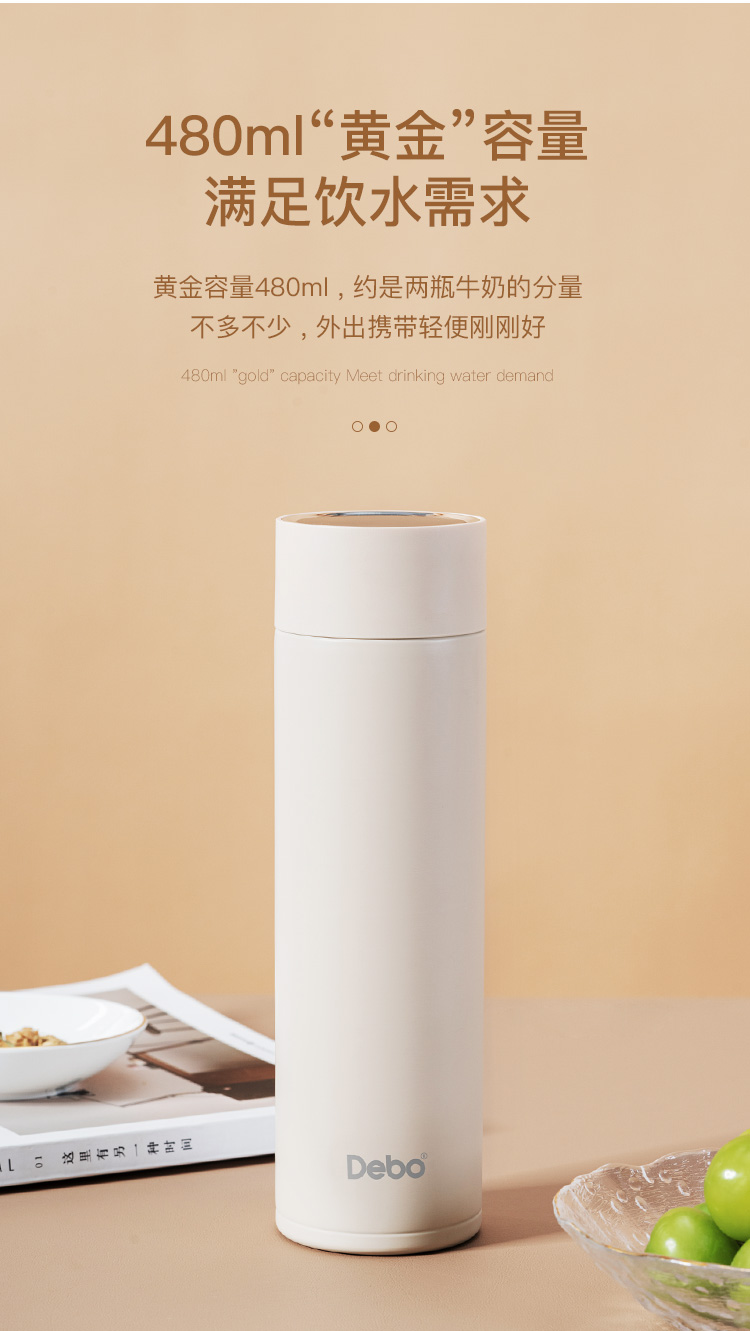 Debo 新款智能温显杯316不锈钢保温杯带茶隔多用杯埃托奥450ml