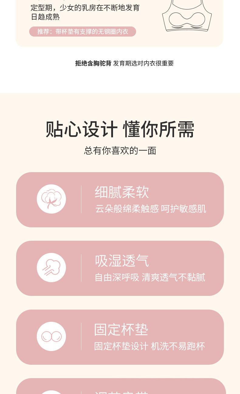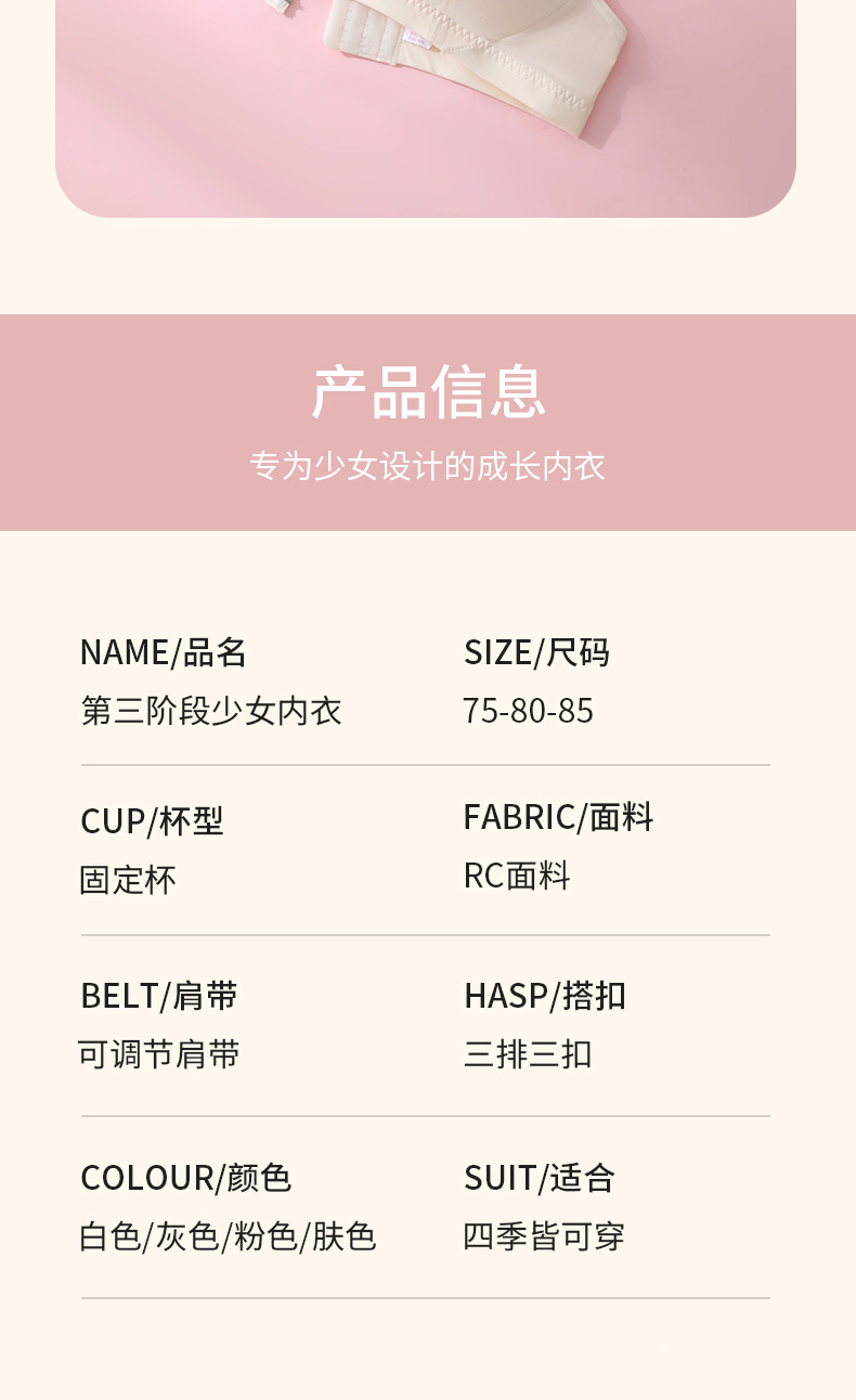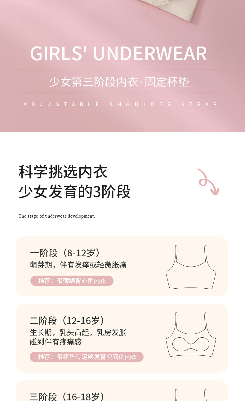 【39元1件】三排三口第三阶段带胸垫发育期少女文胸-080