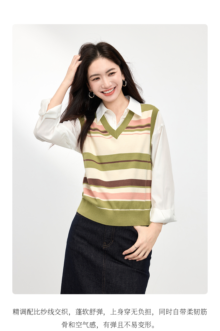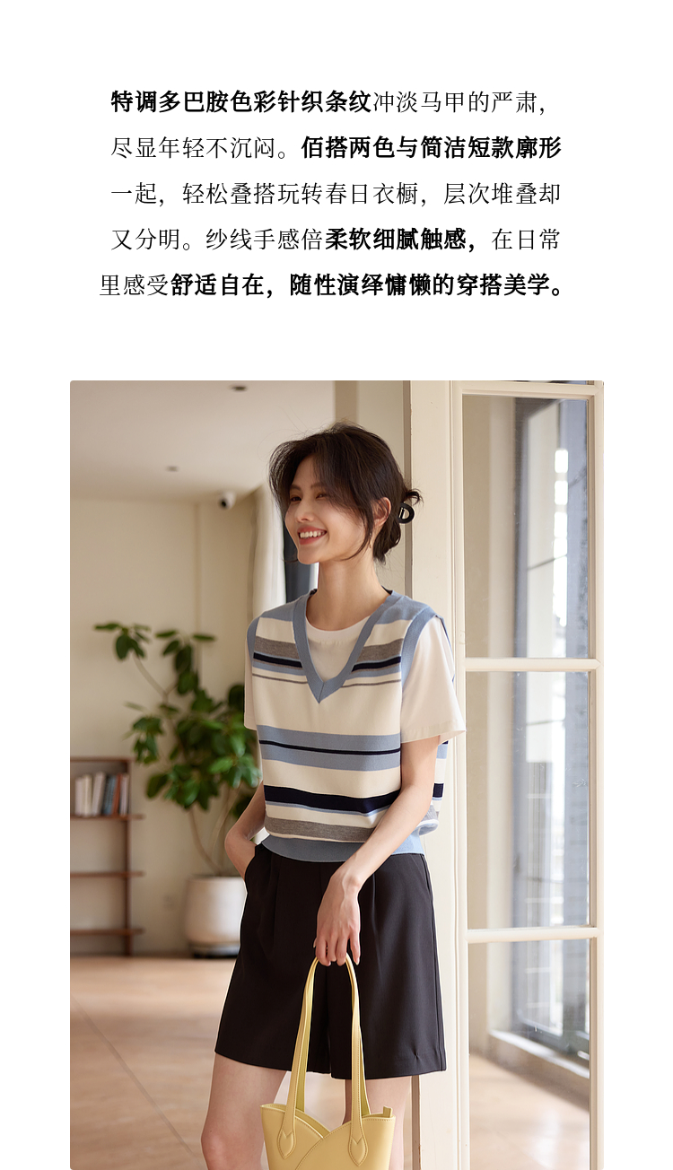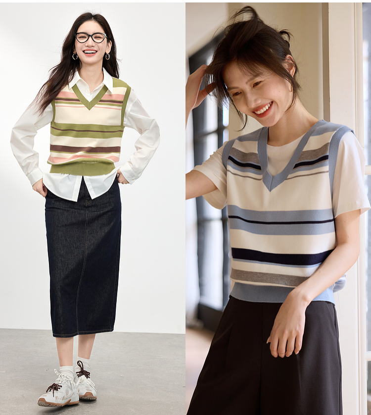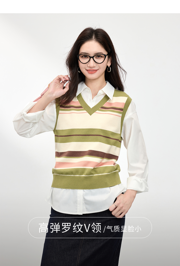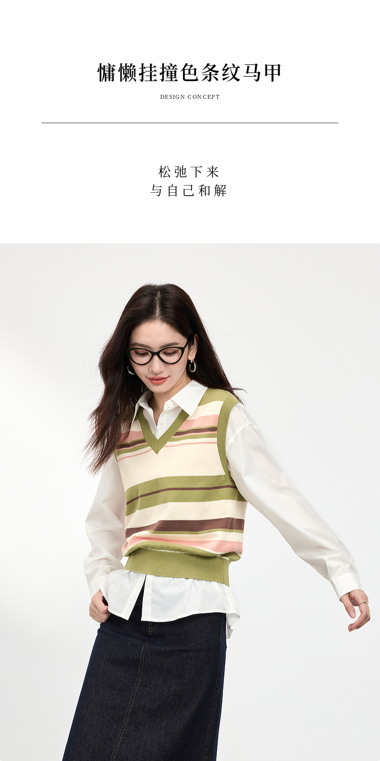【年货节】熙世界熙世界多巴胺彩色条纹针织衫马甲2025春秋新款叠穿无袖背心上衣