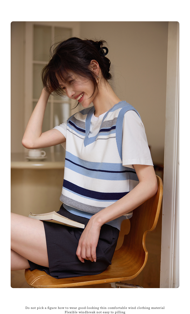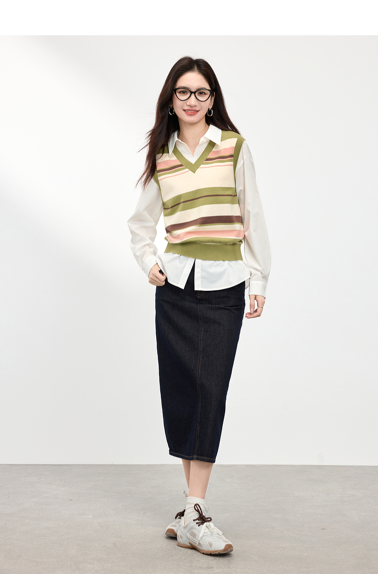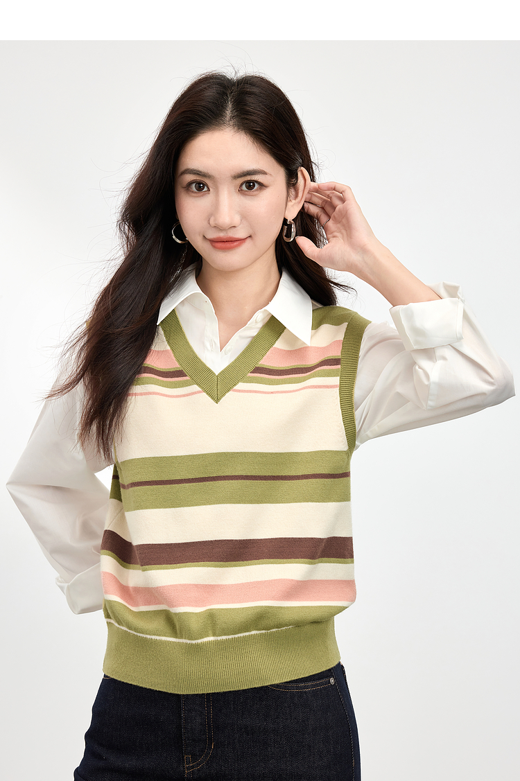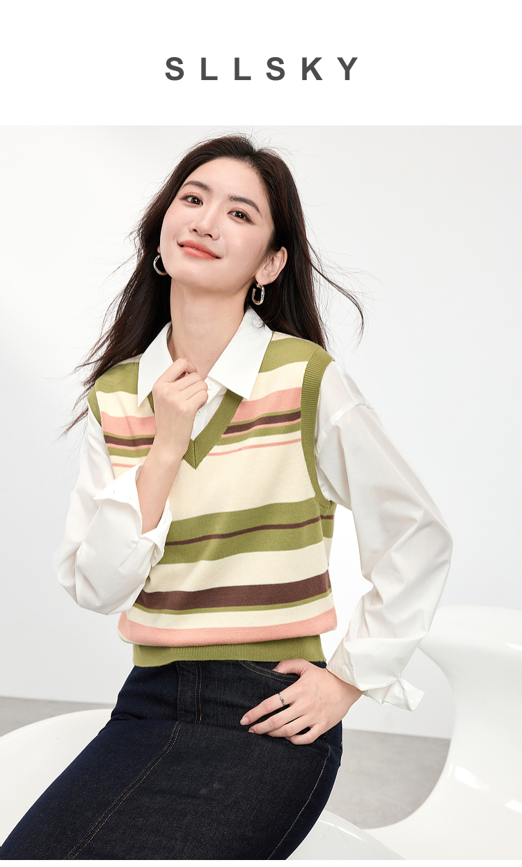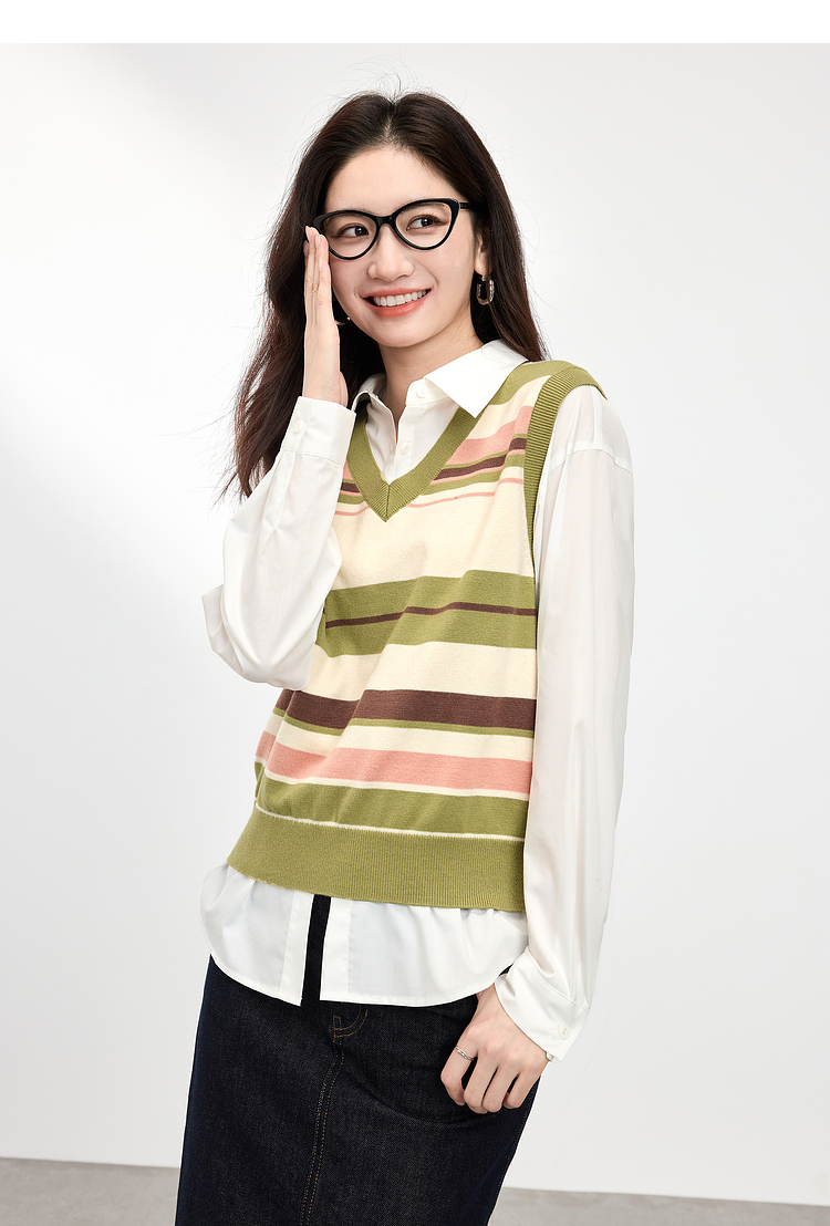 【年货节】熙世界熙世界多巴胺彩色条纹针织衫马甲2025春秋新款叠穿无袖背心上衣