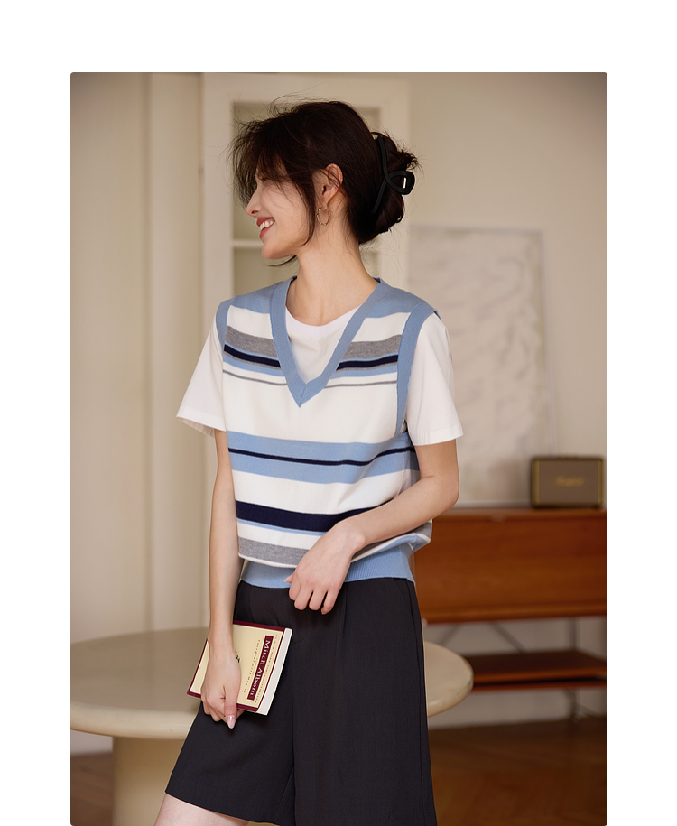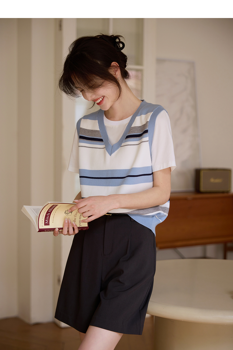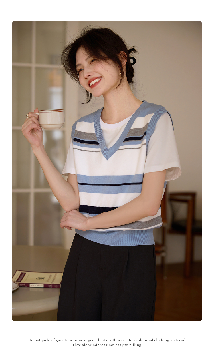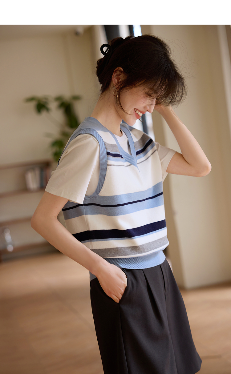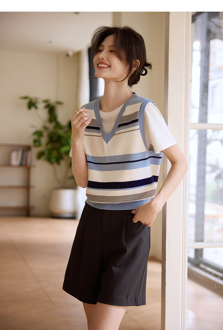 【年货节】熙世界熙世界多巴胺彩色条纹针织衫马甲2025春秋新款叠穿无袖背心上衣