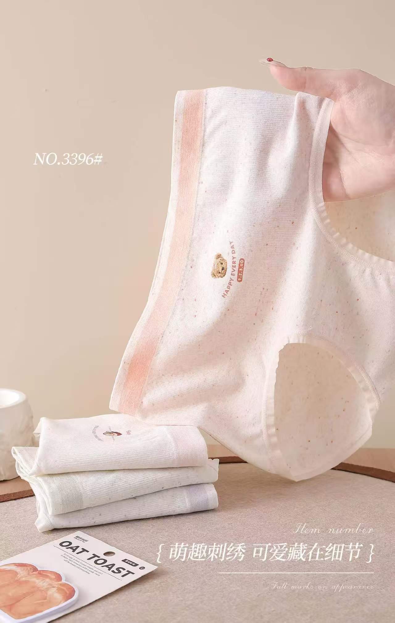 女士可爱小熊印花无缝内裤裸氨棉舒适透气三角裤少女裤头3396