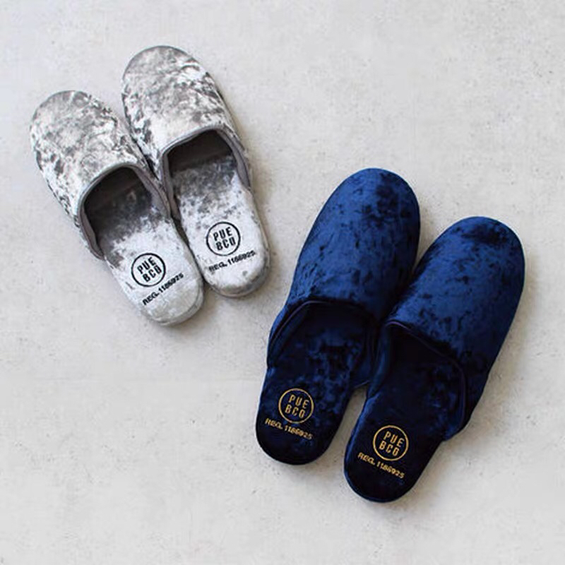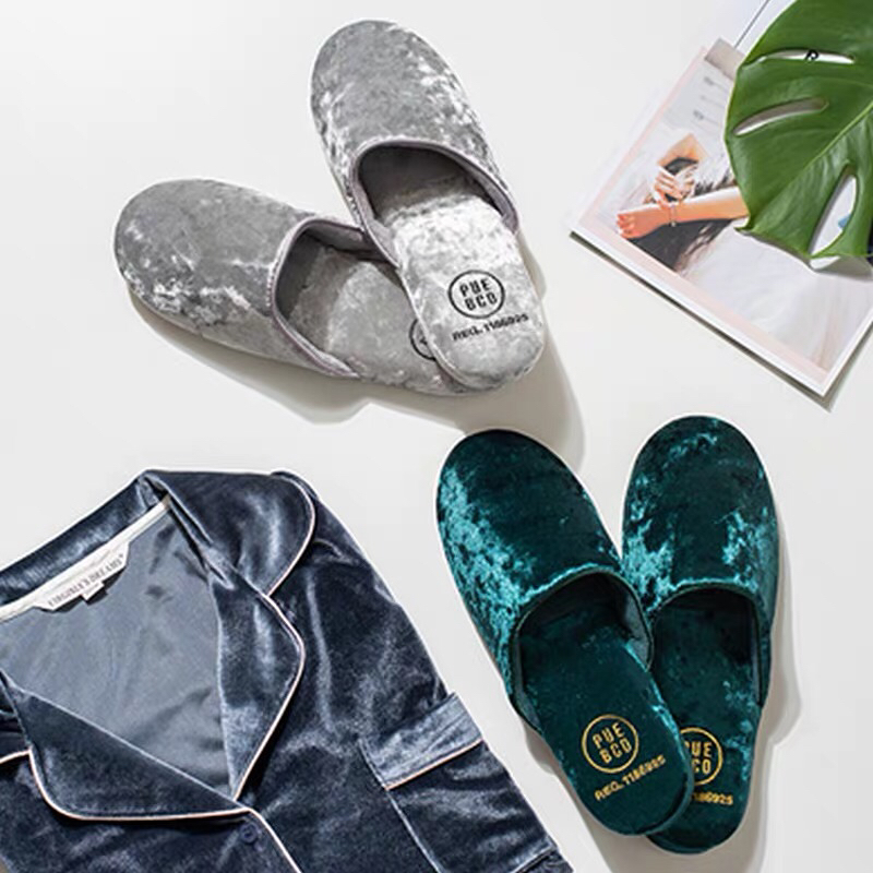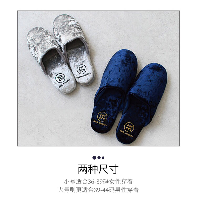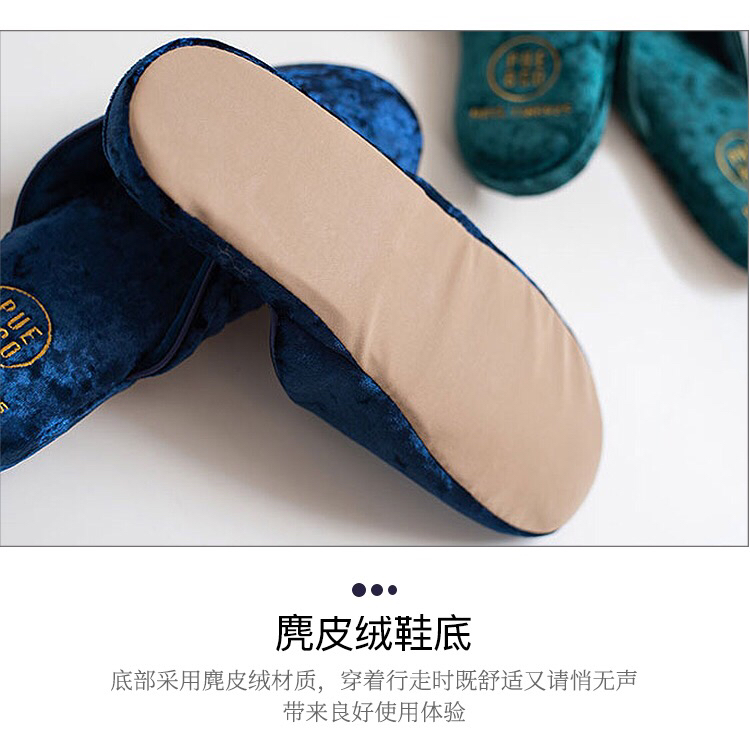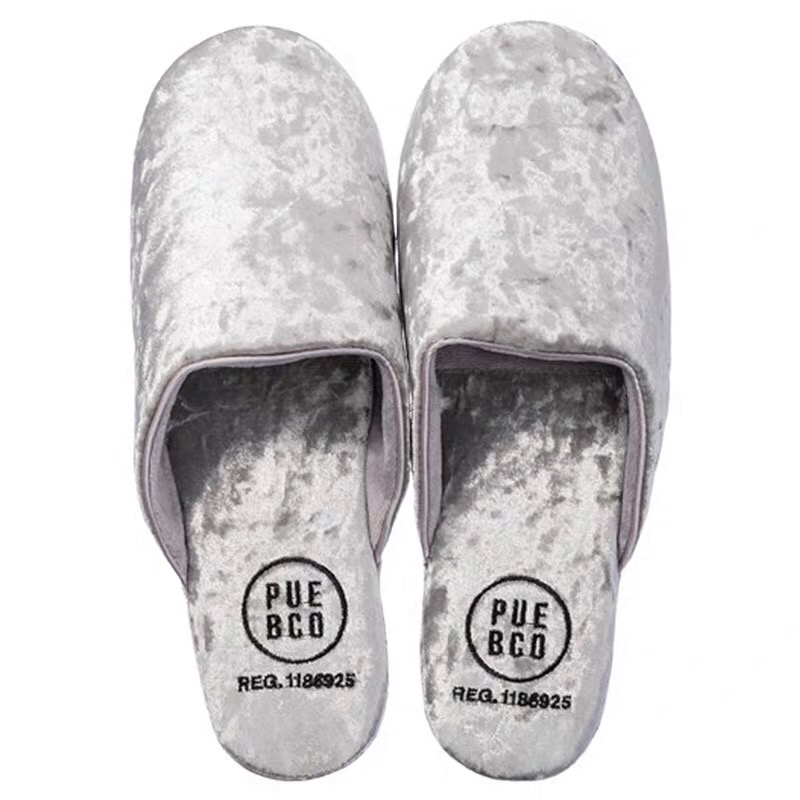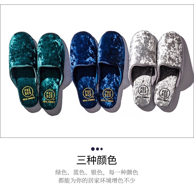 日本PUEBCO2019新款丝绒家居拖鞋-室内天鹅绒麂皮刺绣INS网红拖鞋-会员6折