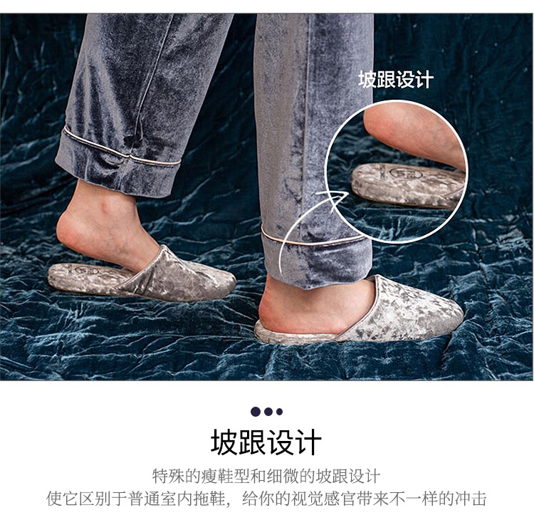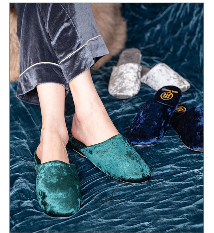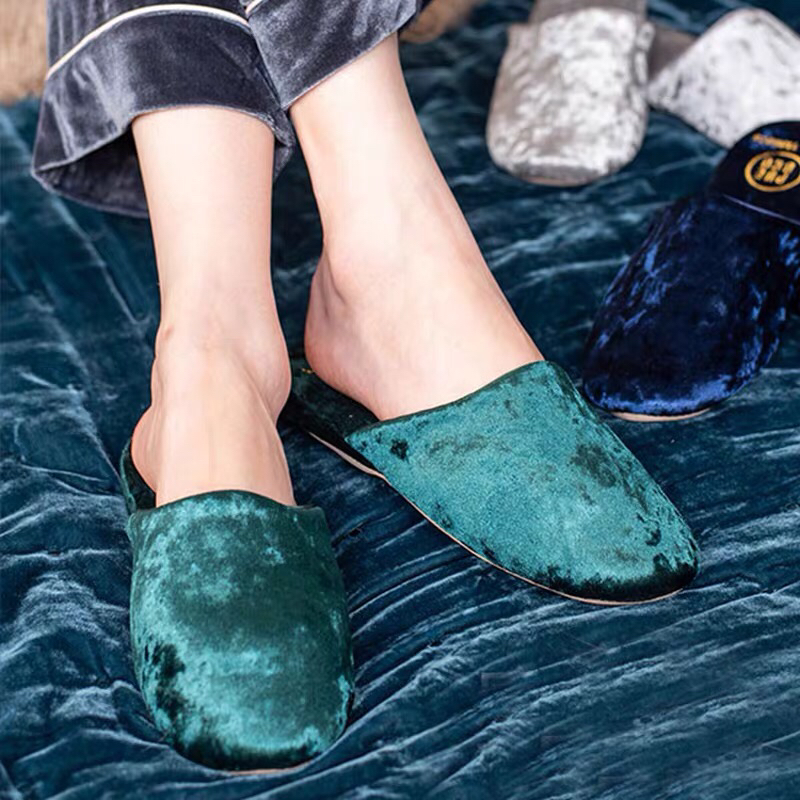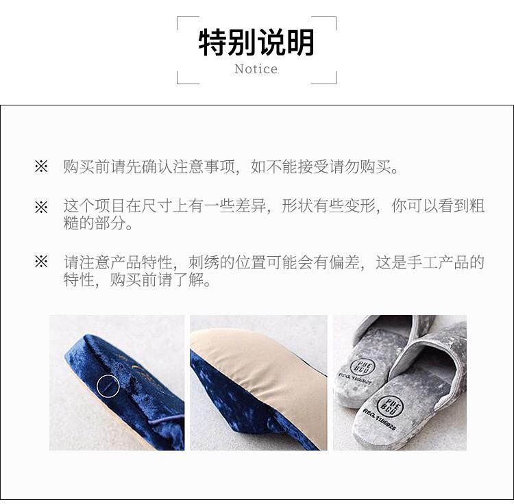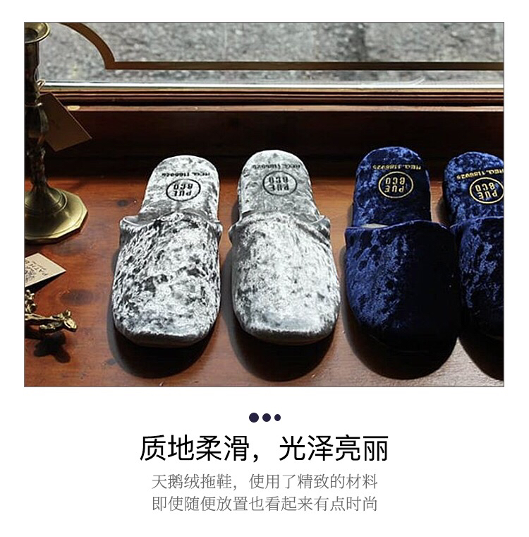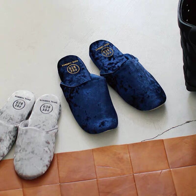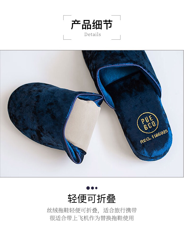 日本PUEBCO2019新款丝绒家居拖鞋-室内天鹅绒麂皮刺绣INS网红拖鞋-会员6折