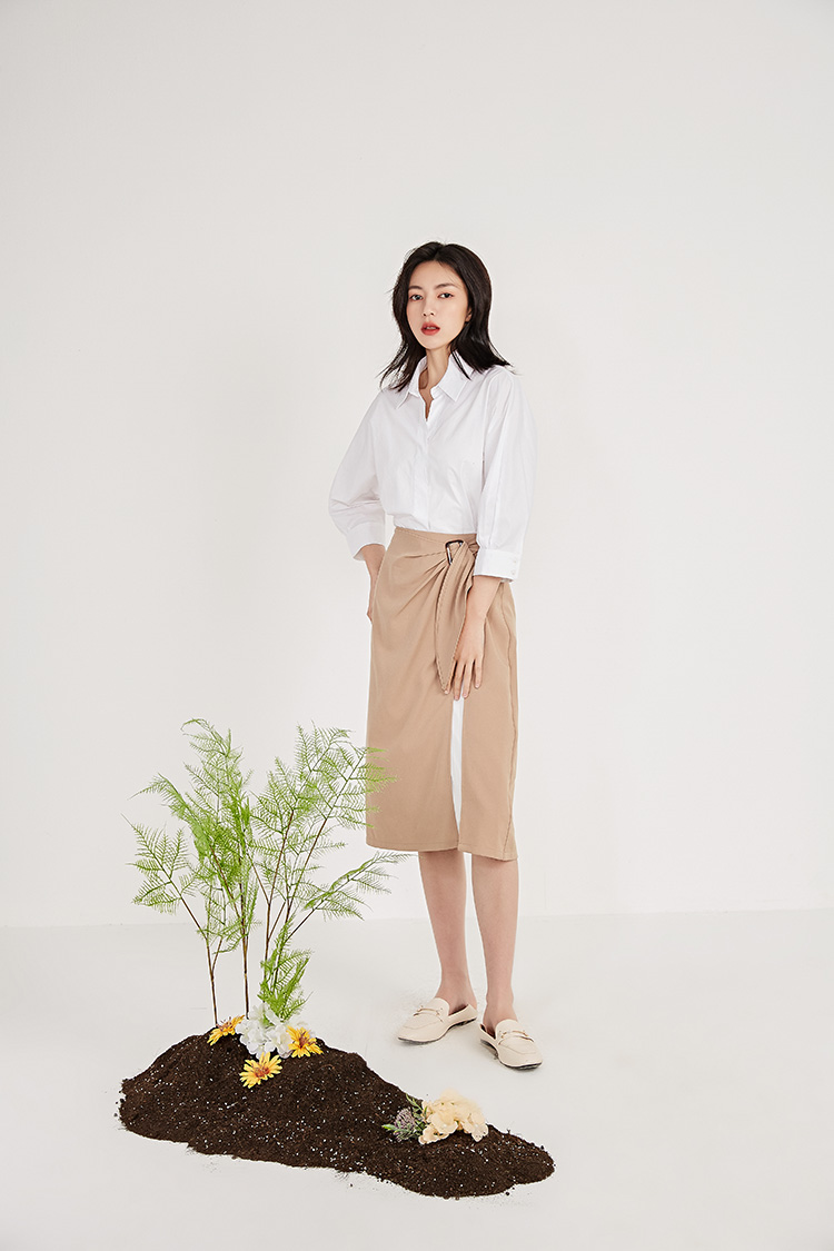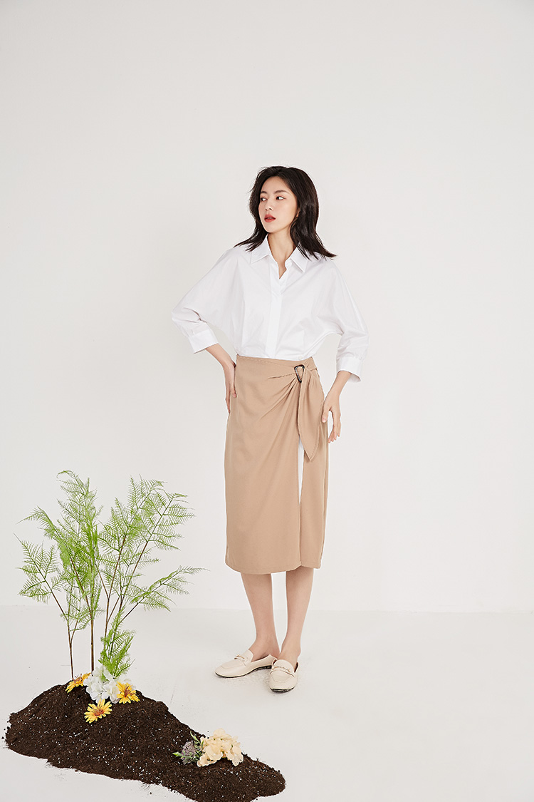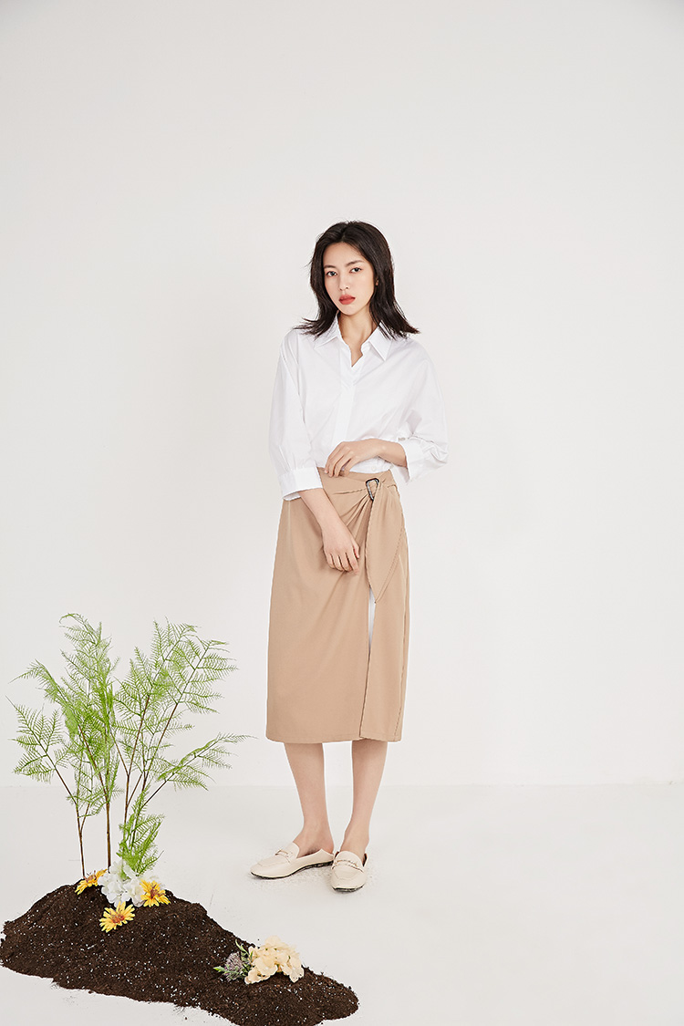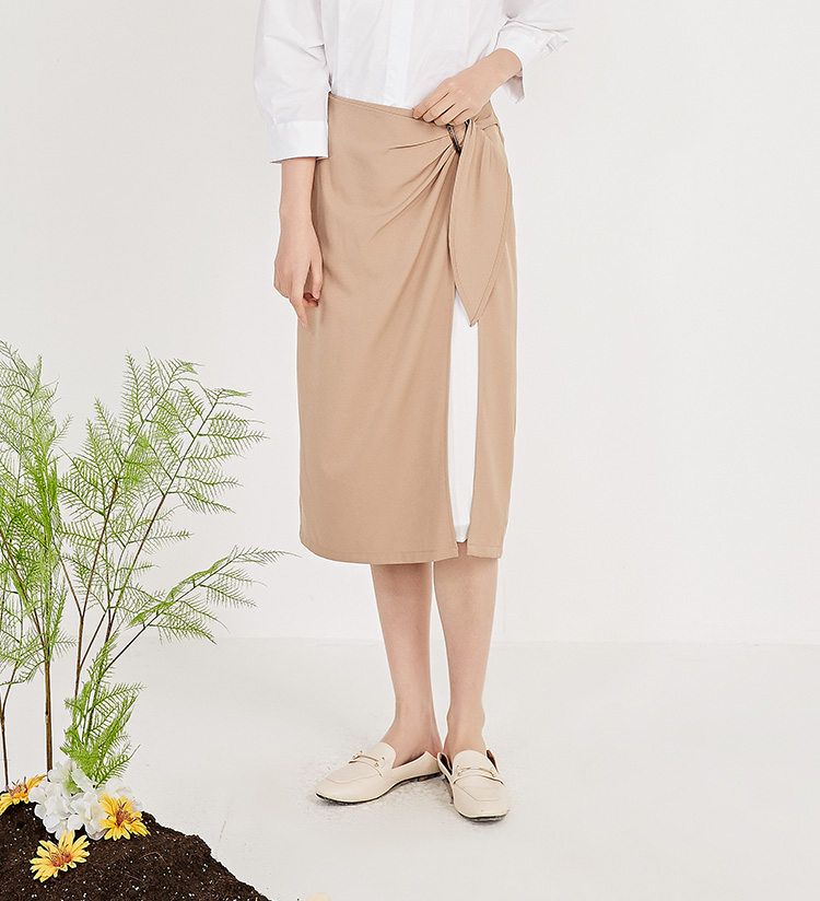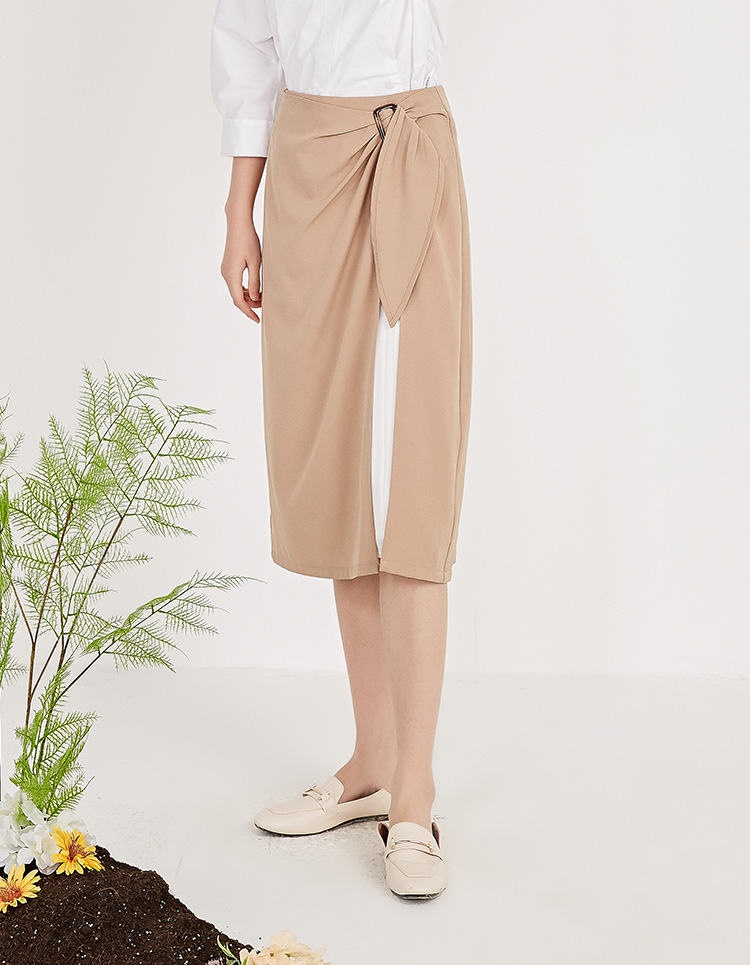 NUTS春秋新品纯色时尚优雅设计感气质百搭半身裙女211063092B