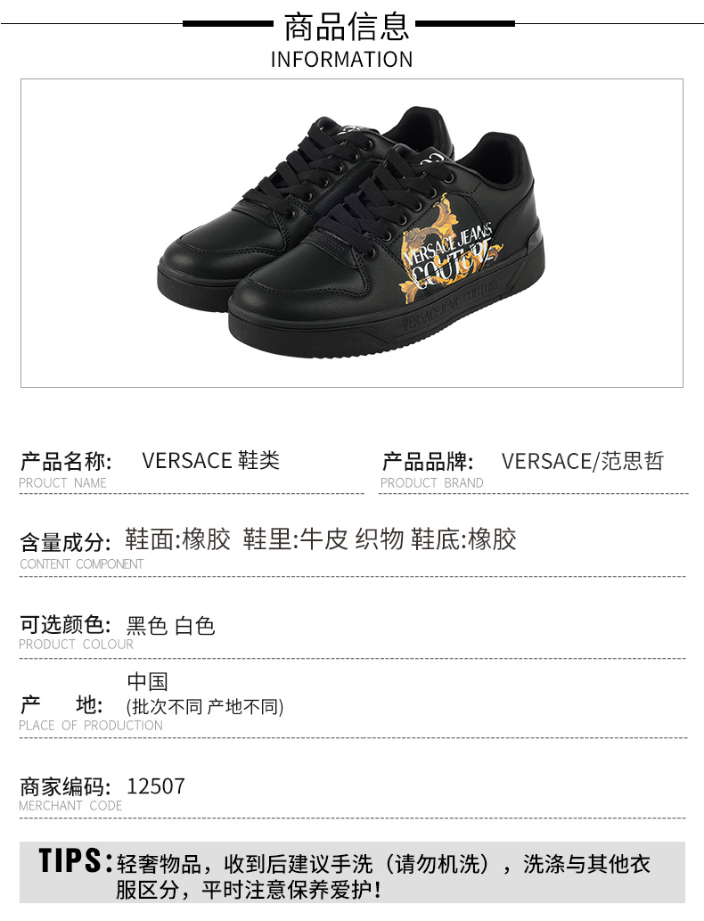 【超惠秒】Versace 范思哲 男士真皮简约百搭运动休闲鞋12507