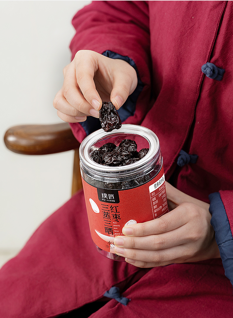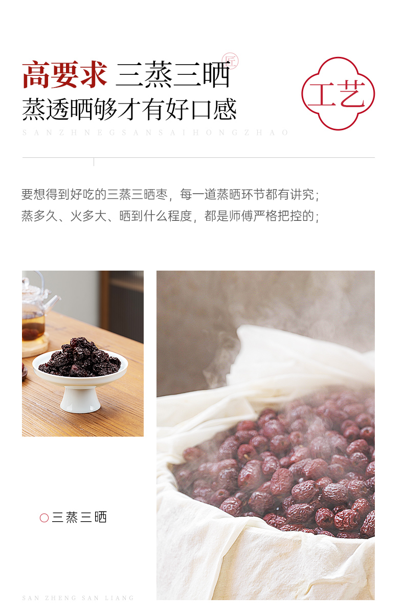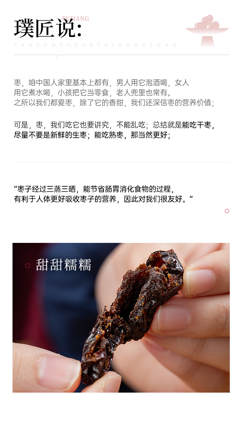 璞匠三蒸三晒红枣旗舰店若羌灰枣零食小吃食品去核大枣干即食蒸枣
