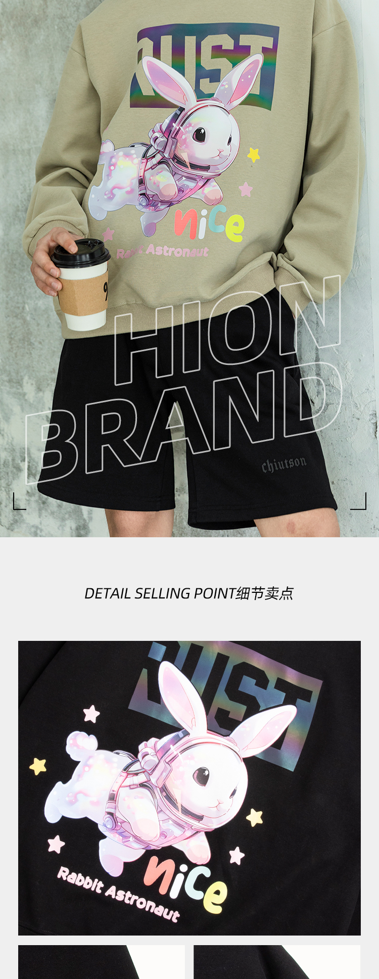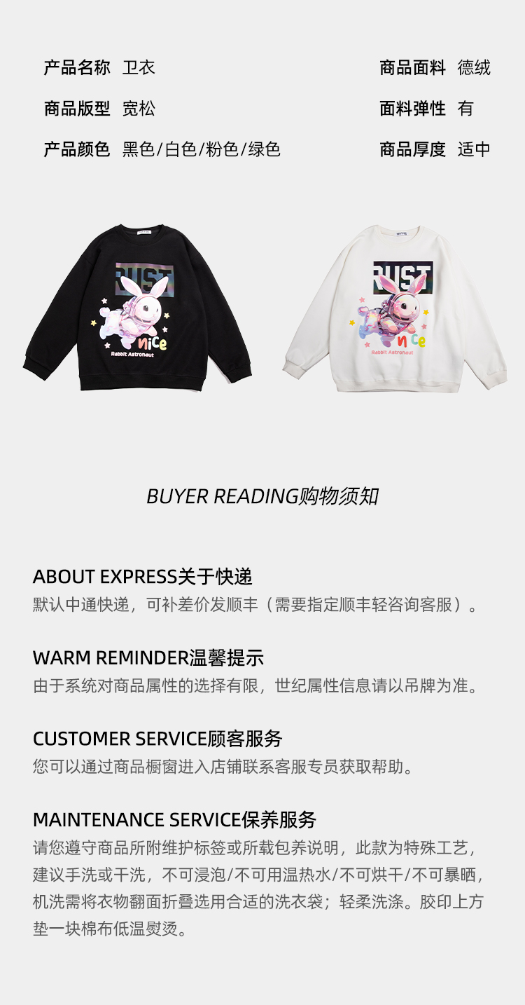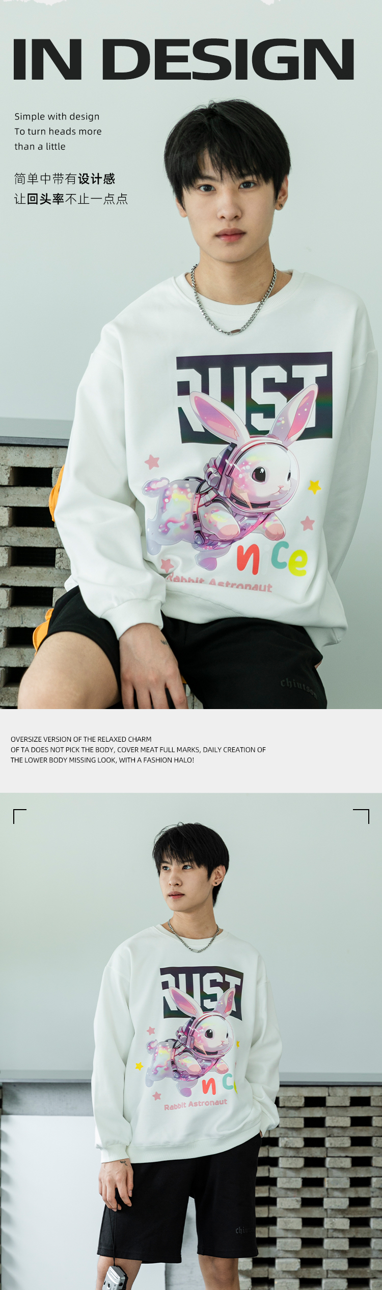 秋冬宇航兔印花卫衣潮酷时尚圆领加绒情侣款休闲卫衣SZ2741