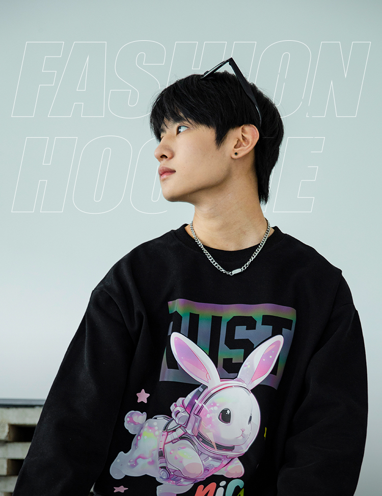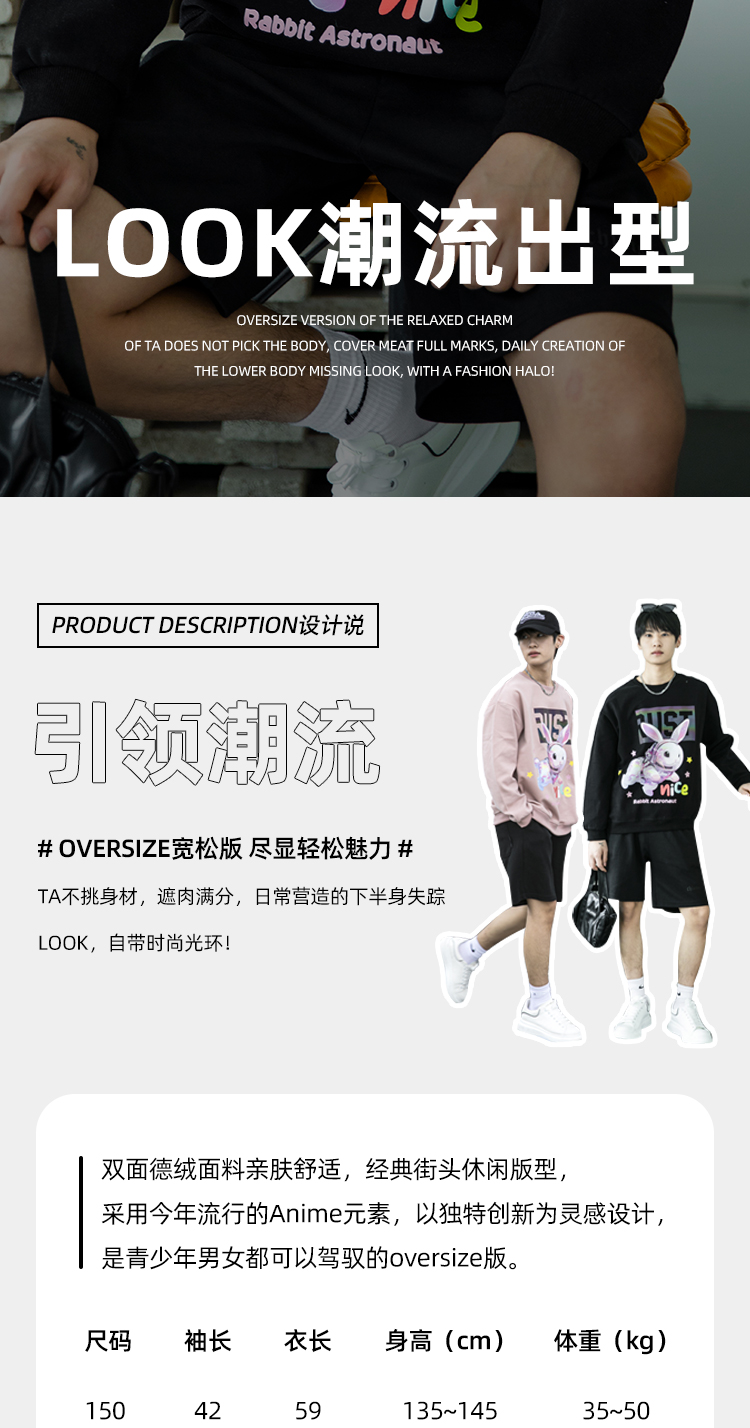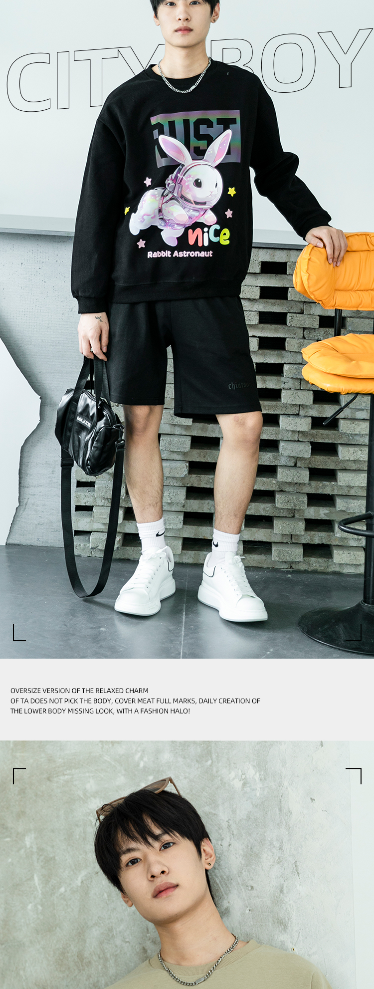 秋冬宇航兔印花卫衣潮酷时尚圆领加绒情侣款休闲卫衣SZ2741