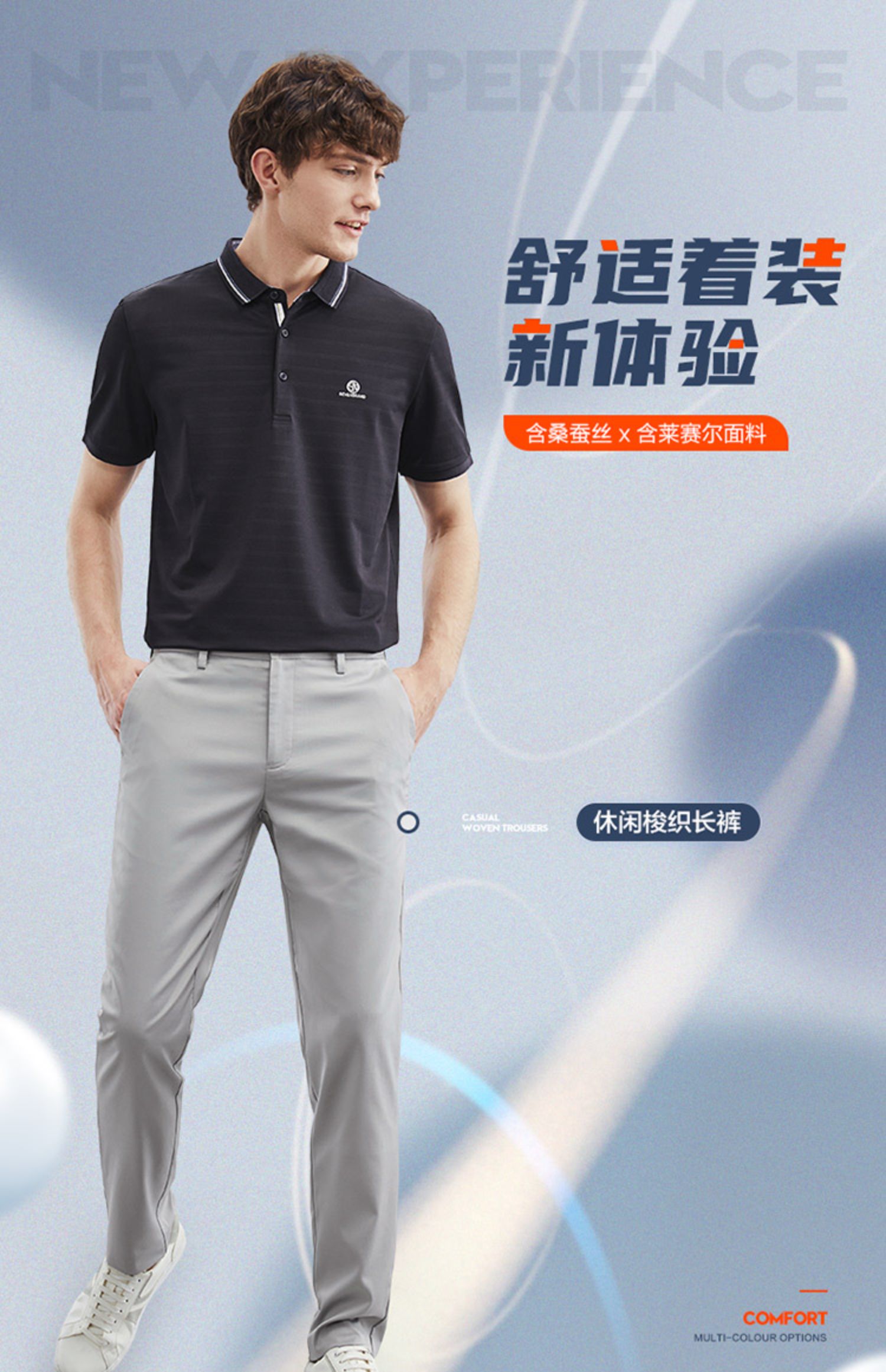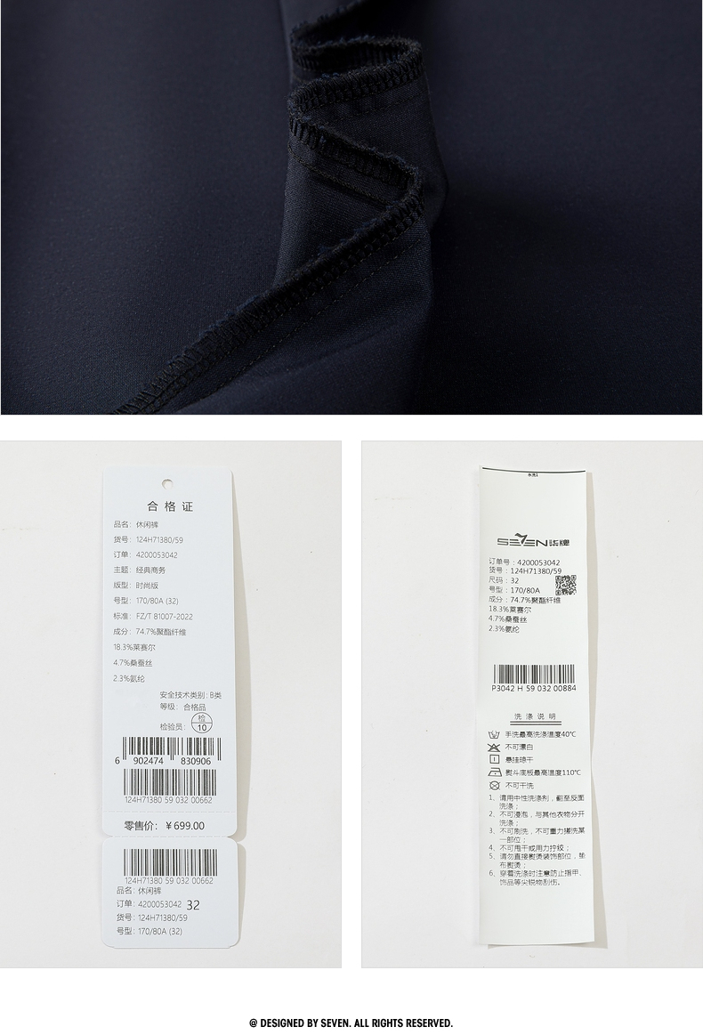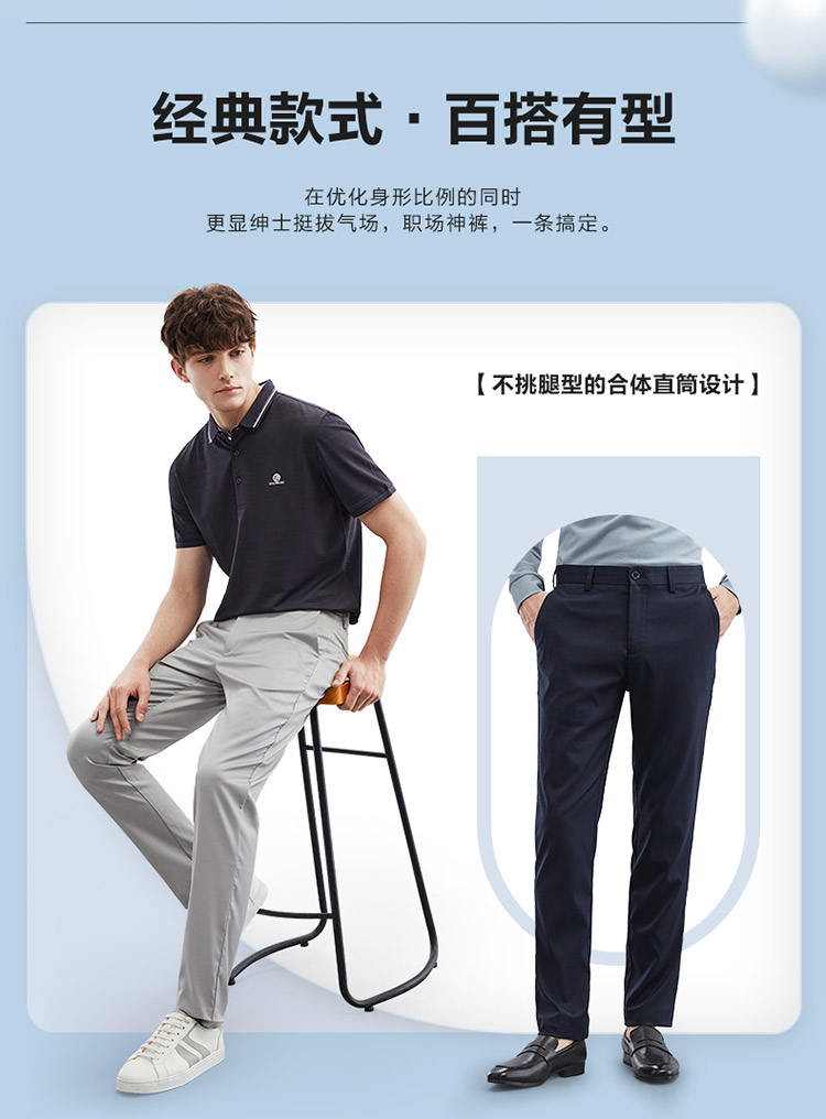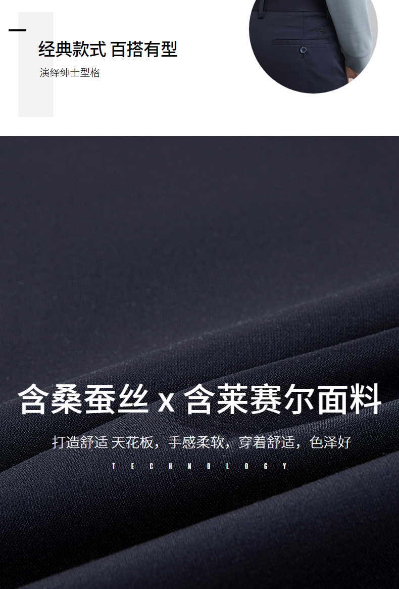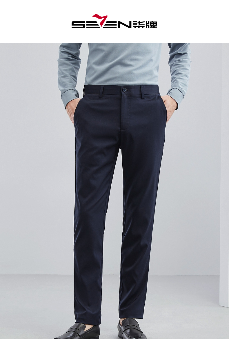 【直降】柒牌男装休闲裤春夏新款商务通勤桑蚕丝上班直筒长裤 124H71380