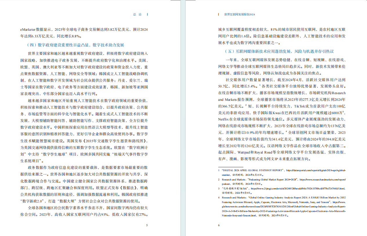 当世界百年未有之大变局加速演进,国际格局和秩序复杂演变。互联网、大数据、云计算、人工智能、区块链等新技术深刻演变,产业数字化、智能化、绿色化转型不断加速,智能产业、数字经济蓬勃发展,极大改变全球要素资源配置方式、产业发展模式和人民生活方式。同时,全球产业链供应链加速重构重组,网络和数据安全风险日益渗透,网络空间碎片化程度加剧,网络空间国际治理面临新的机遇和挑战。建设和维护一个和平、安全、开放、合作、有序的网络空间是各国的共同期盼,构建网络空间命运共同体日益成为国际社会的广泛共识。中国网络空间研究院精心编纂了《世界互联网发展报告》,对全球互联网发展情况进行分析、总结和评估,旨在客观地反映一年来互联网领域的发展情况并分析发展趋势,主要展示全球携手共建网络空间命运共同体的最新实践,把握世界互联网发展态势,反映各国互联网建设新举措、新进展,力求全面、准确、客观地揭示世界互联网发展的新情况和新特点,为加快构建网络空间命运共同体贡献中国智慧。