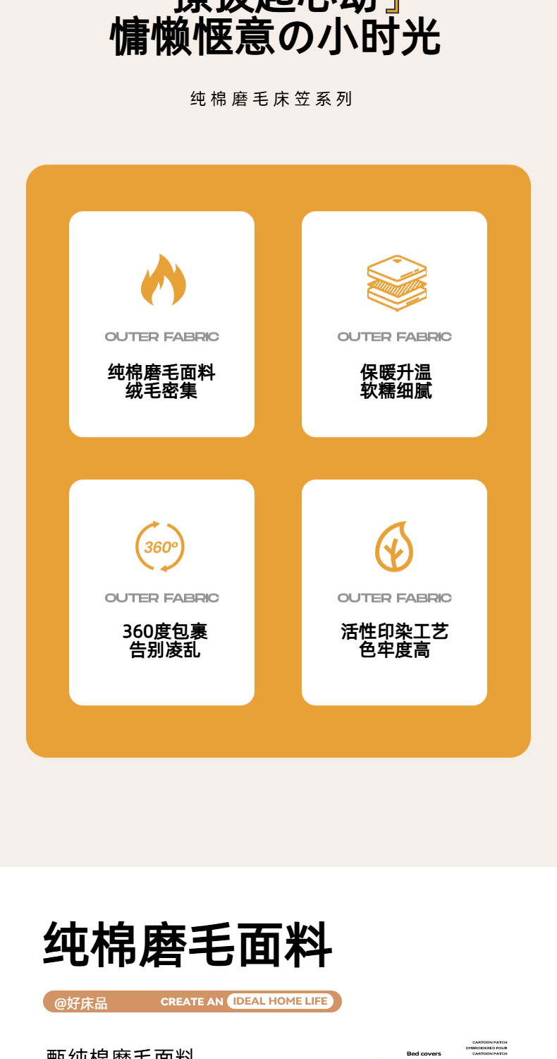 100%棉A类纯棉磨毛床单/床笠 可机洗水洗 A-5443 加倍生活