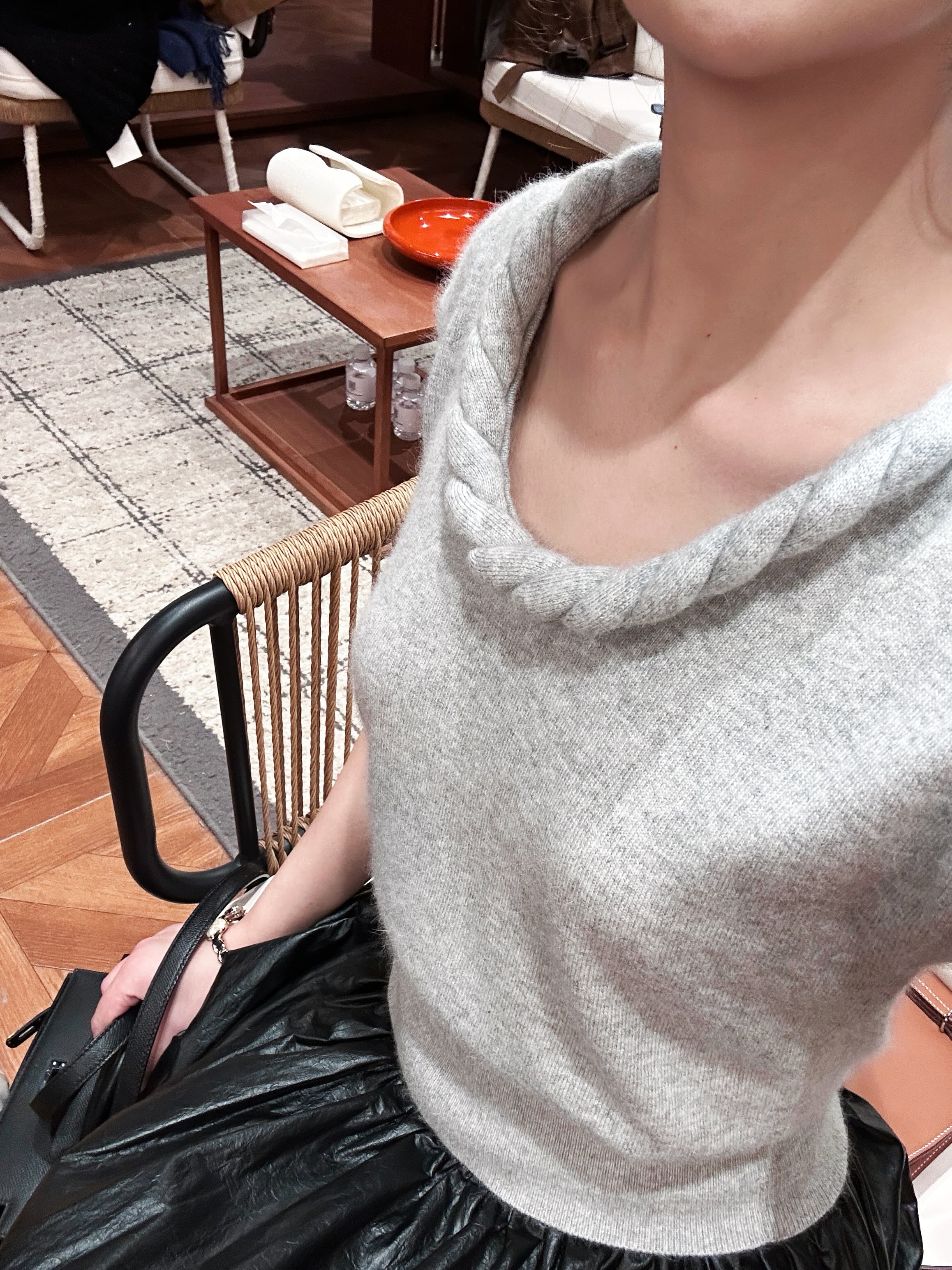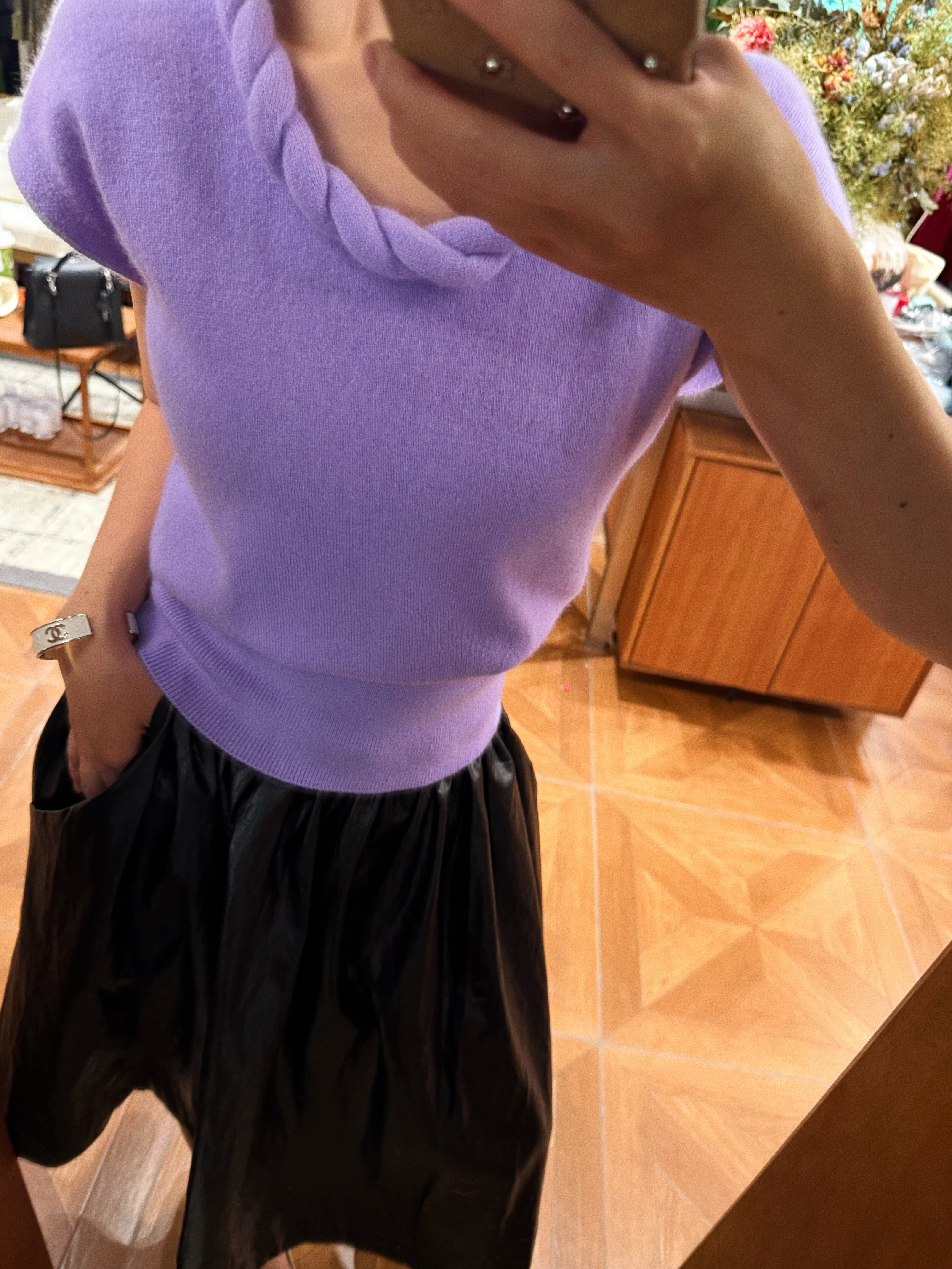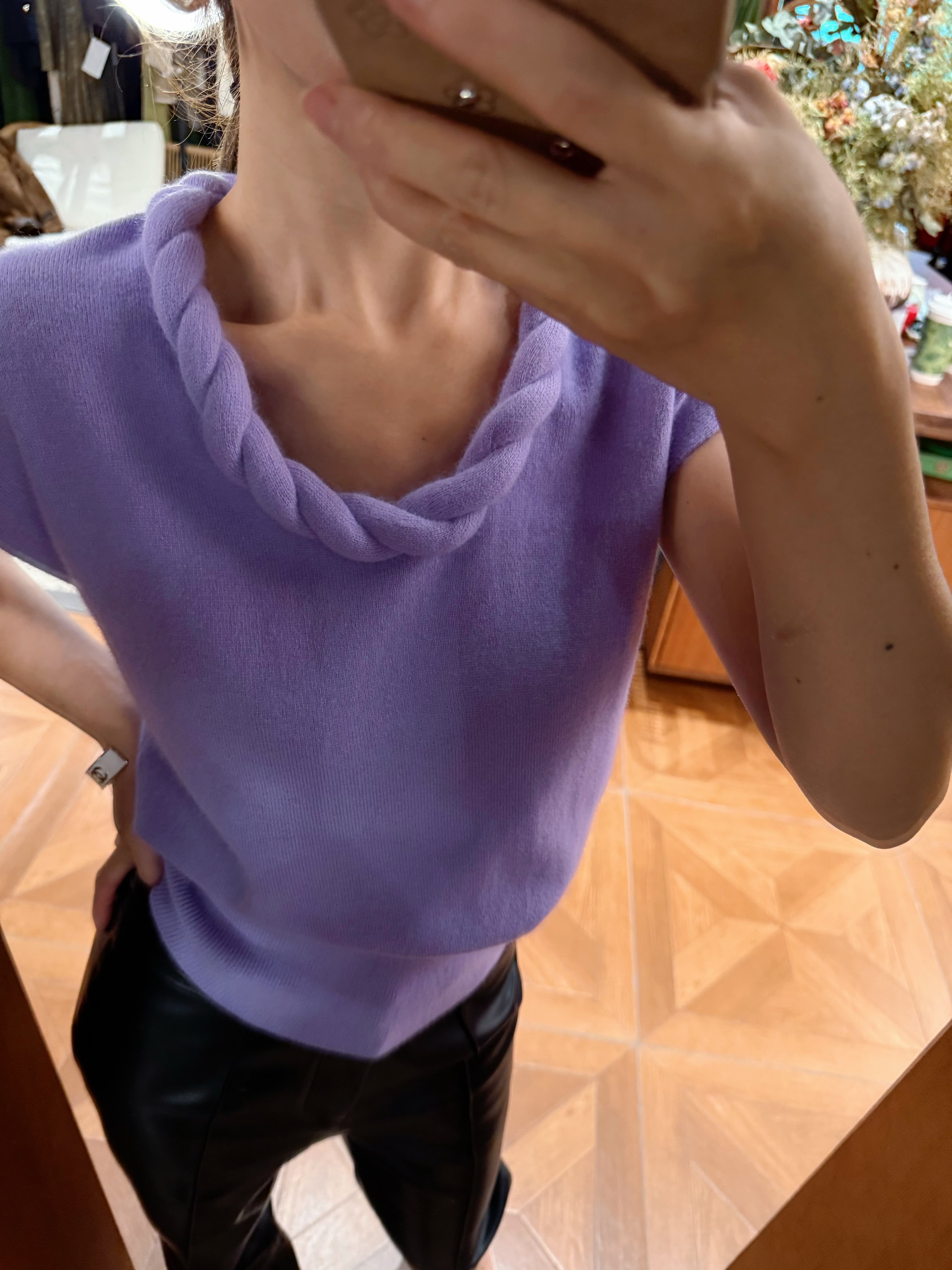 PIAN AI冷小姐# 编织领羊毛2色短袖毛衣