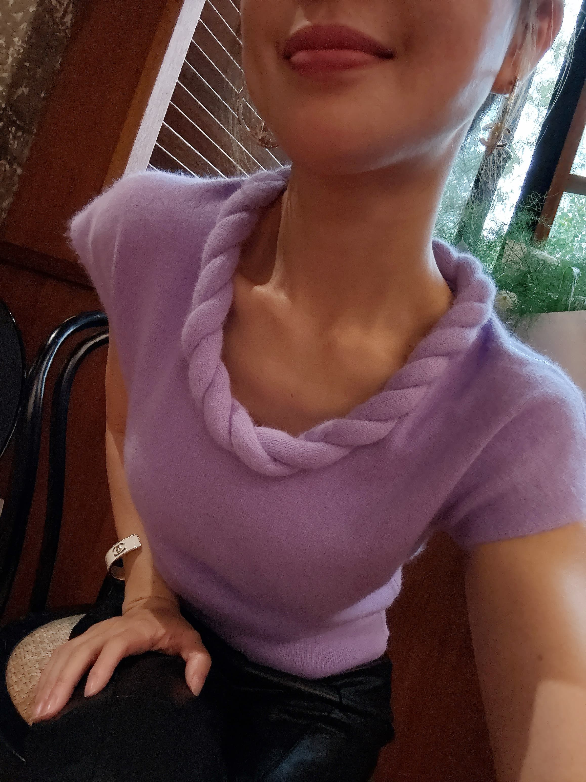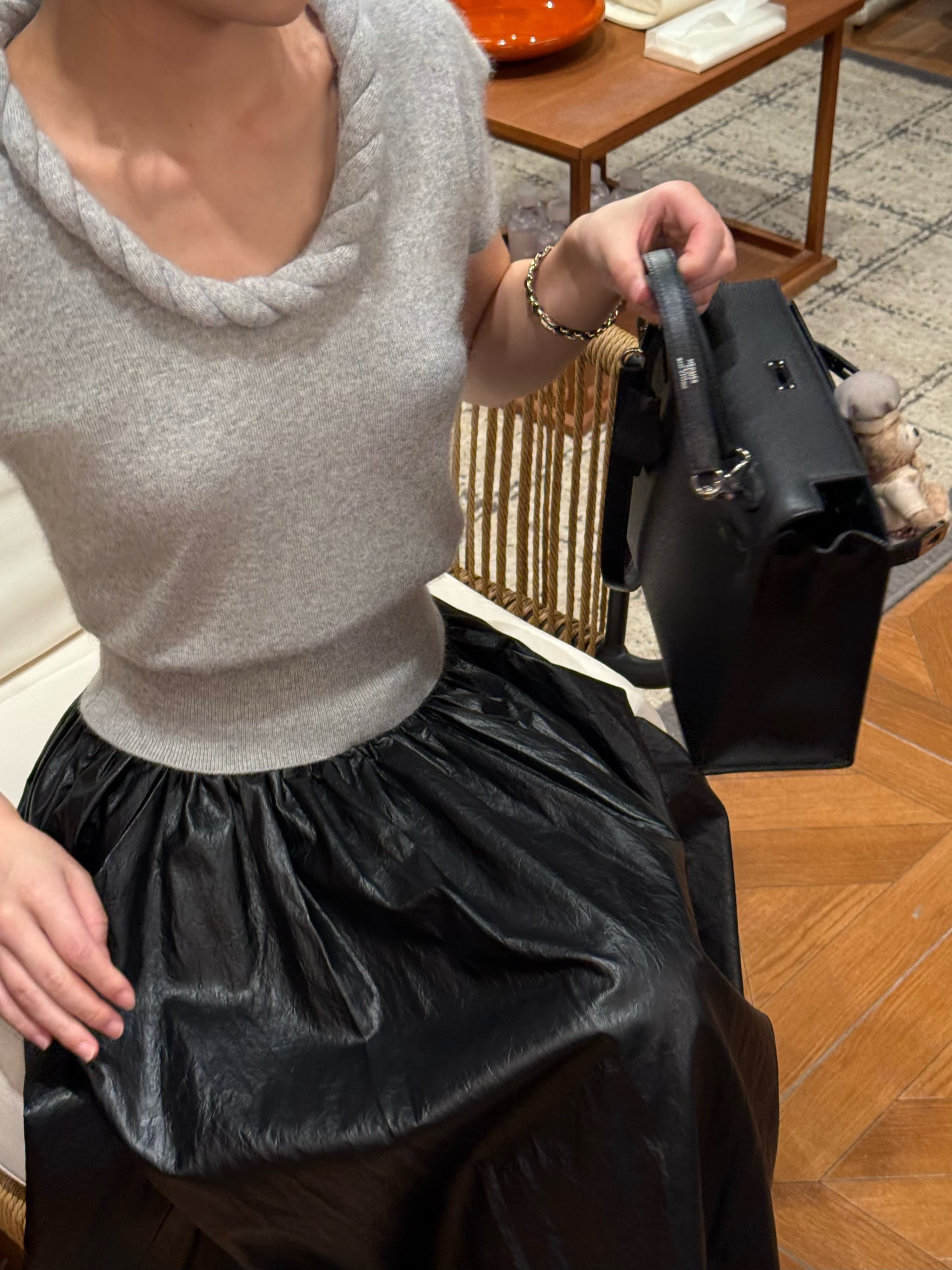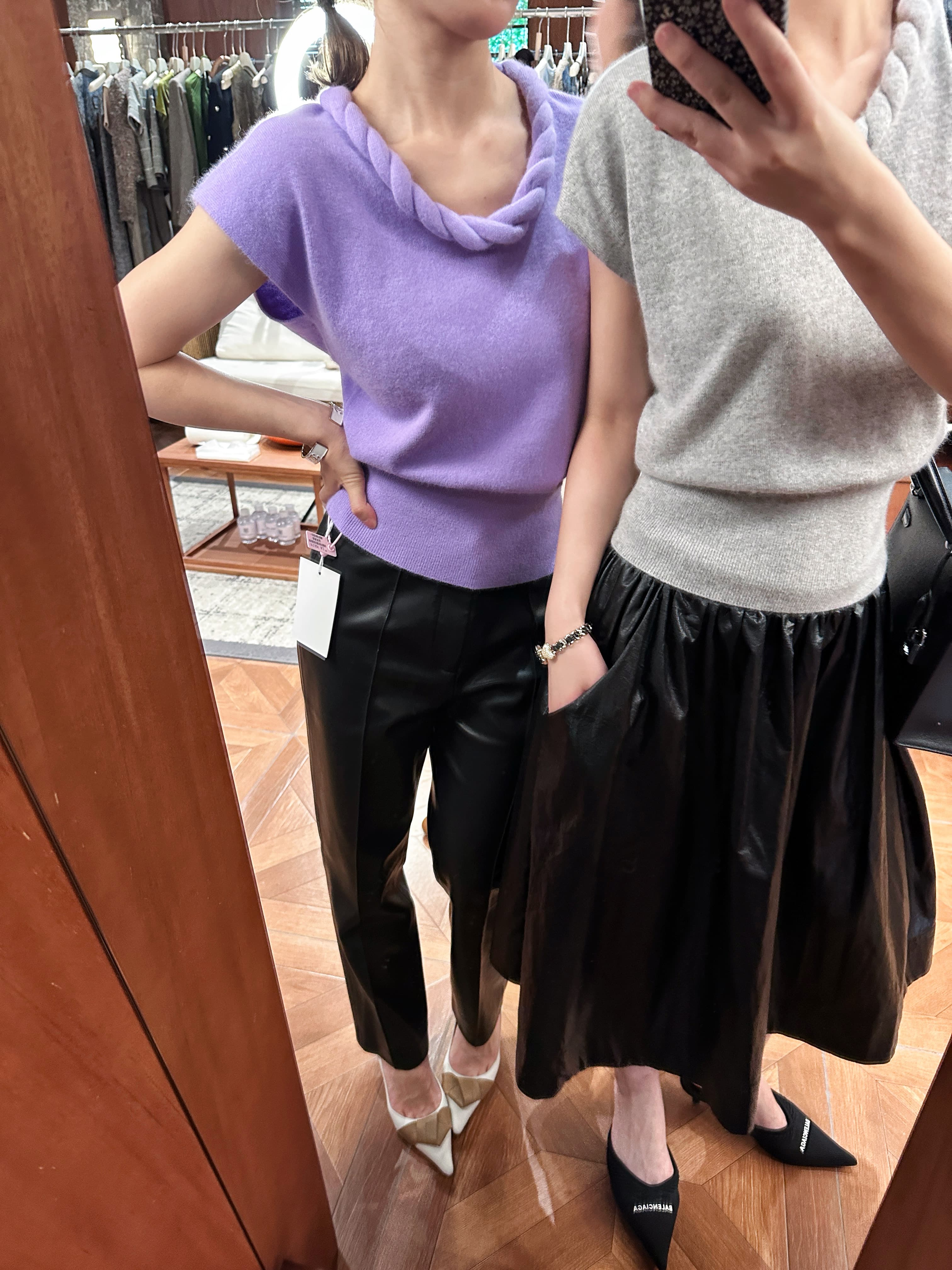 PIAN AI冷小姐# 编织领羊毛2色短袖毛衣