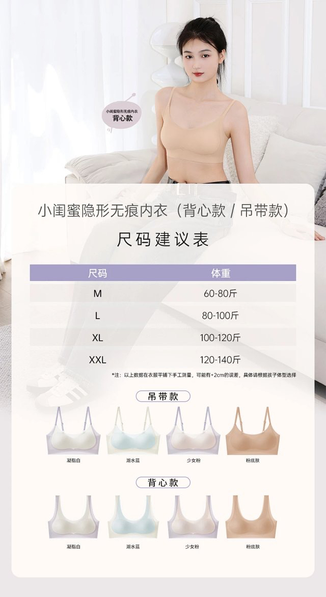 【小闺蜜无痕内衣】专为发育期少女定制 裸色科技 内衣+“背背佳”二合一 背心款/吊带款可选