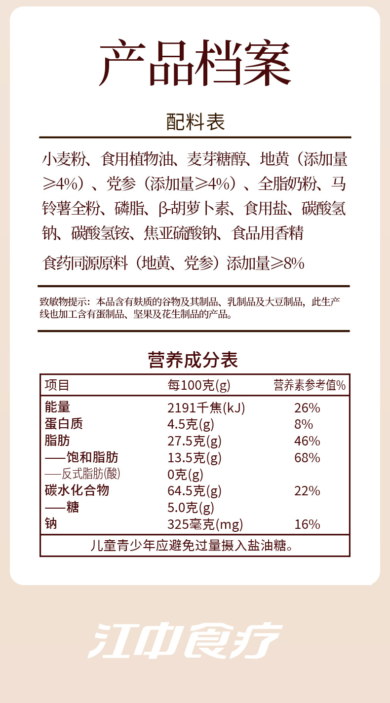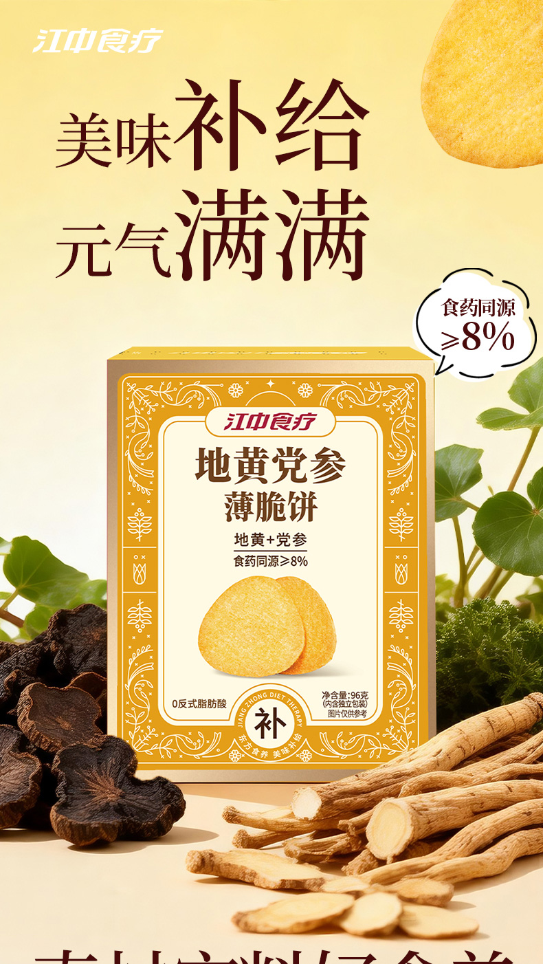 【地黄党参】江中食疗地黄党参薄脆饼干96g 生产日期2025年12月,保质期12个月