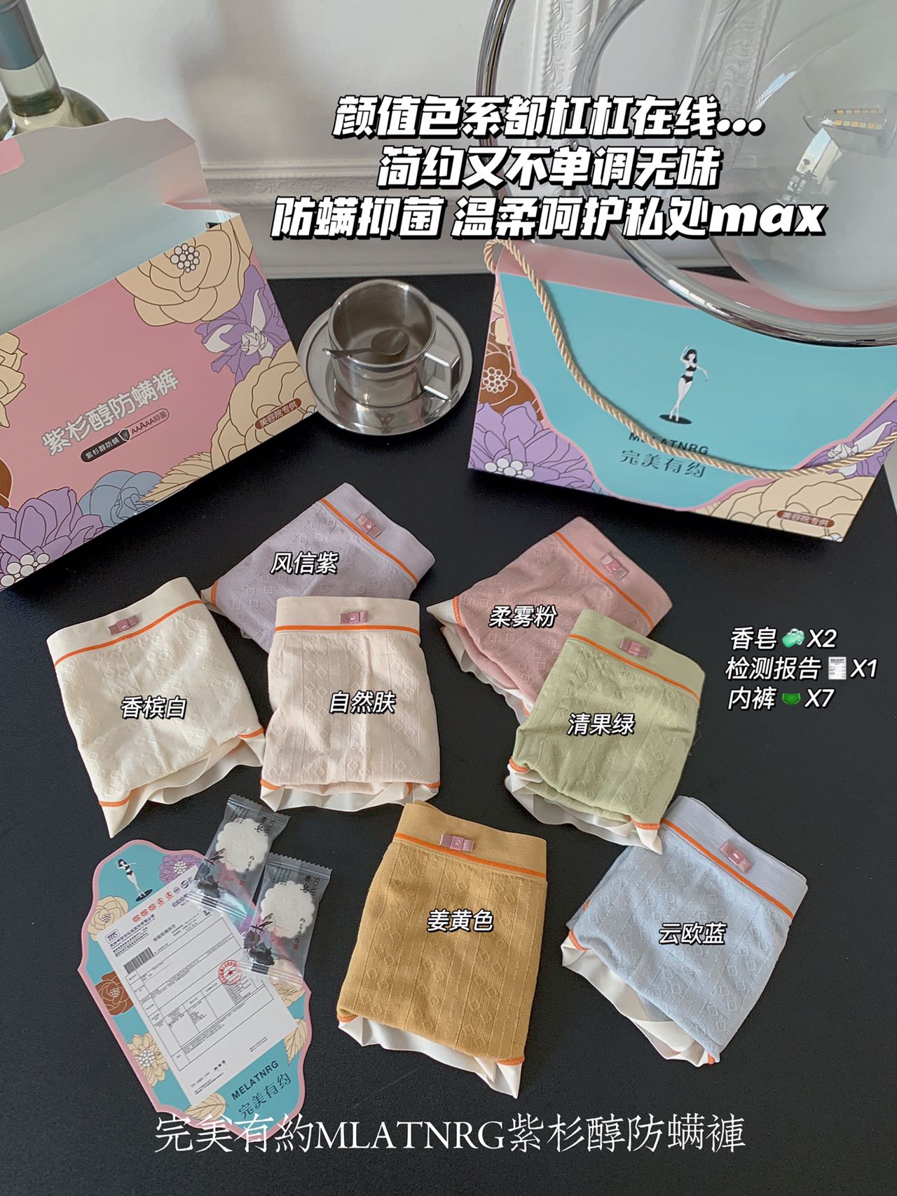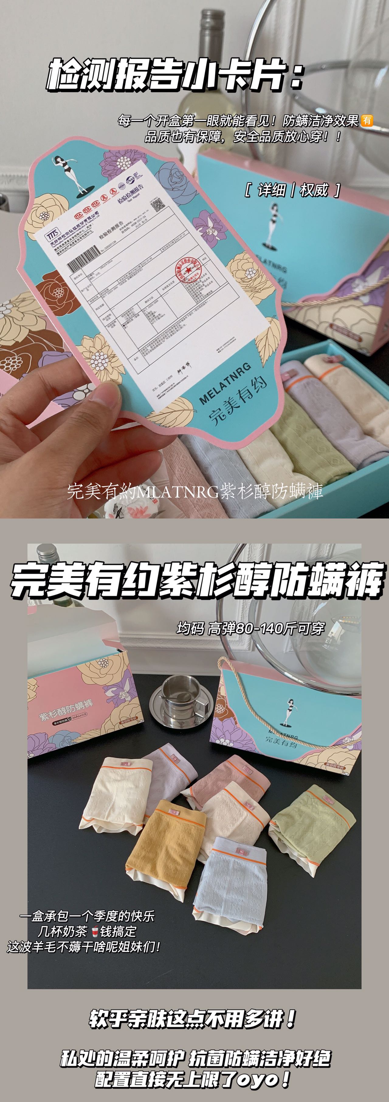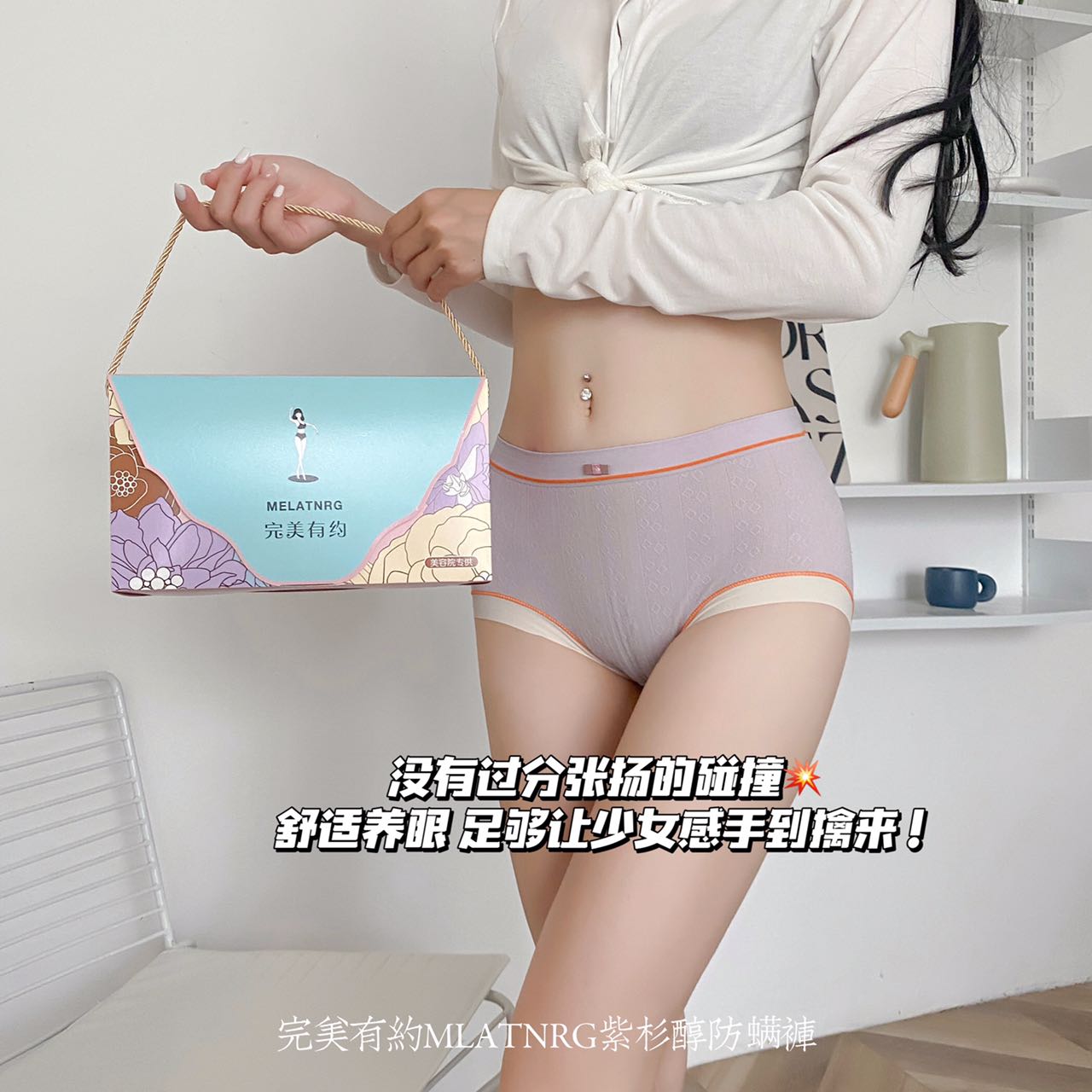 完美有约紫杉醇防螨内裤 莫代尔无缝撞色蜜桃臀 yi菌底档星期裤 女士三角裤