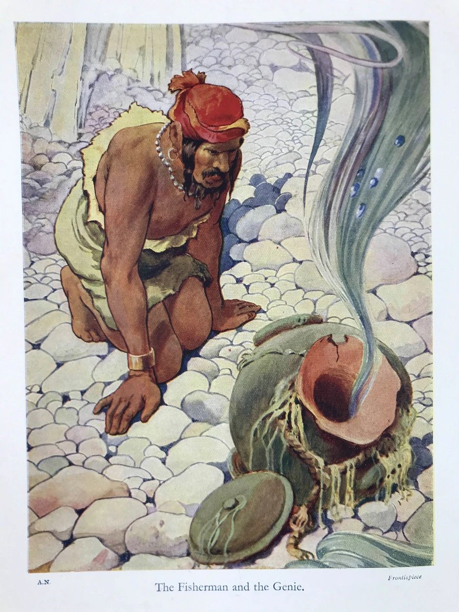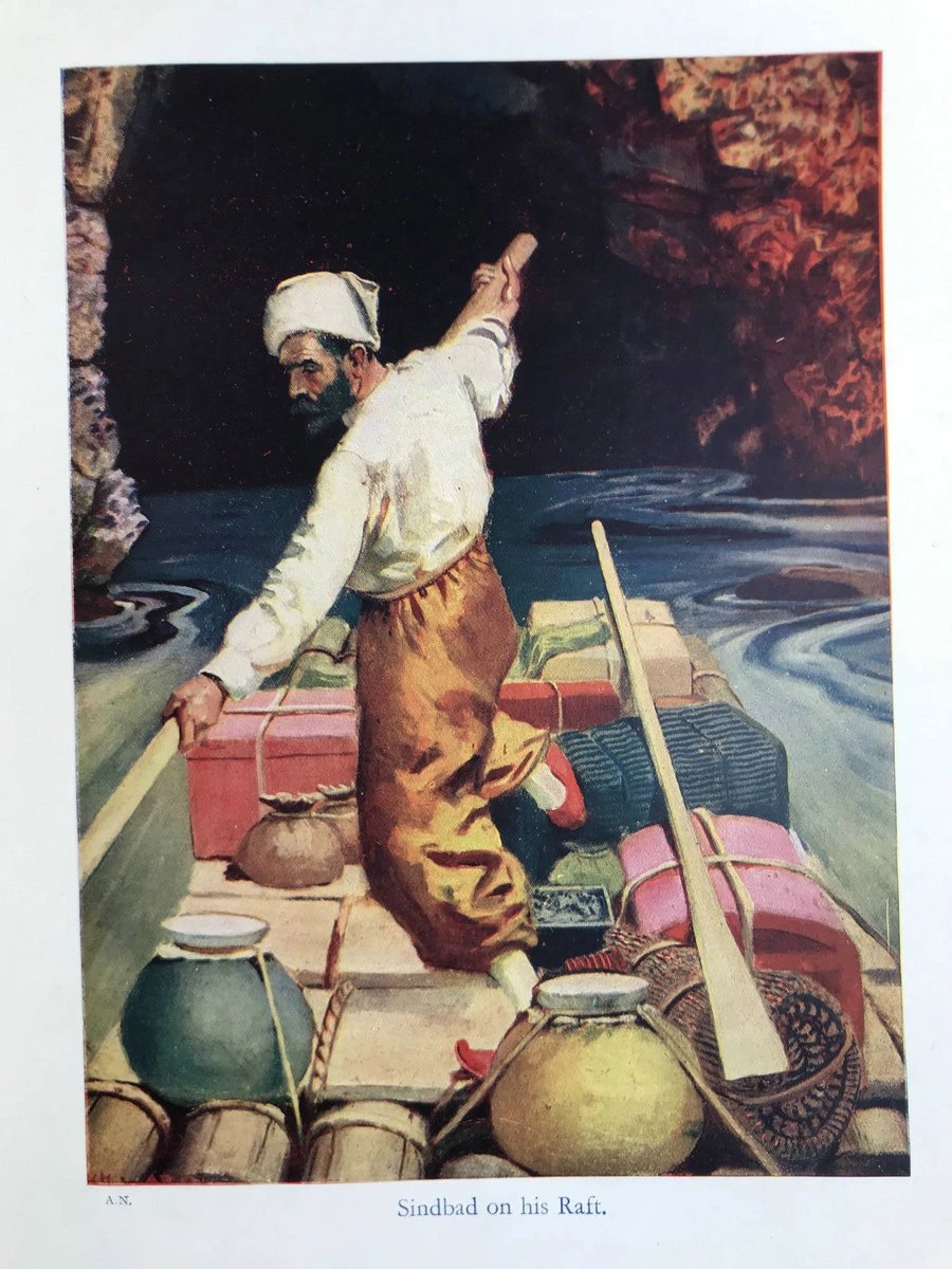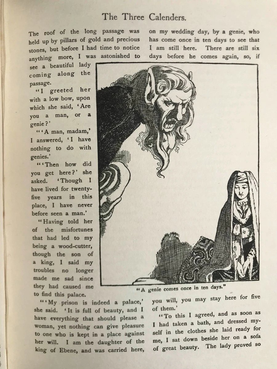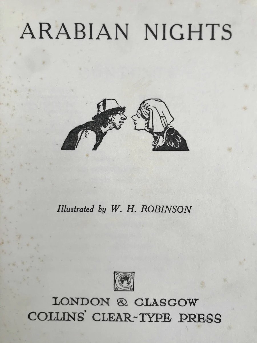 被收录进牛津词典的插画家!约20世纪早期 天方夜谭 威廉·希斯·罗宾森8幅彩色与大量黑白插图 漆布精装16开