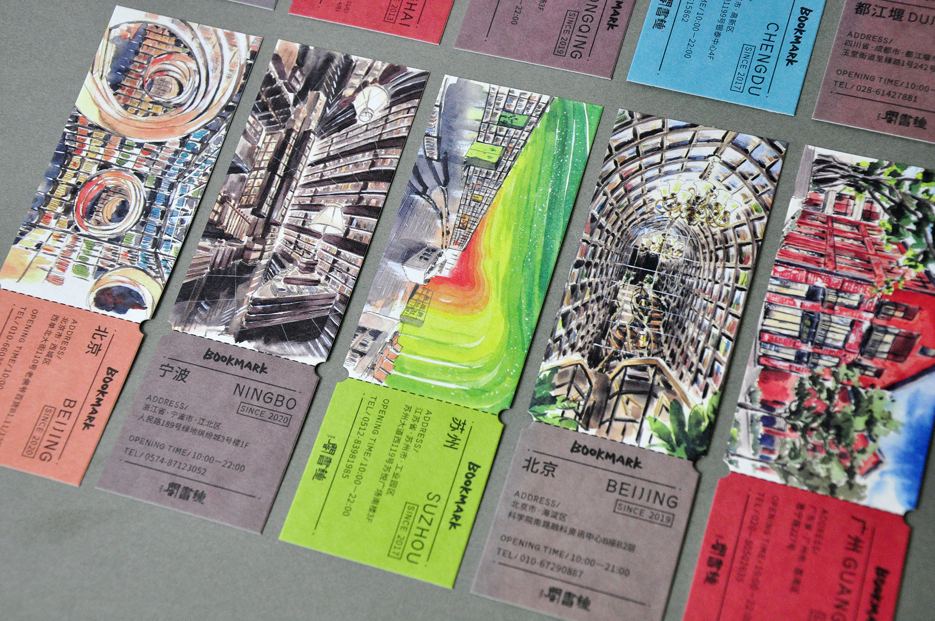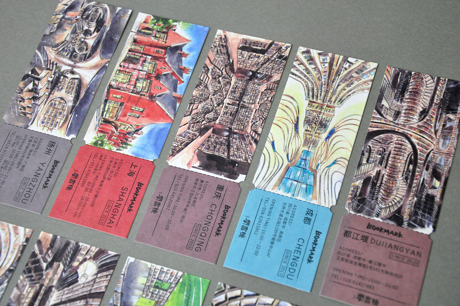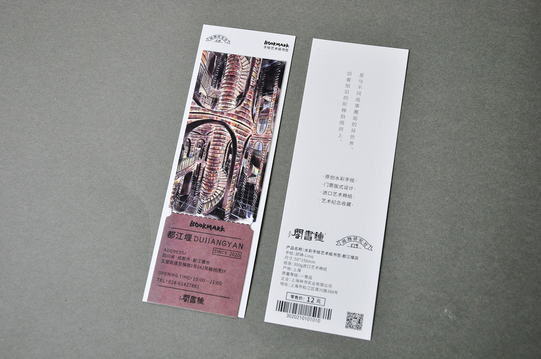 钟书阁水彩手绘艺术纸书签-古典中国风钟书阁定制中国各大门店精美图案书签纸张质感厚实耐用 给热爱读书的你一份小礼物