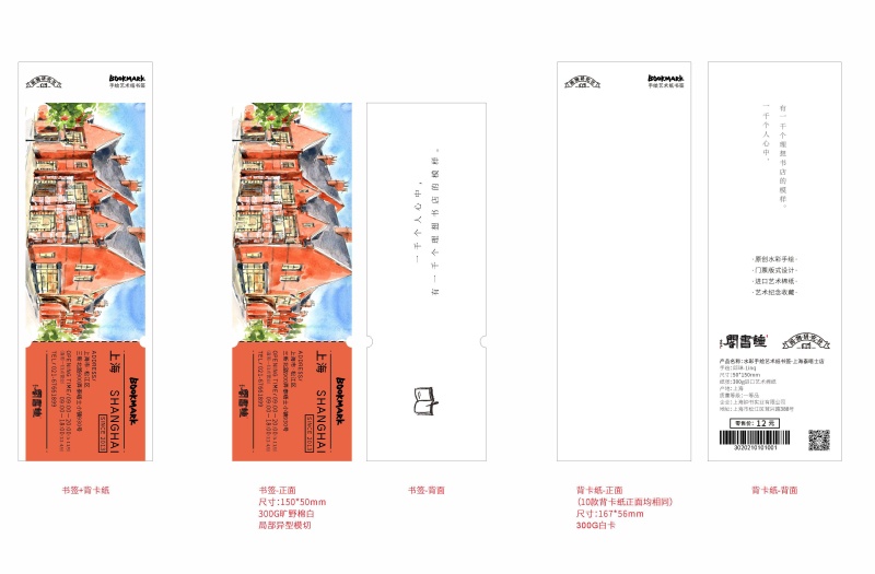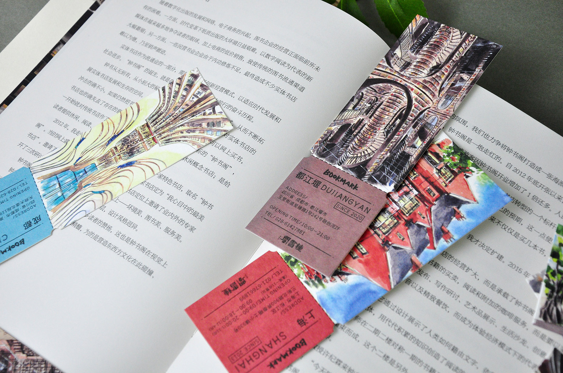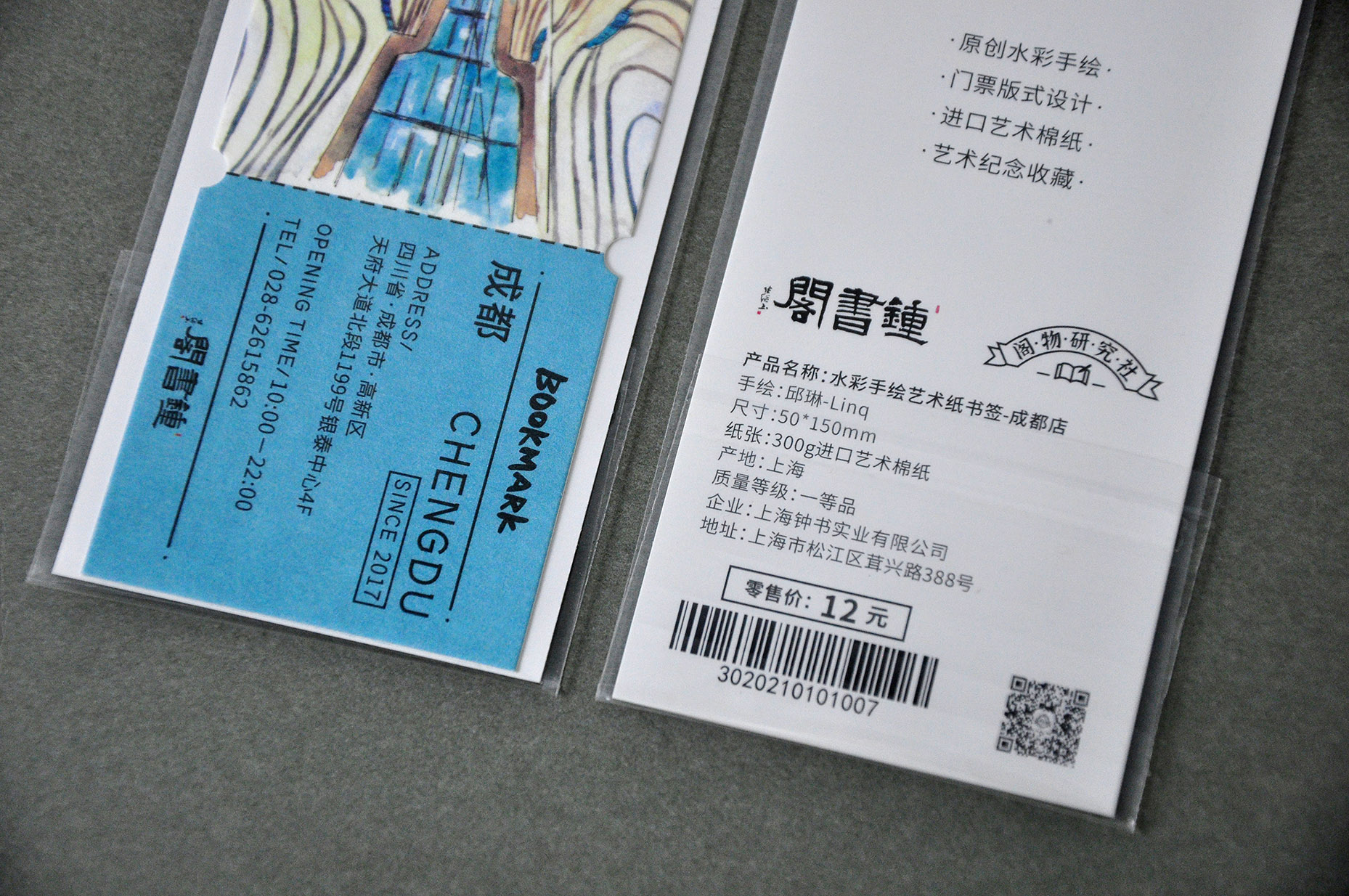 钟书阁水彩手绘艺术纸书签-古典中国风钟书阁定制中国各大门店精美图案书签纸张质感厚实耐用 给热爱读书的你一份小礼物