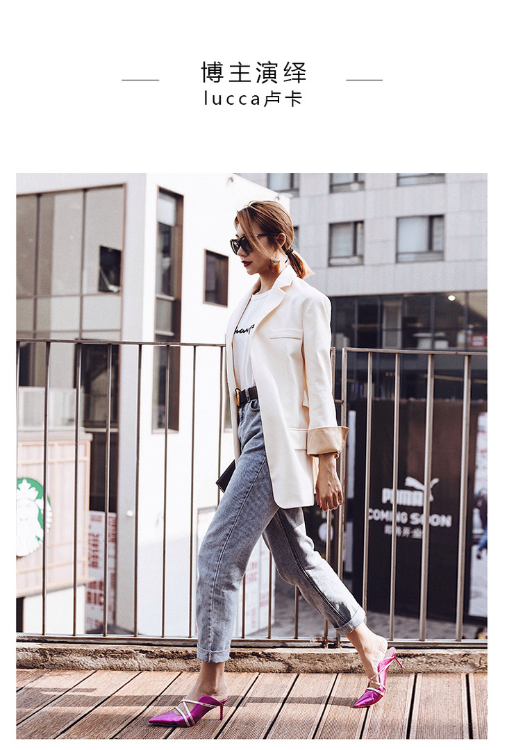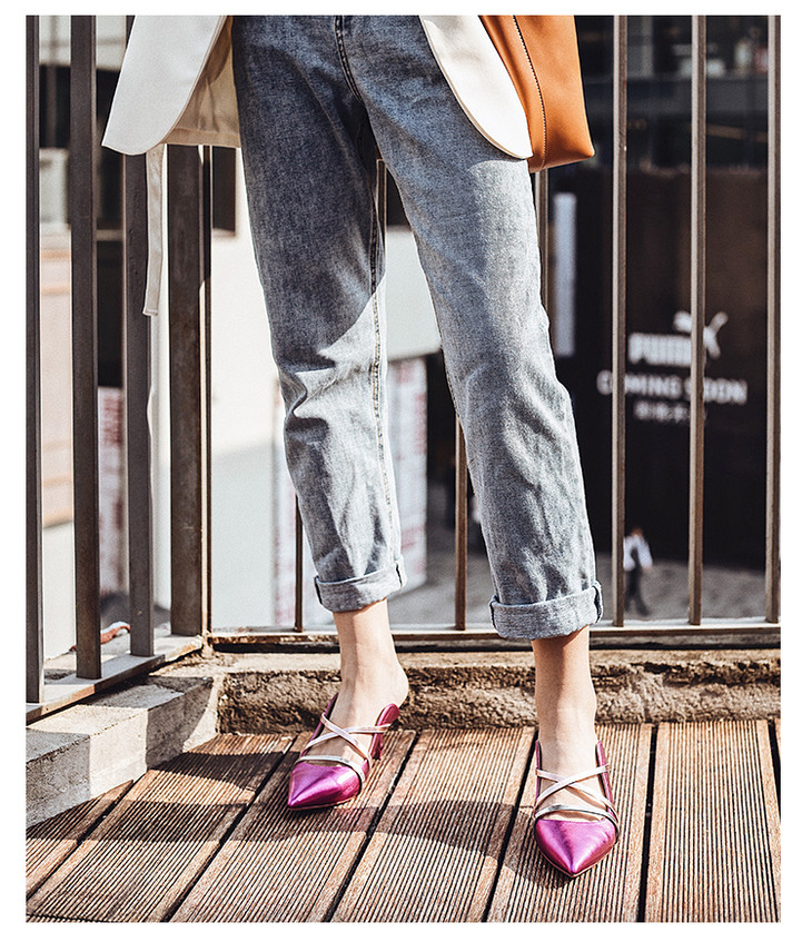 lost in echo 2019女春款细交叉条带尖头细跟穆勒鞋