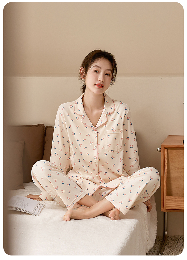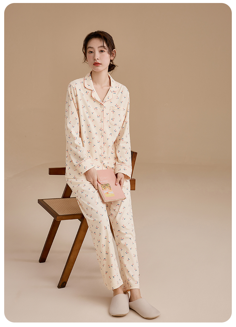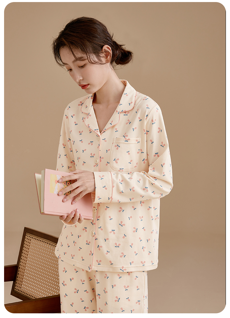 康妮雅女式长袖长裤开襟套装