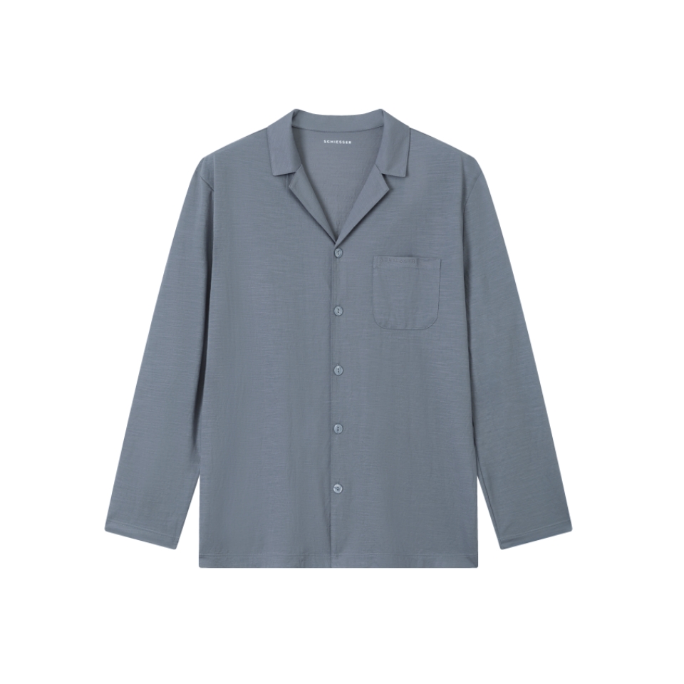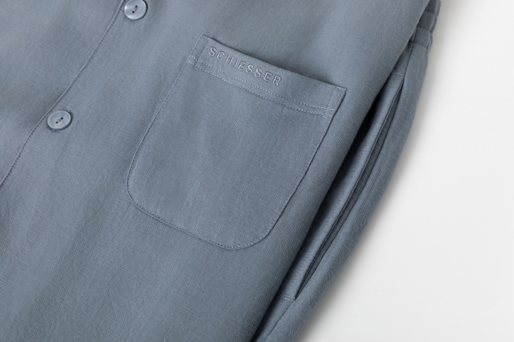 【科技麻】SCHIESSER德国舒雅男士翻领开衫长袖长裤套装35/22783H