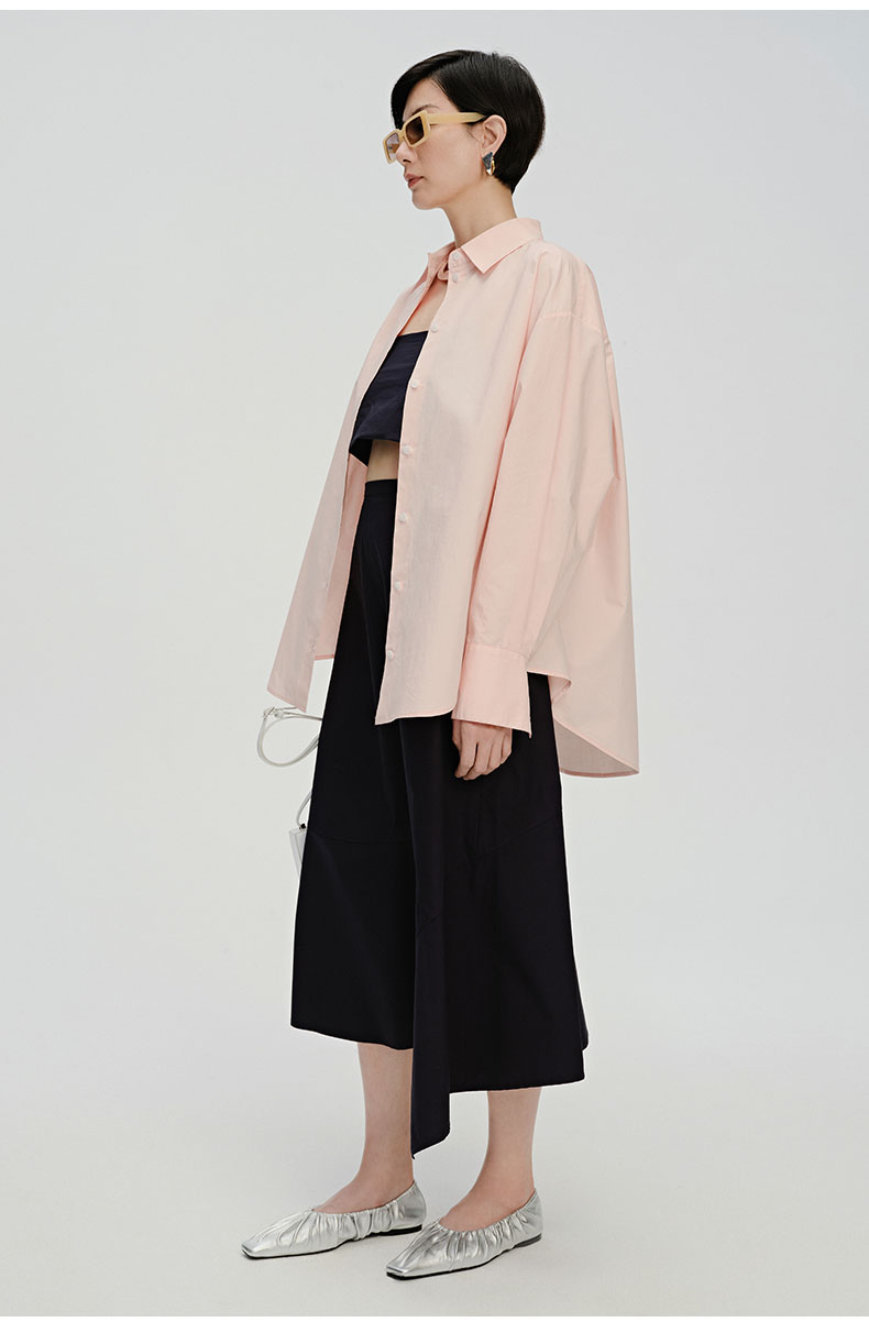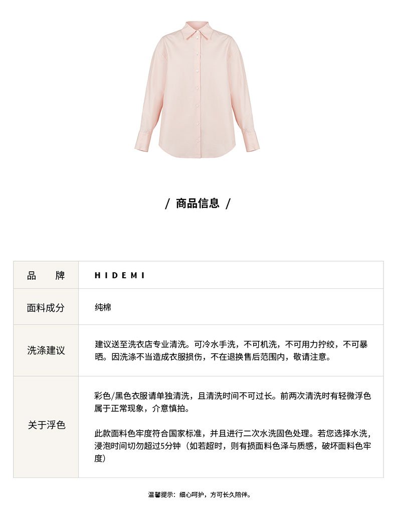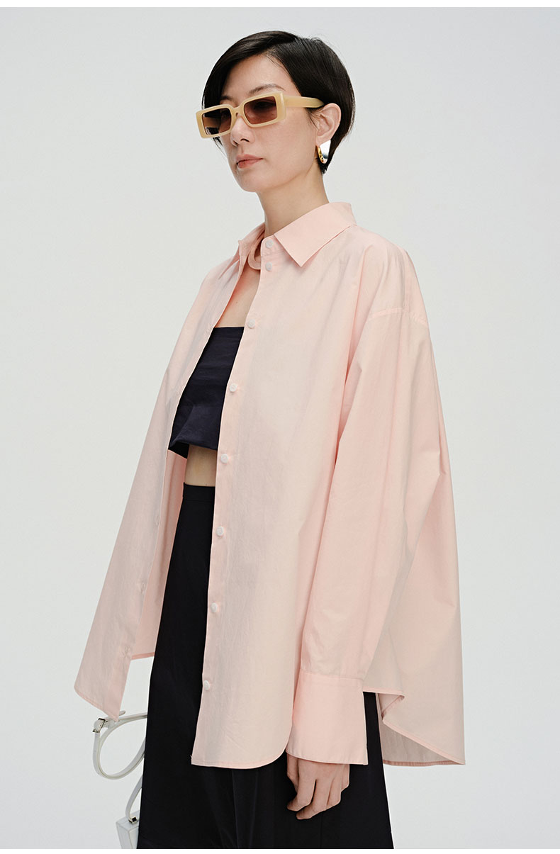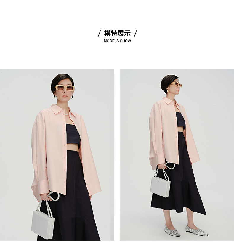 HIDEMI 樱花粉简约廓形休闲宽松经典款衬衫
