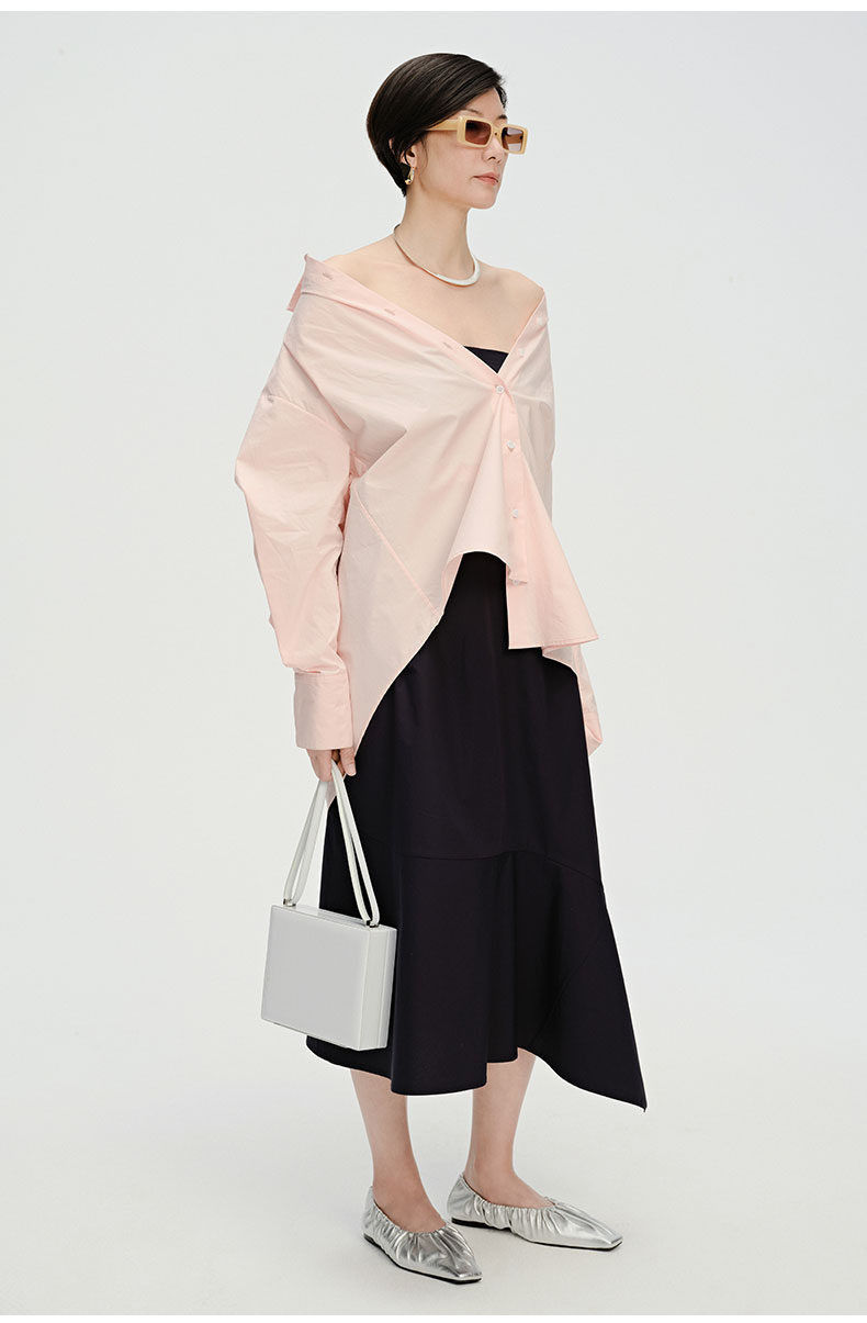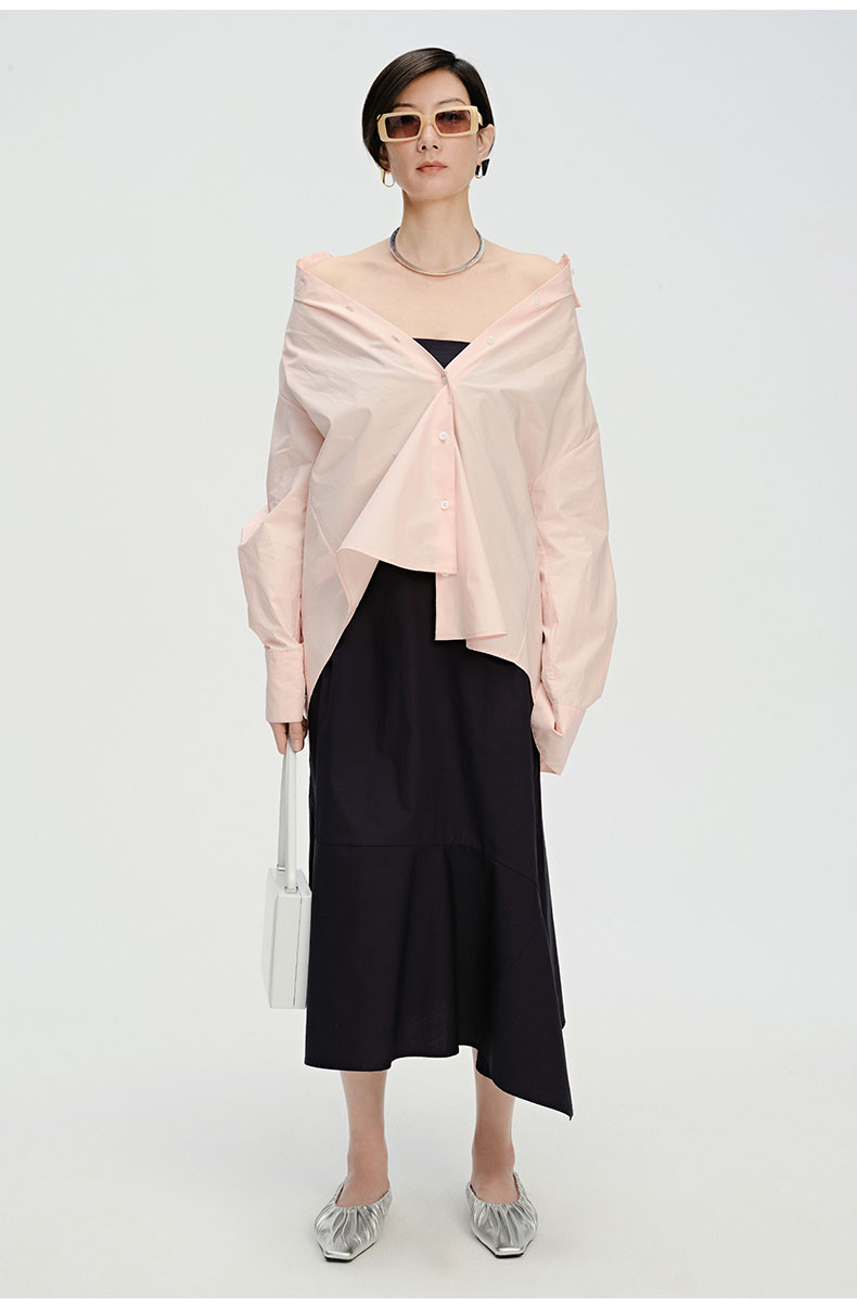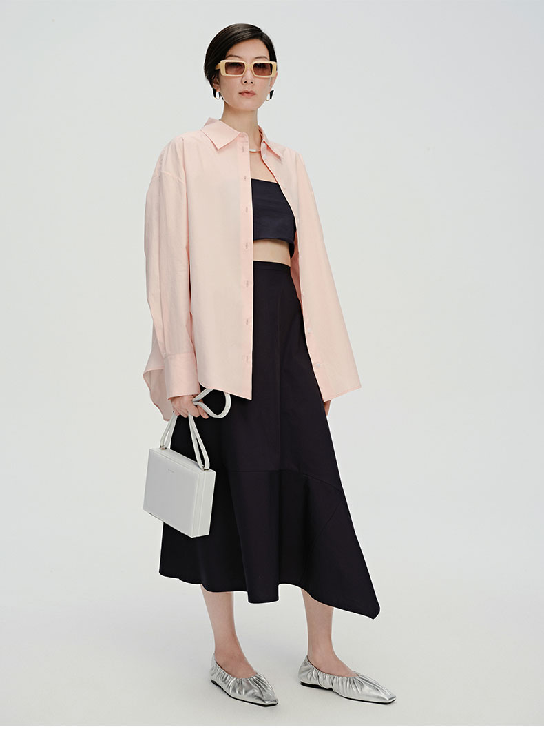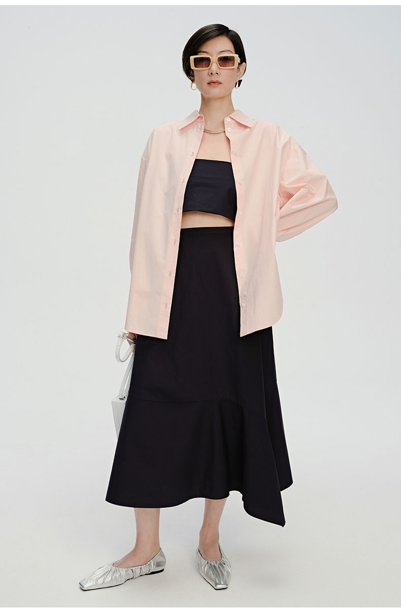 HIDEMI 樱花粉简约廓形休闲宽松经典款衬衫