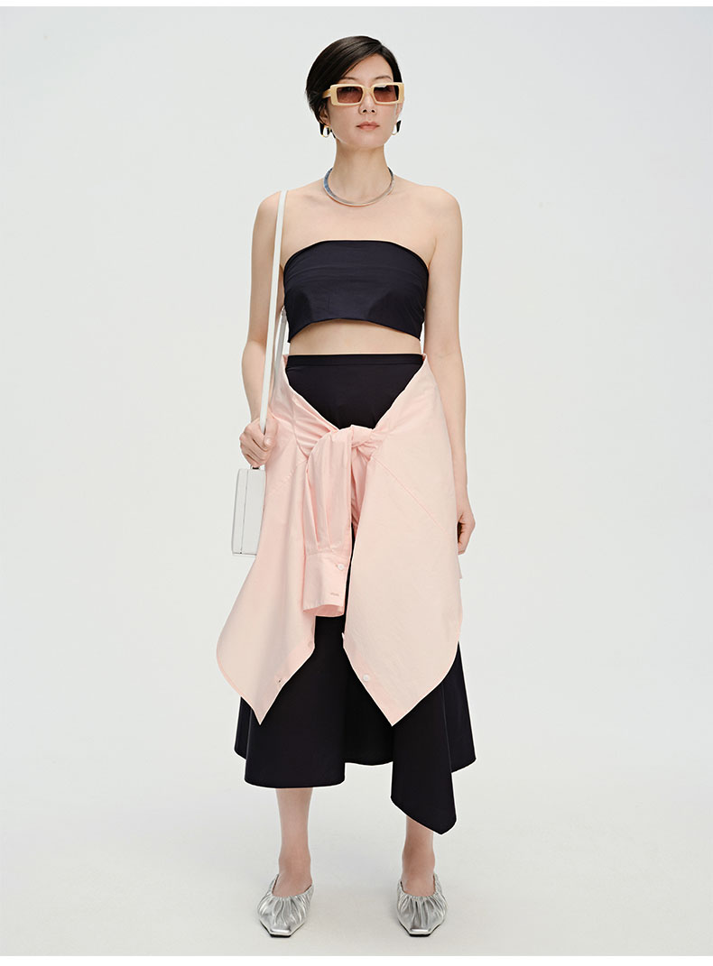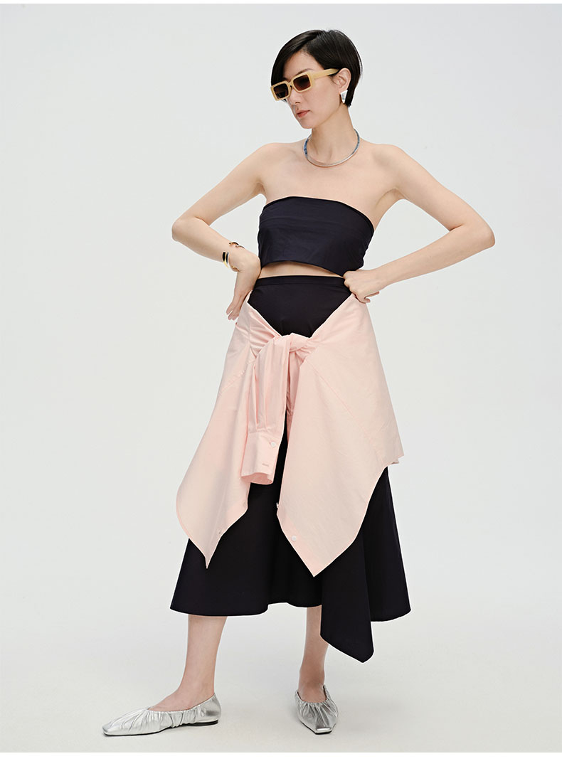 HIDEMI 设计感假两件修身微喇裤长裤裙裤