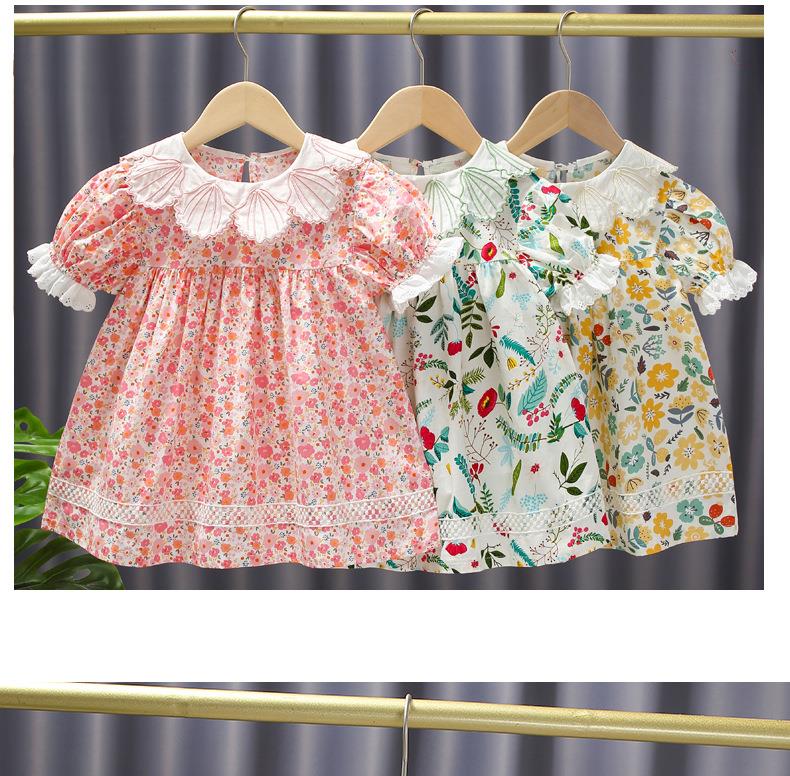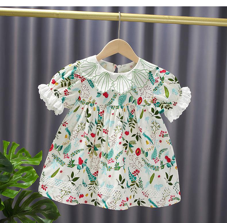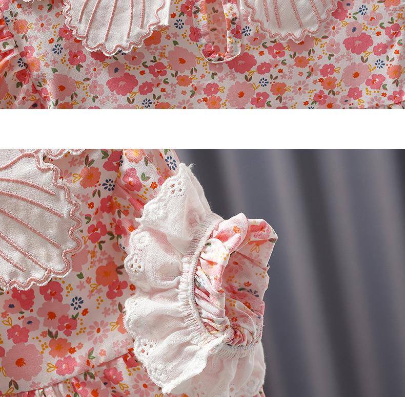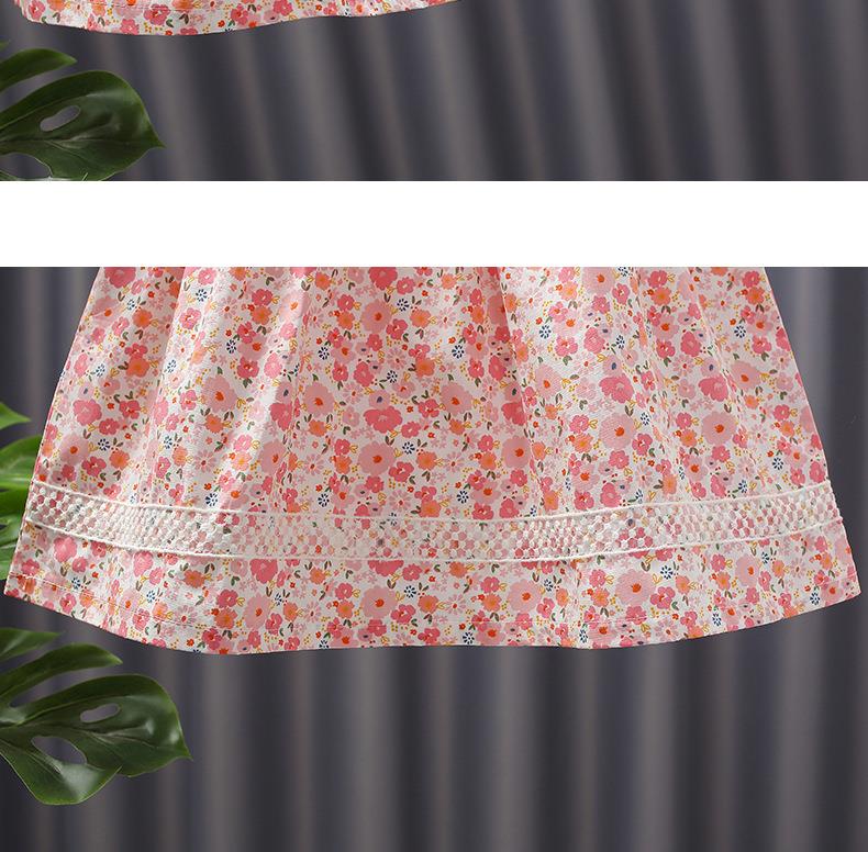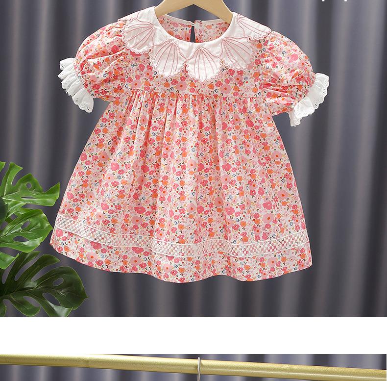 公主裙儿童女宝宝夏季粉色碎花女童连衣裙贝壳花边领淑女外出裙子
